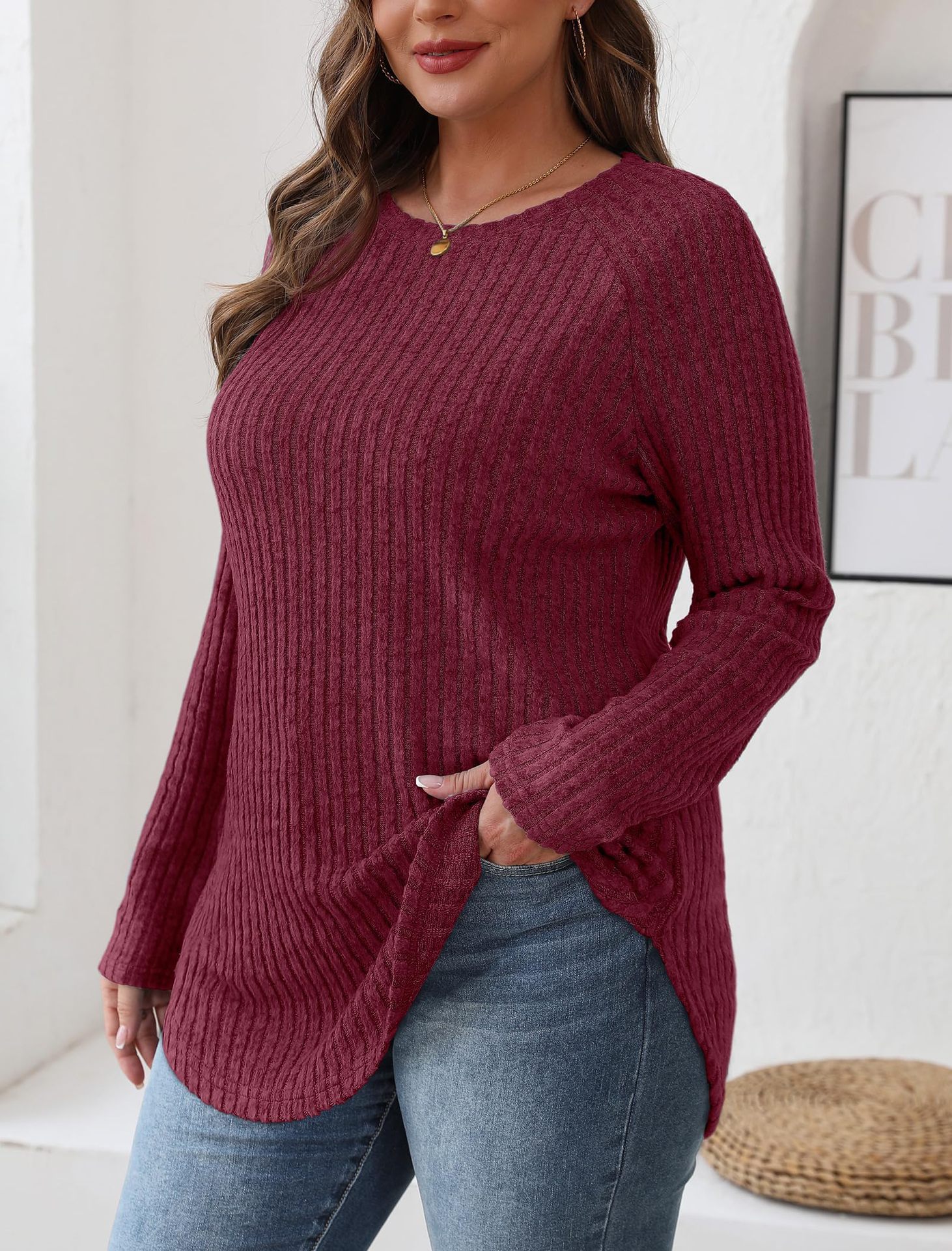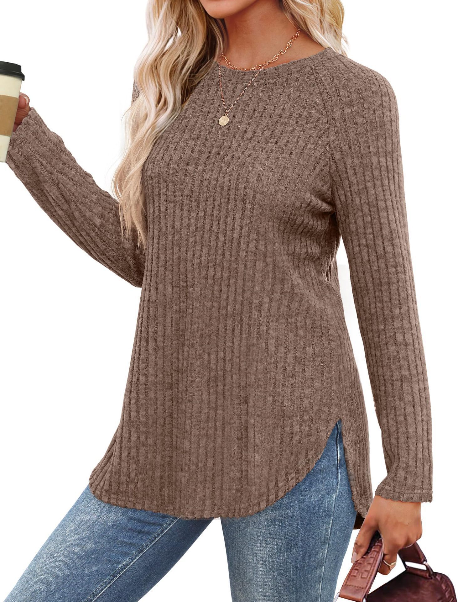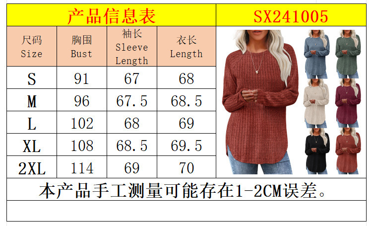 Amazon European and American foreign trade cross-border women's clothing 2025 autumn new loose round neck high and low curved hem top women