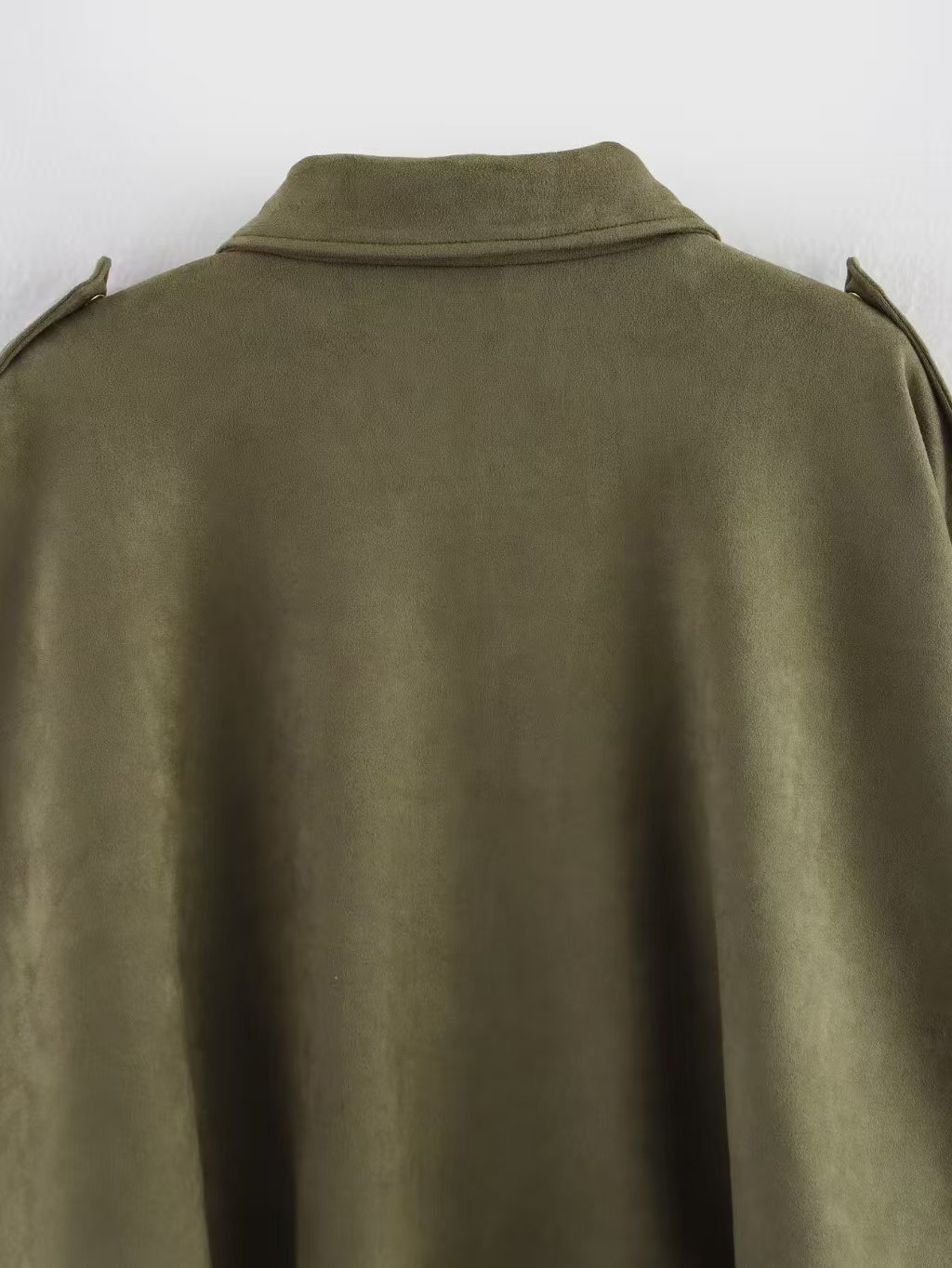 Amazon European and American women's clothing 2025 spring and autumn suede textured lapel zipper button bomber jacket jacket