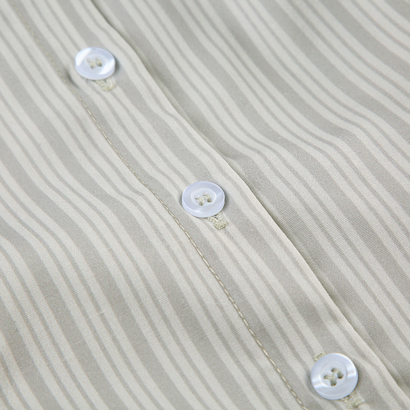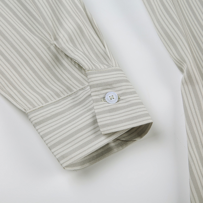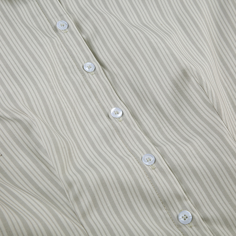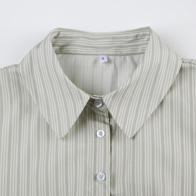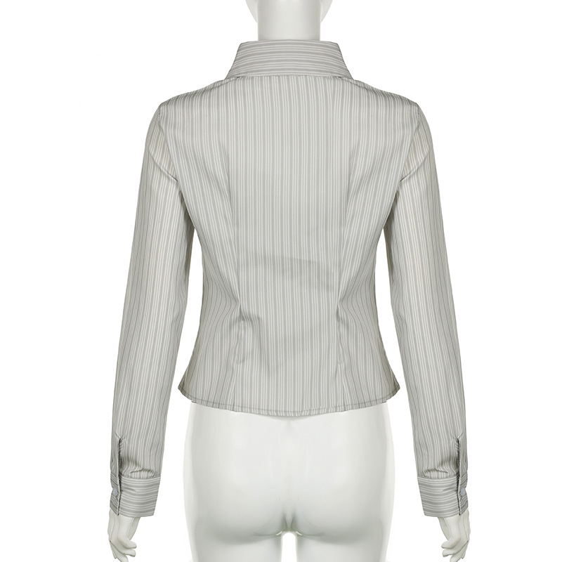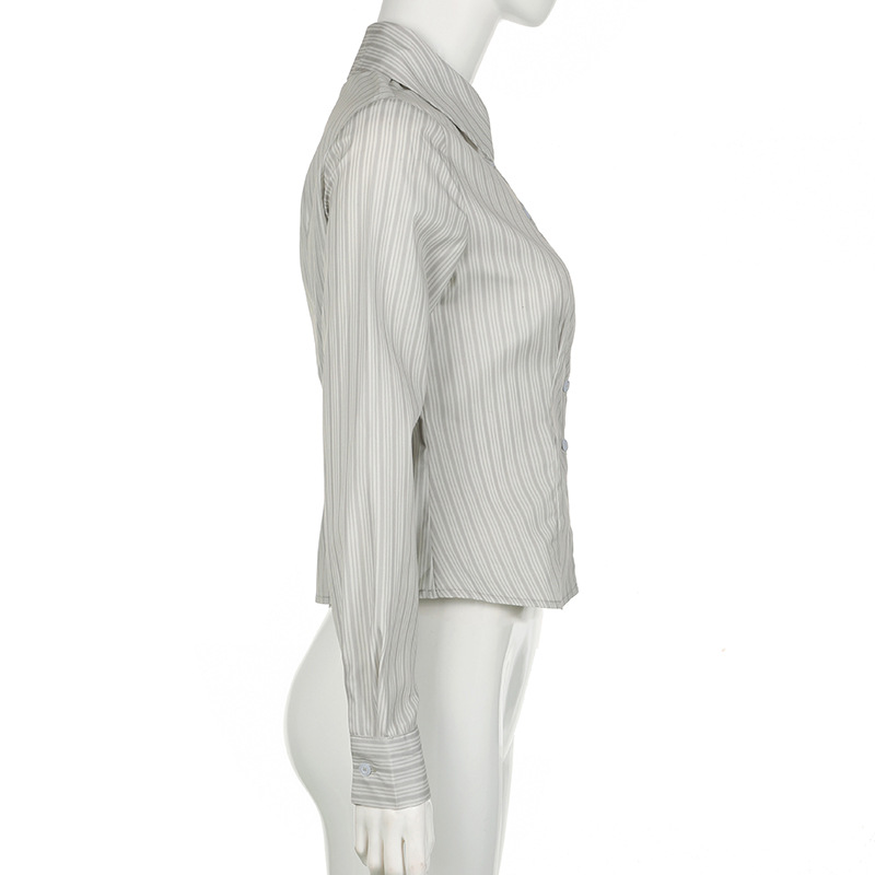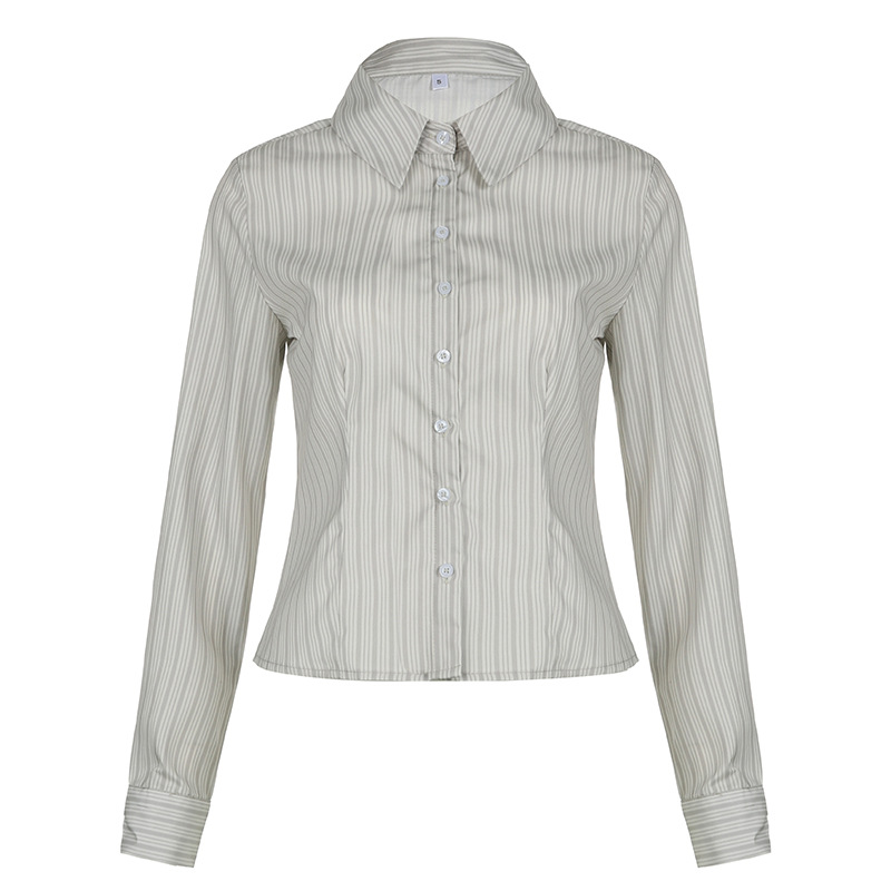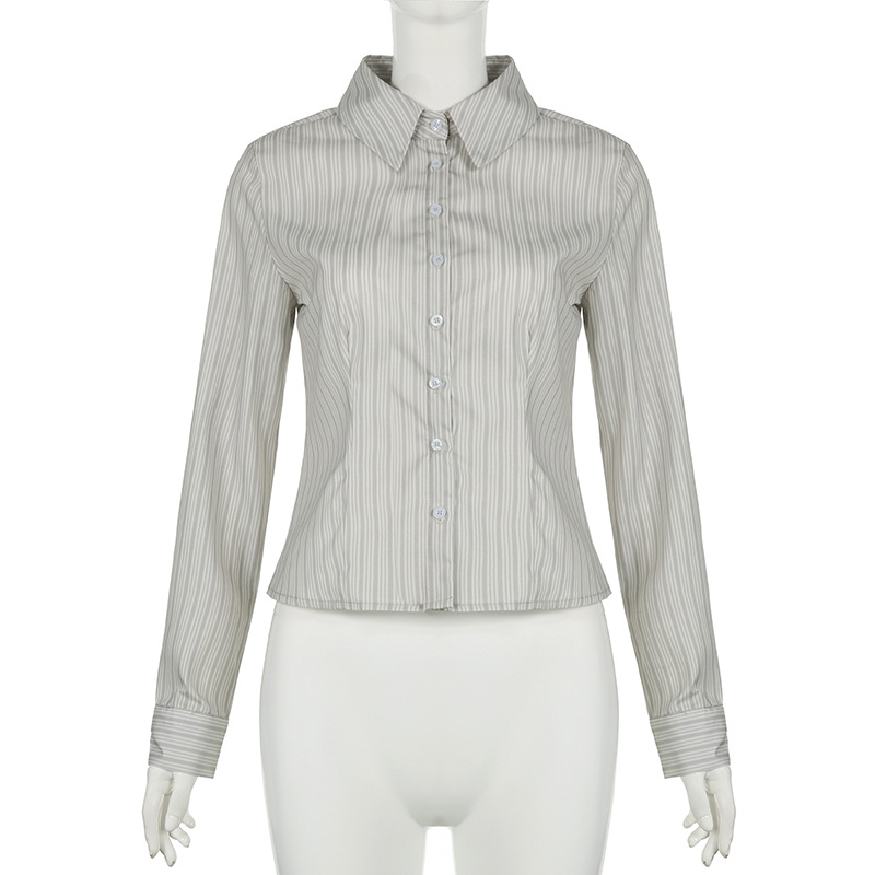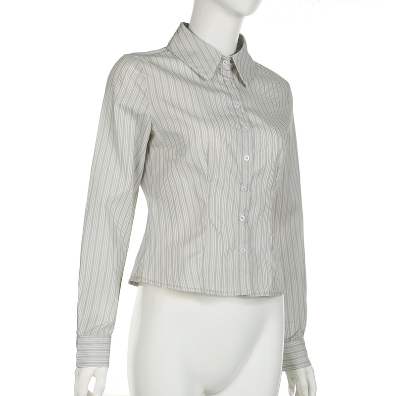 American Street Urban Simple Stripe Slim Fit Basic Long Sleeve Workplace Spice Girl Commuter Thin Lapel Button Shirt