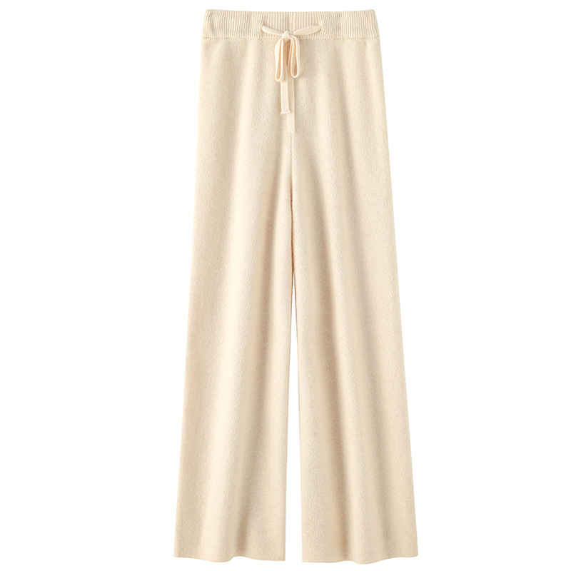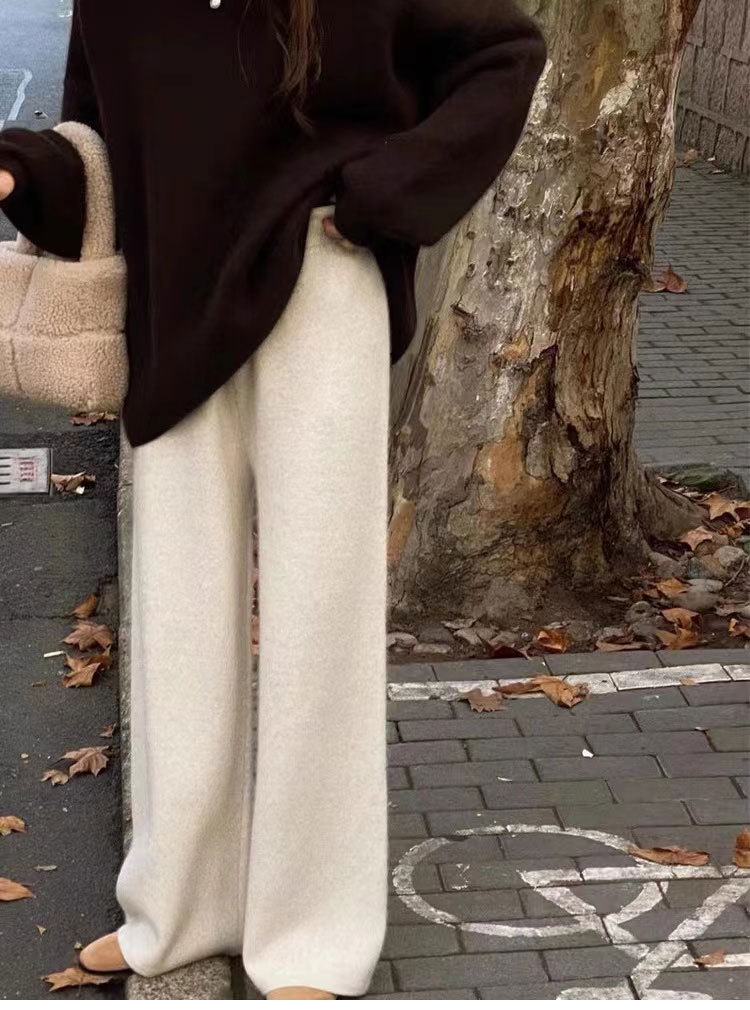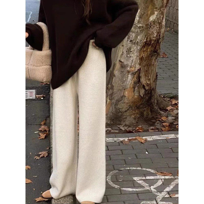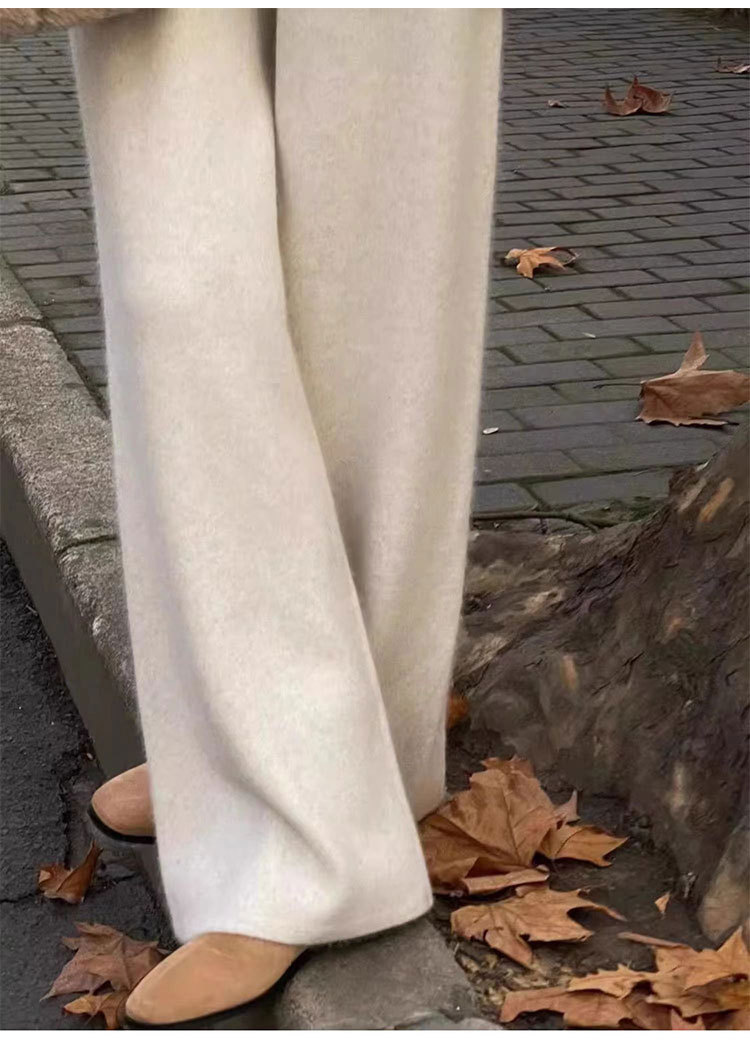 Autumn and winter 100% wool knitted wide-leg pants women's high-waisted thickened drape cashmere straight-leg small fleece floor pants