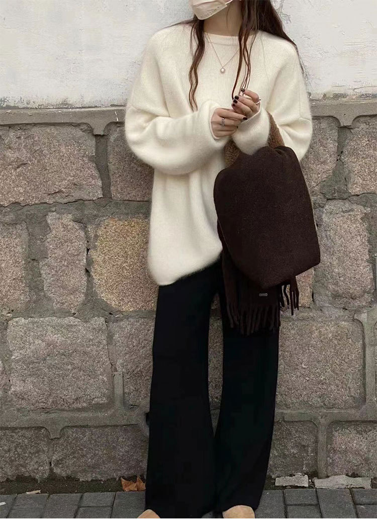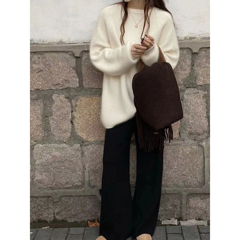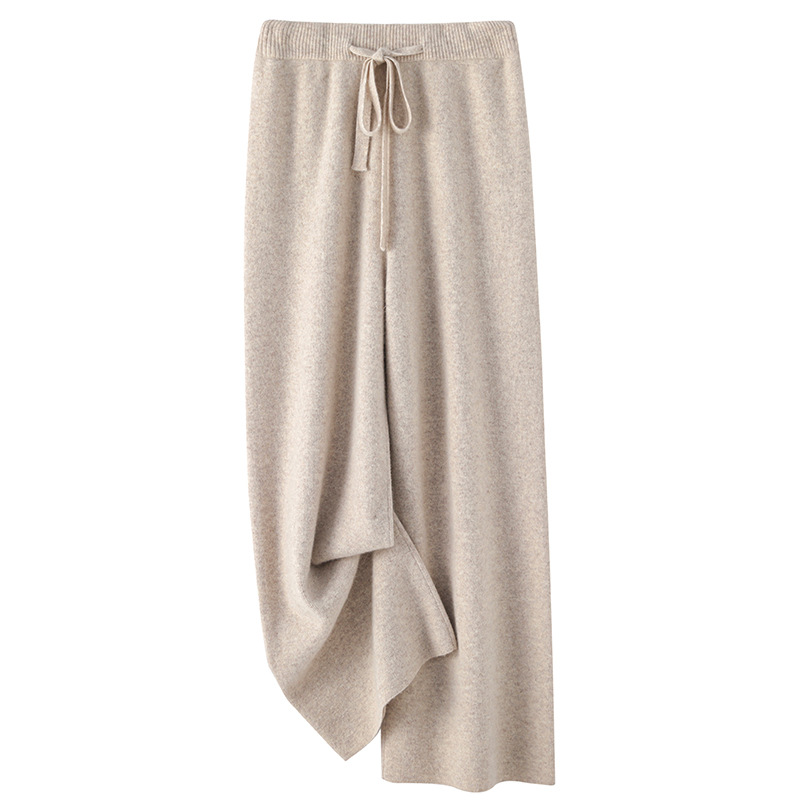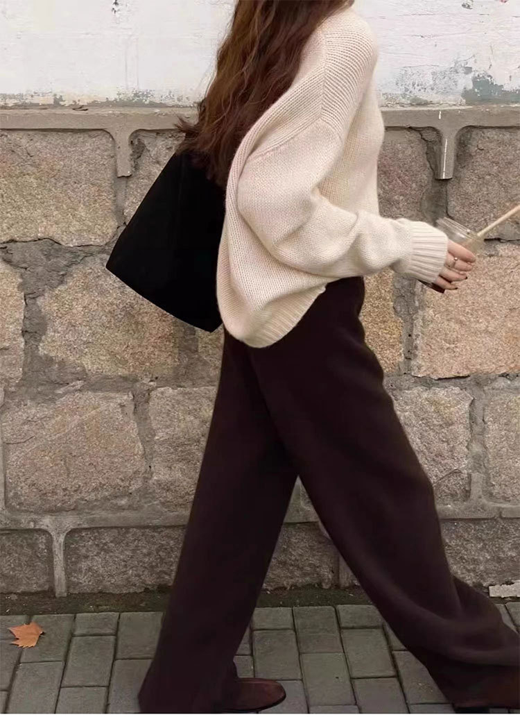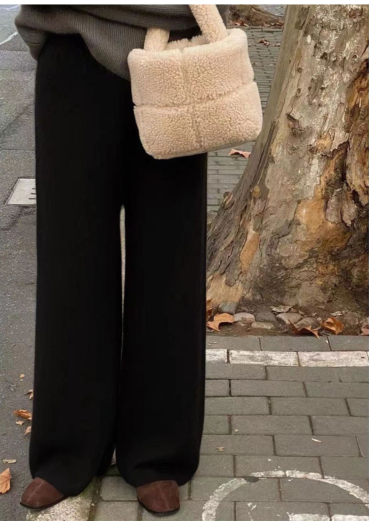 Autumn and winter 100% wool knitted wide-leg pants women's high-waisted thickened drape cashmere straight-leg small fleece floor pants