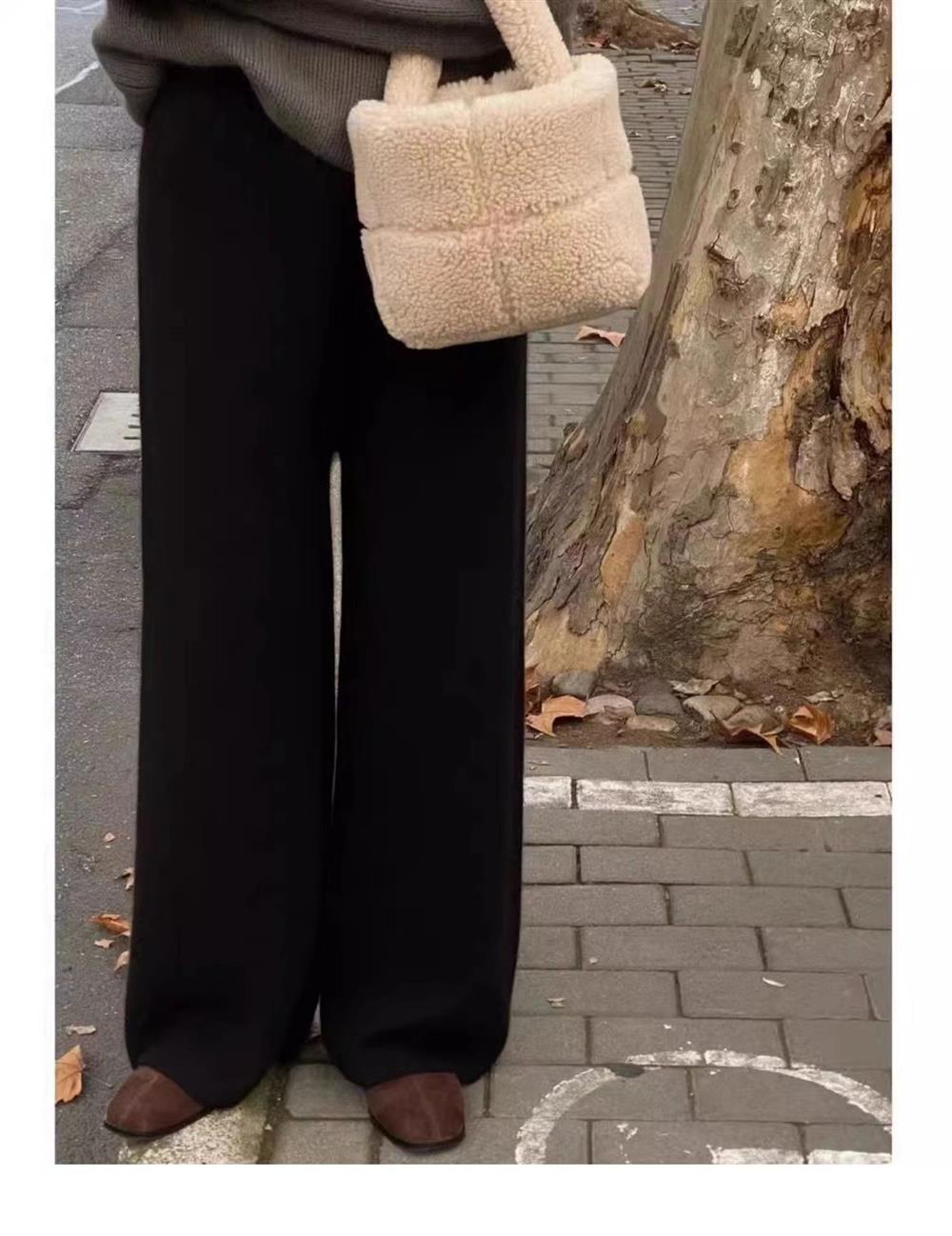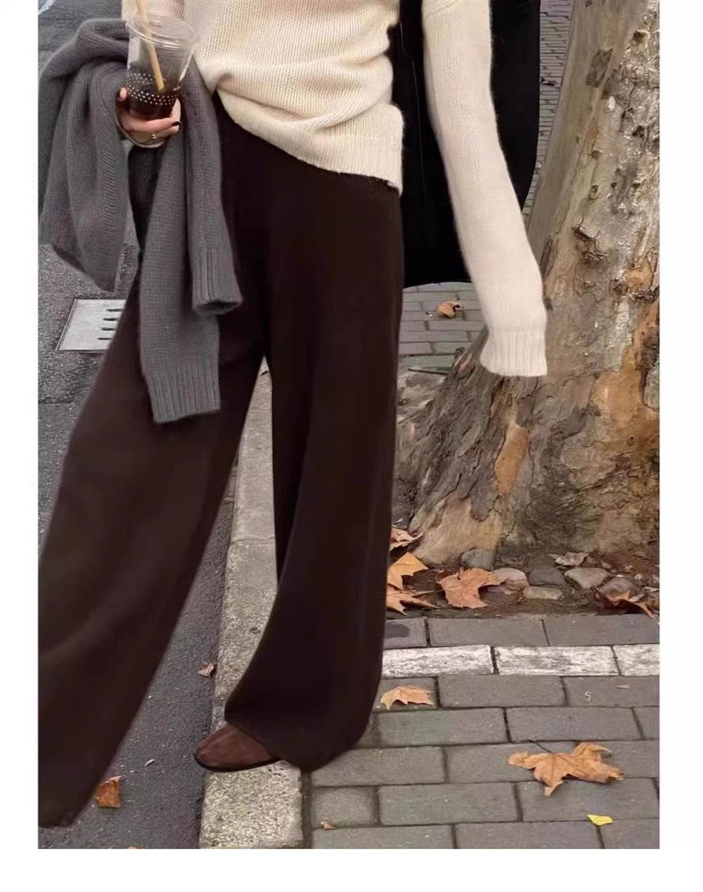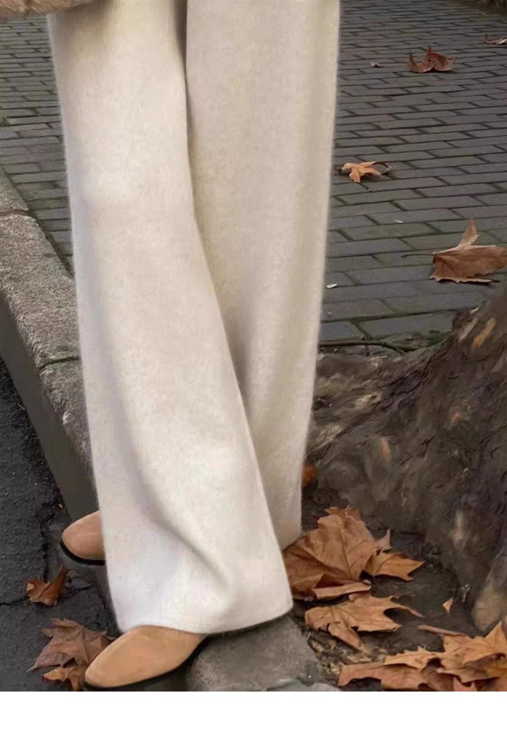 Autumn and winter thickened 100% soft waxy wool wide-leg pants women's drape knitted straight trousers cashmere small mopping trousers