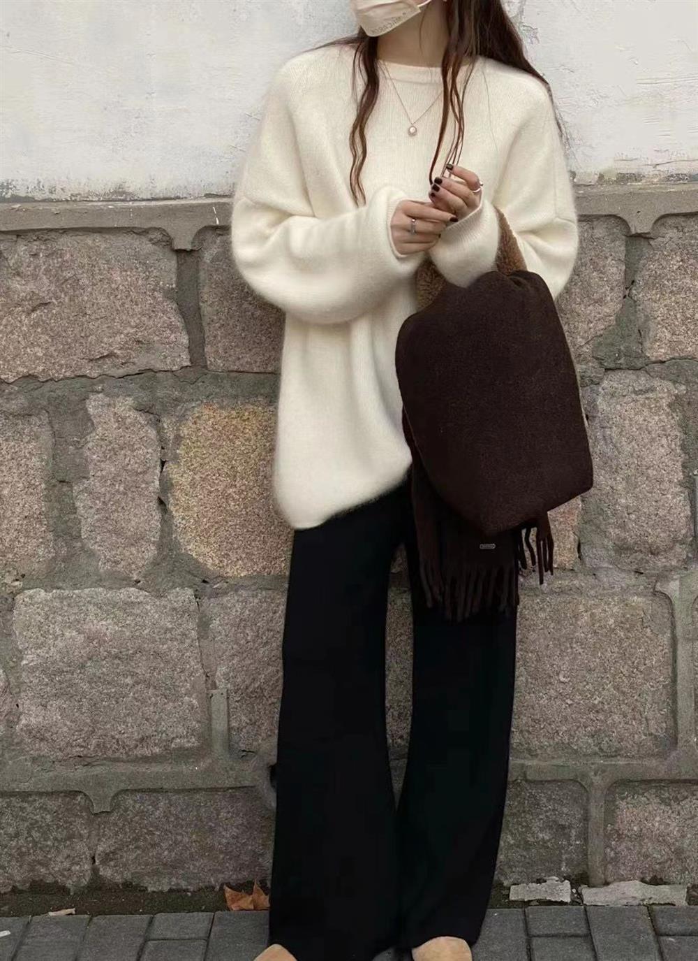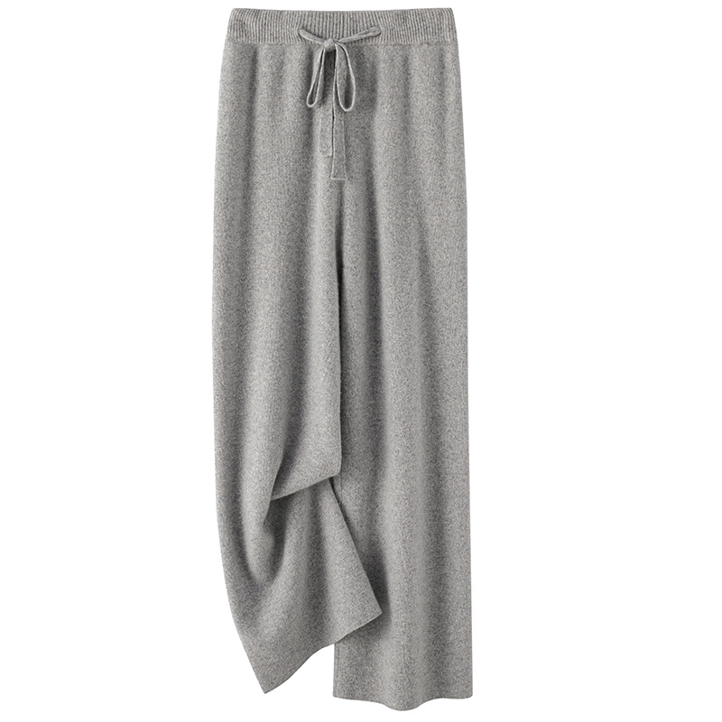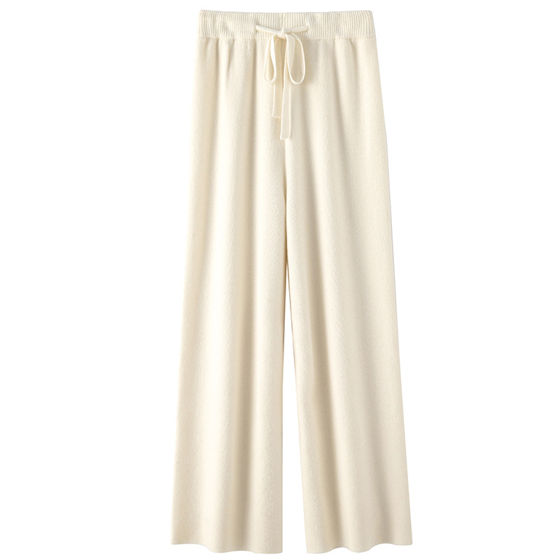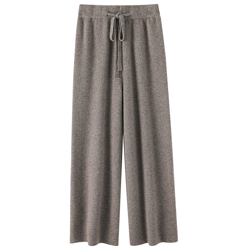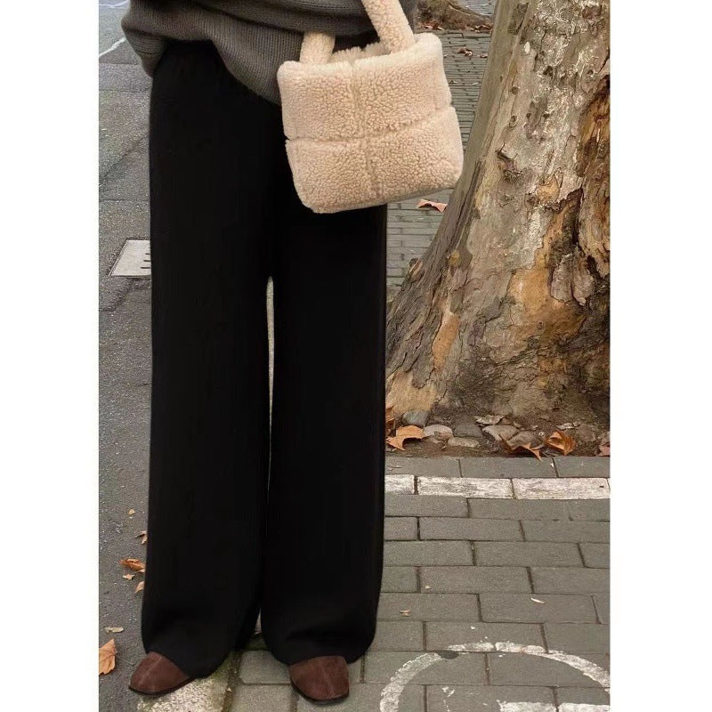 Autumn and winter thickened 100% soft waxy wool wide-leg pants women's drape knitted straight trousers cashmere small mopping trousers