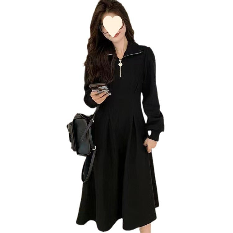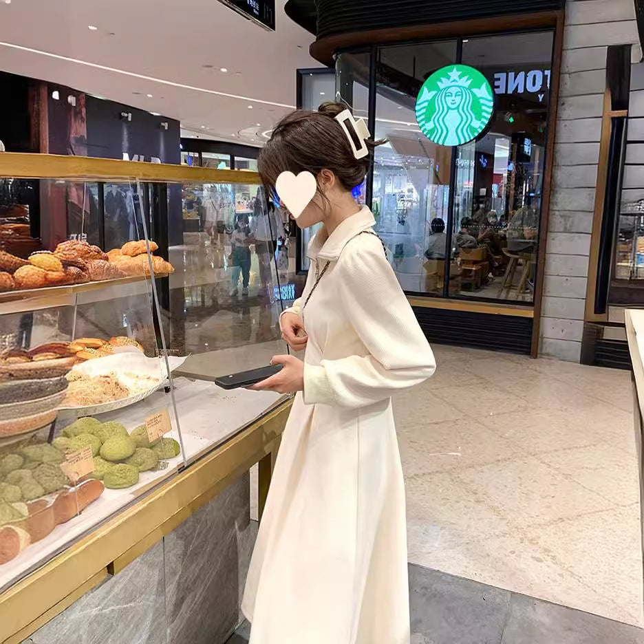 Autumn new 2026 women's fat mm waist skirt plus-size high-end long-sleeved waffle with dress women