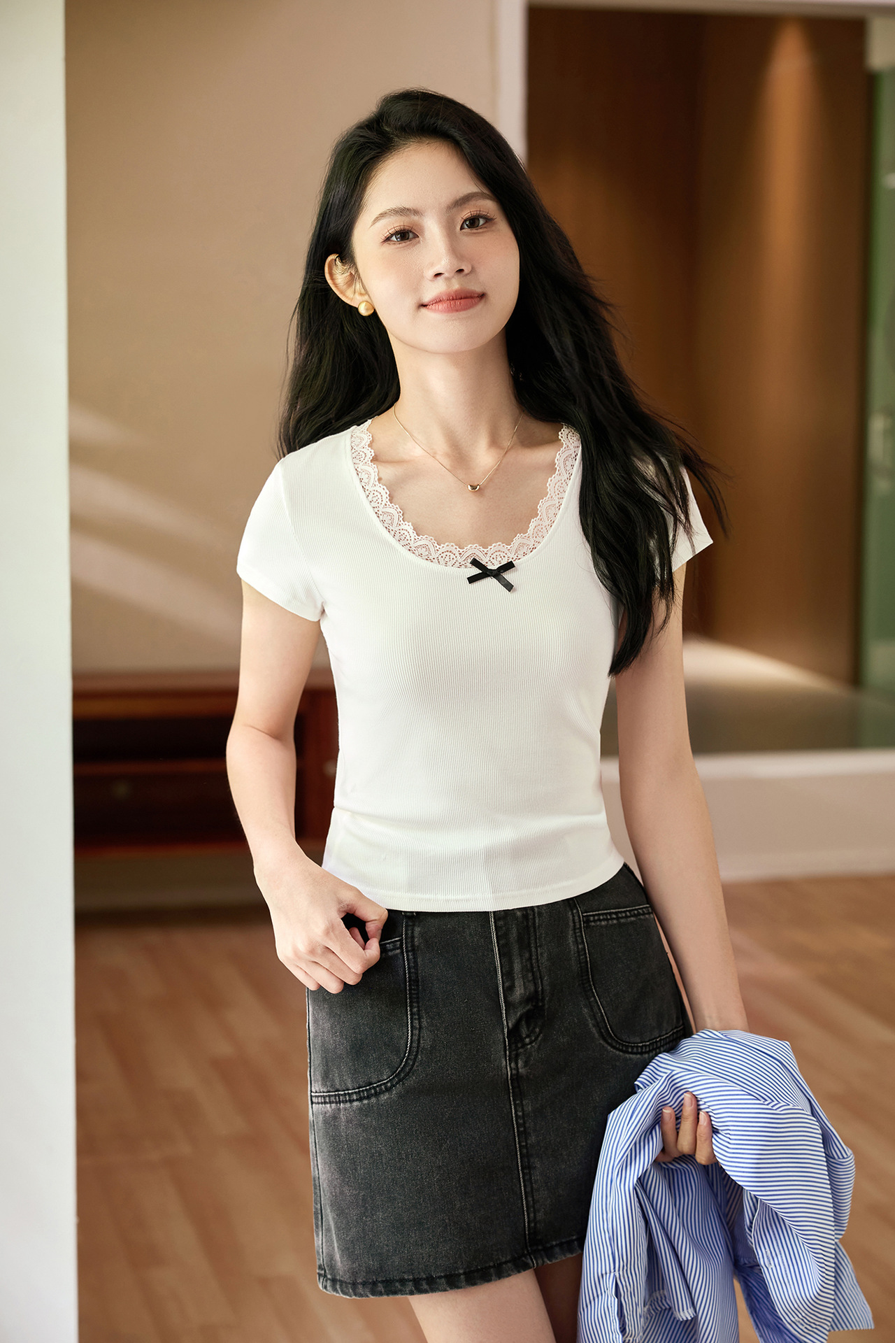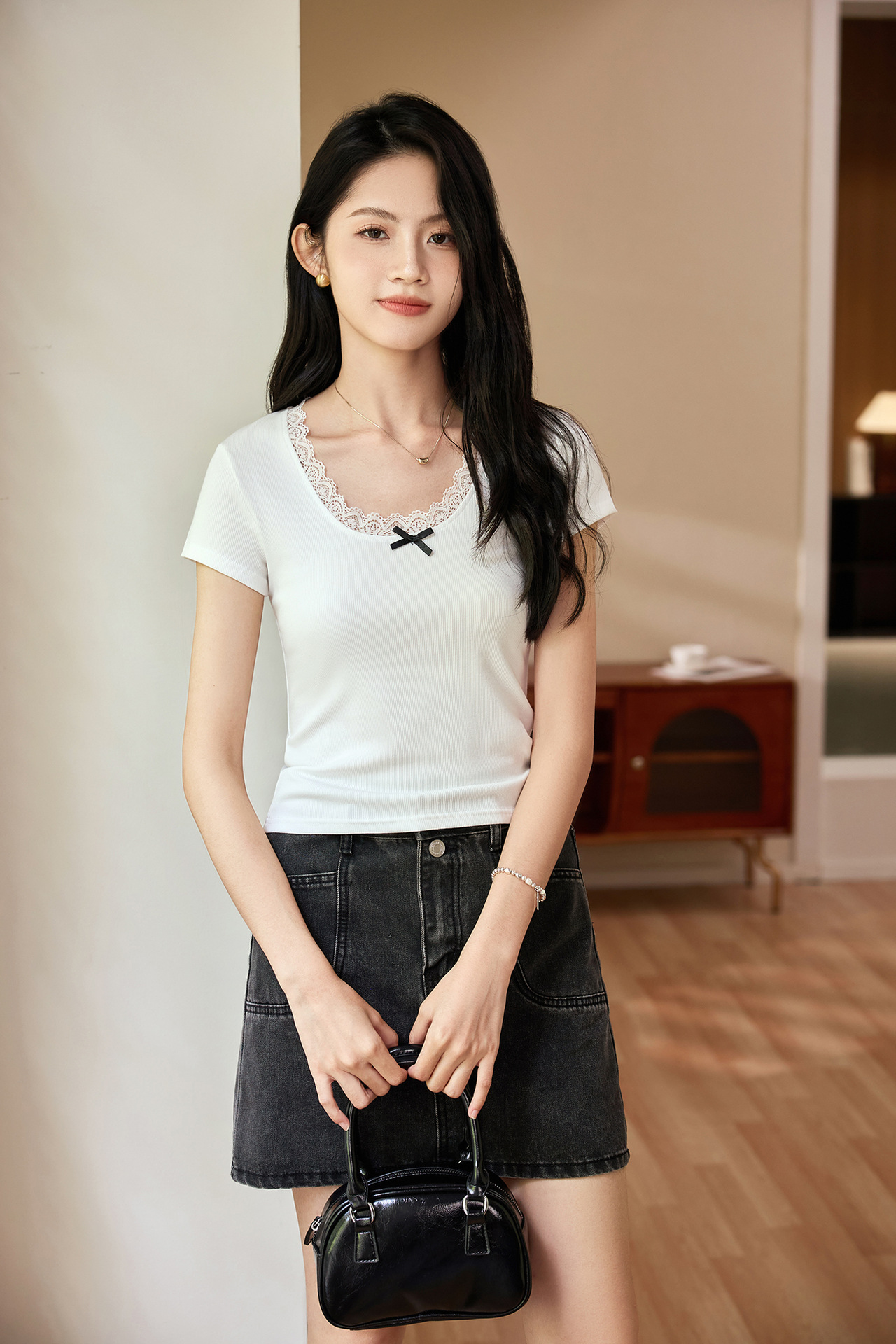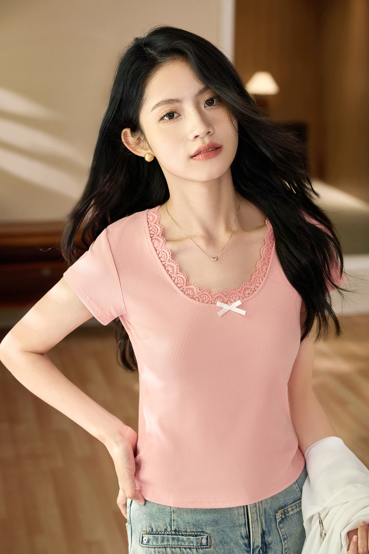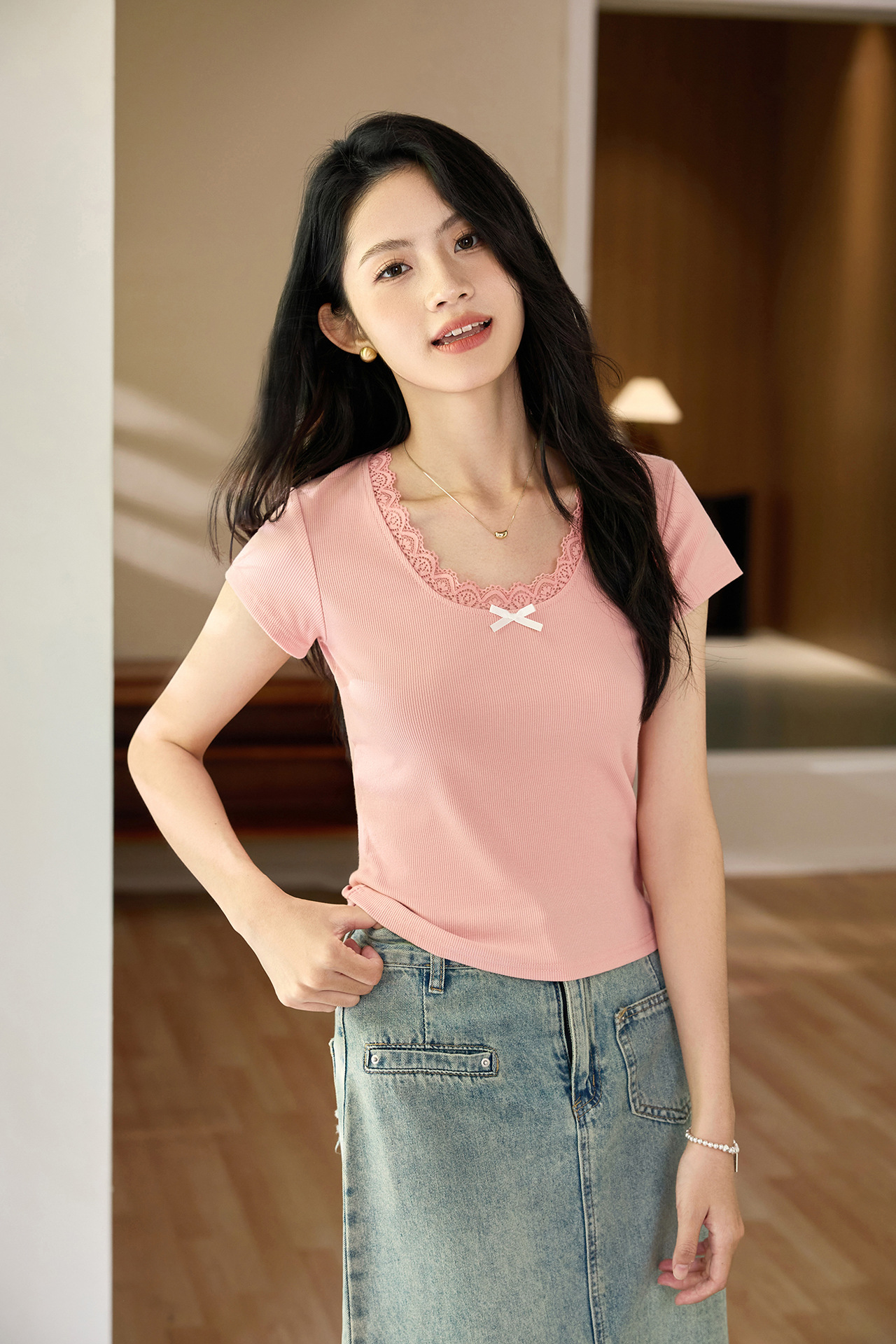 Ballet style pure desire gentle lace T-shirt women's 2026 summer new retro short-sleeved pure cotton bottoming shirt top