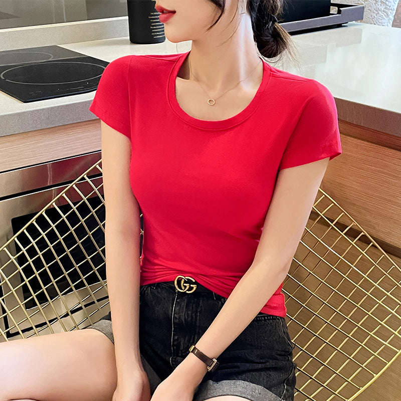 Big red short-sleeved t-shirt women's pure cotton high-end niche non-collision style summer versatile summer beautiful small top t-shirt