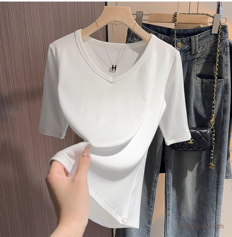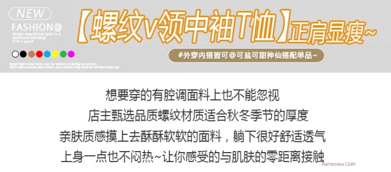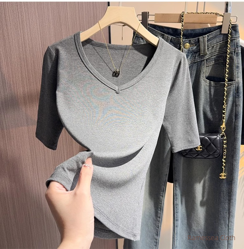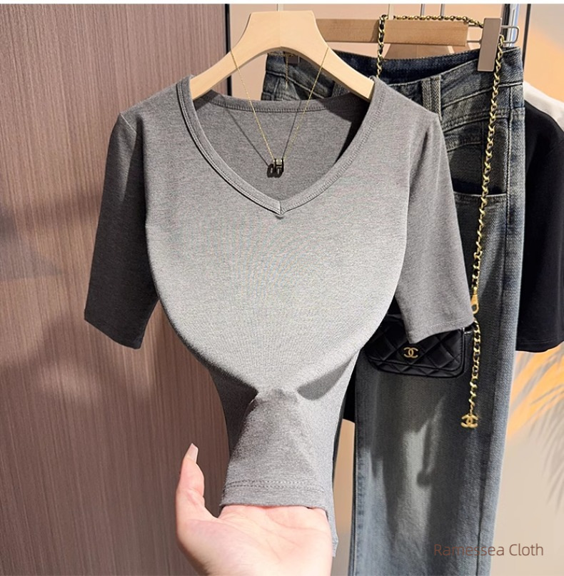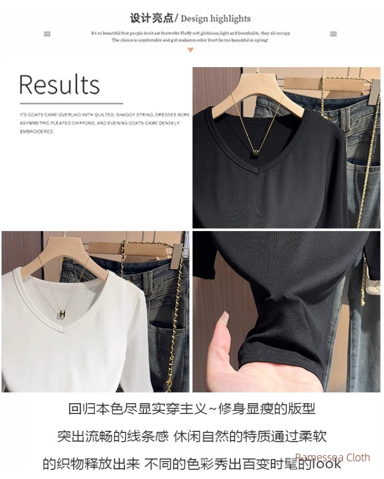 Black five-quarter-sleeved t-shirt femininity 2025 new knitted inner bottoming shirt front shoulder high-end mid-sleeved top