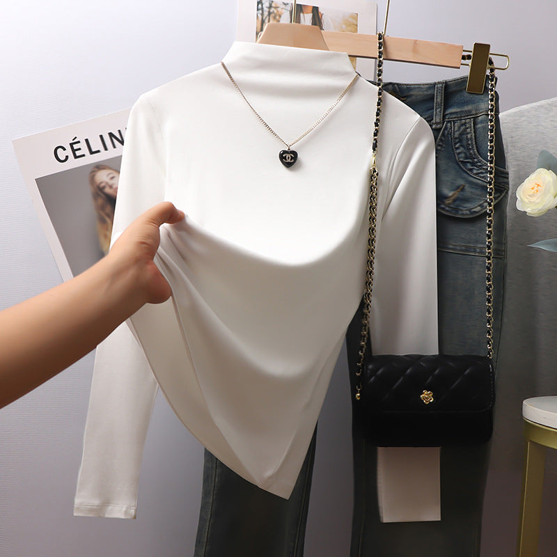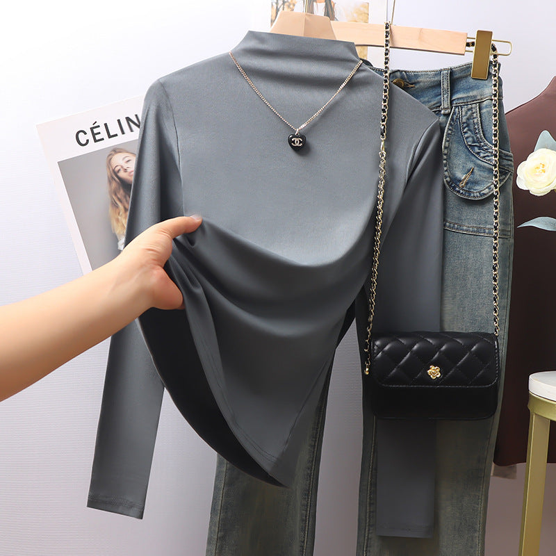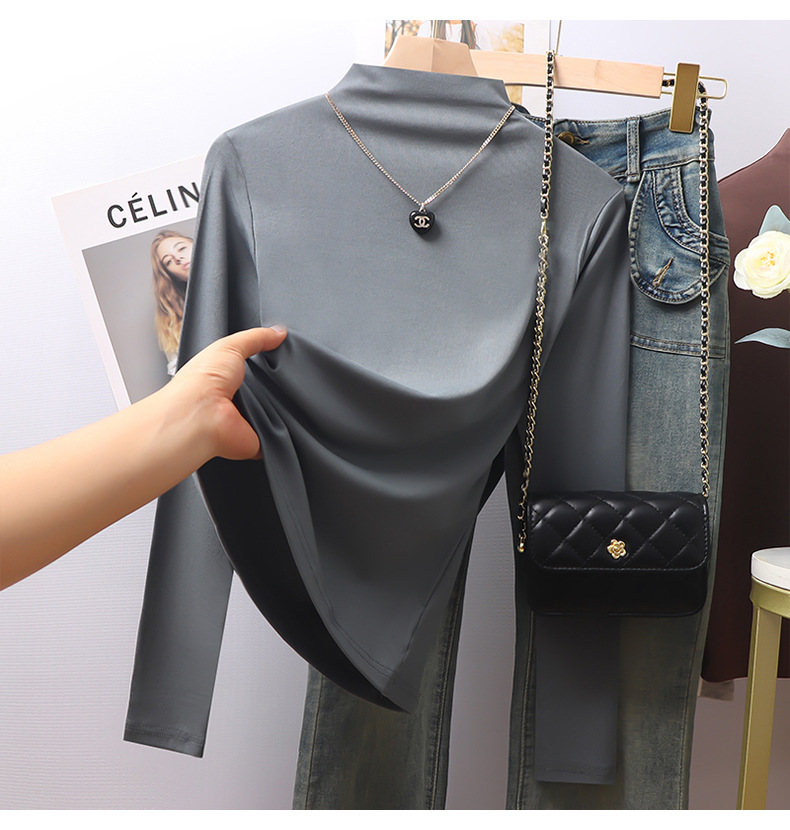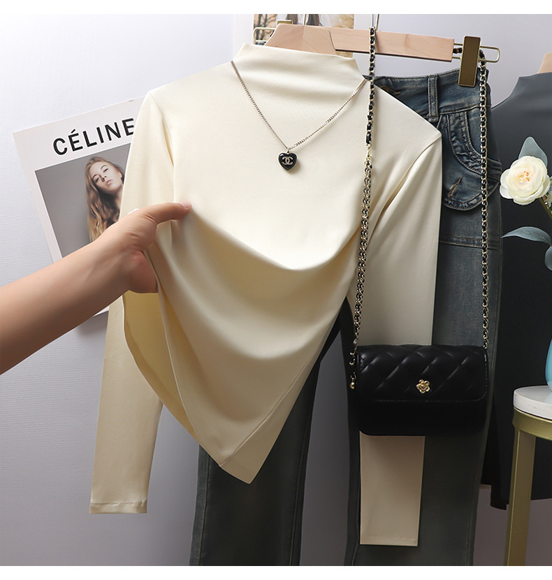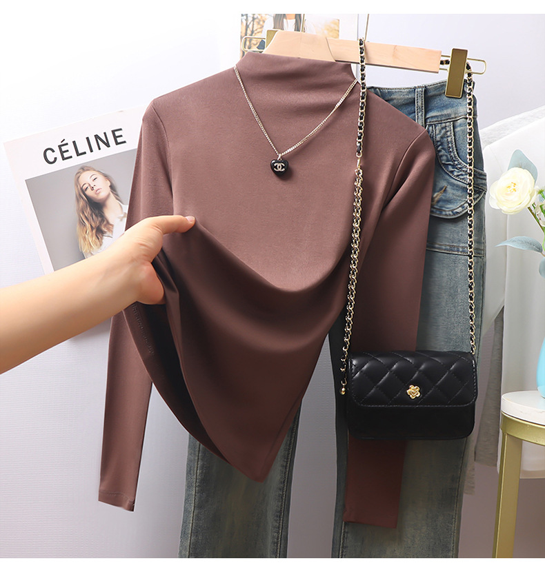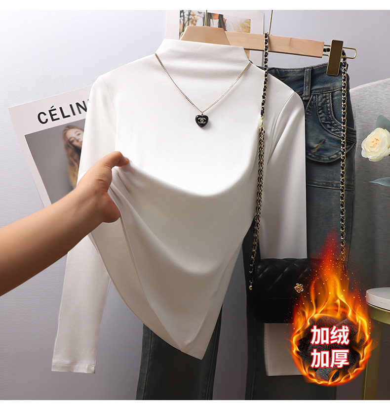 Black threaded semi-turtleneck long-sleeved bottoming shirt for women's 2025 autumn and winter new models with high-end fleece thickened top inside