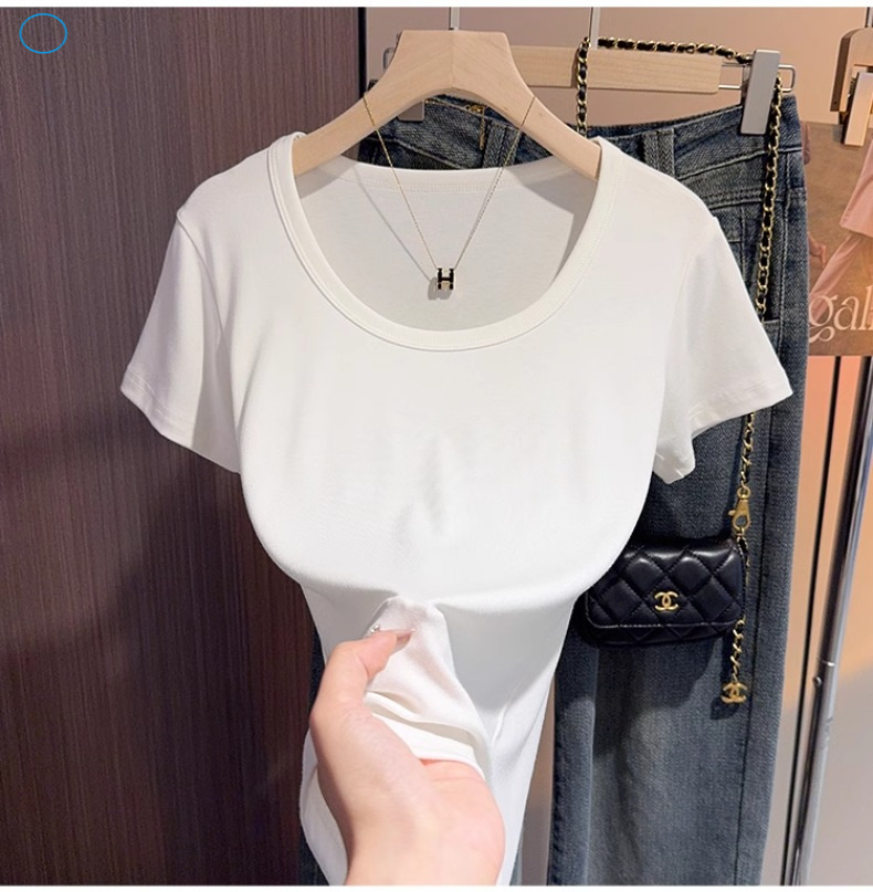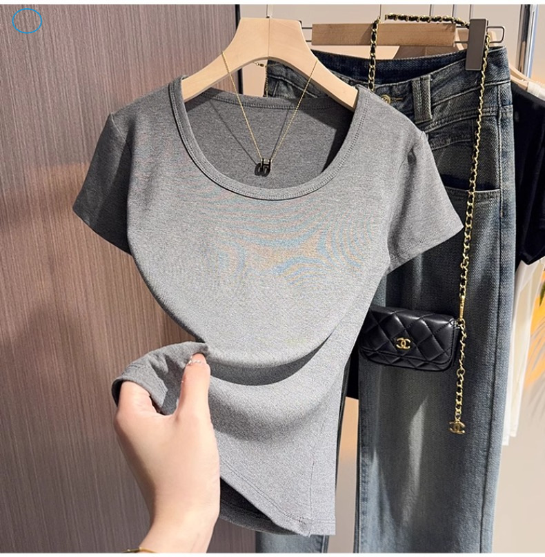 Black u-neck short-sleeved t-shirt women's summer 2025 new Korean version versatile tights with bottoms and tops