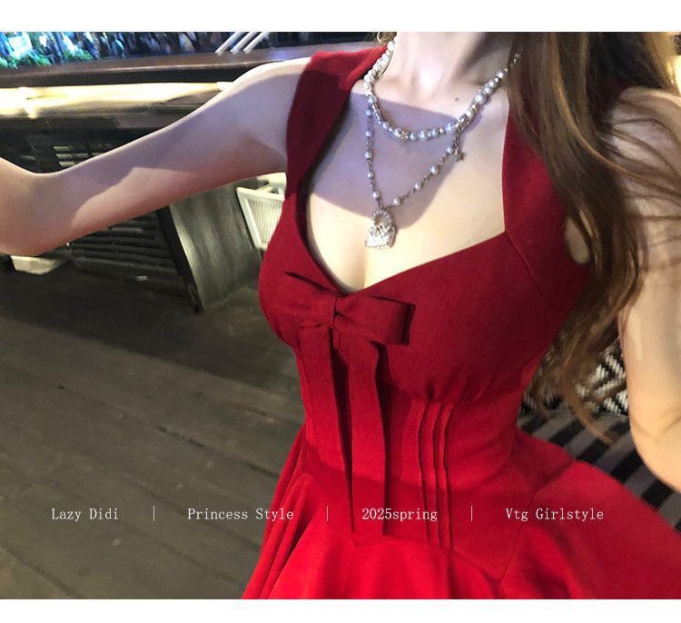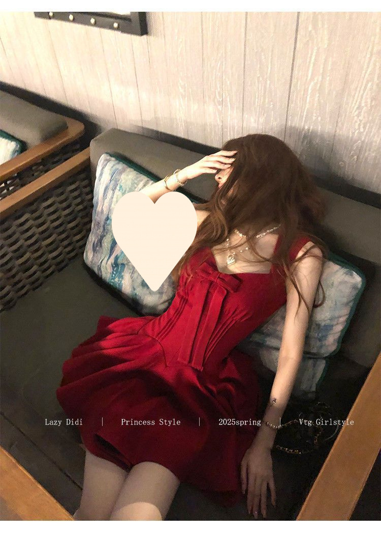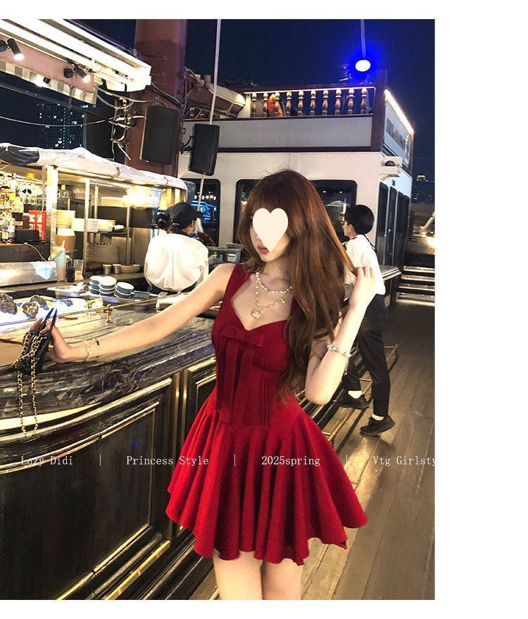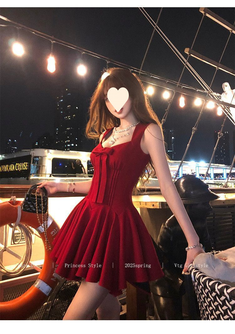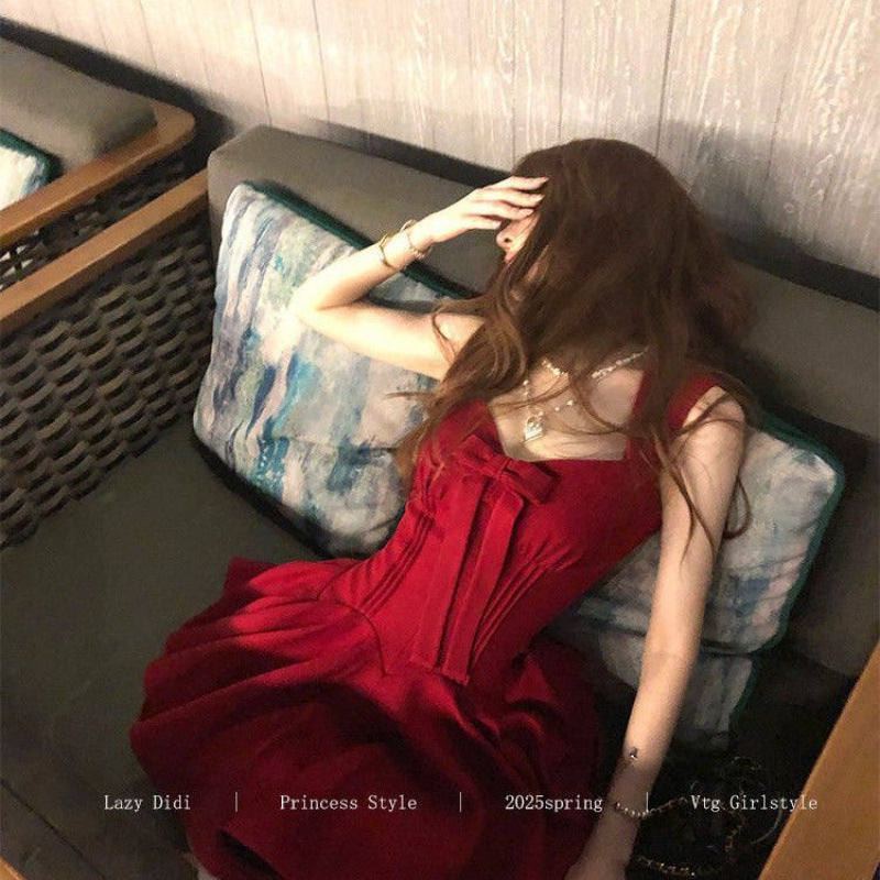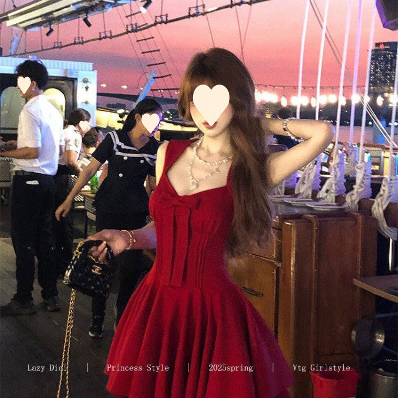 Bow new dress rose life summer premium French daughter waist thin birthday princess short dress