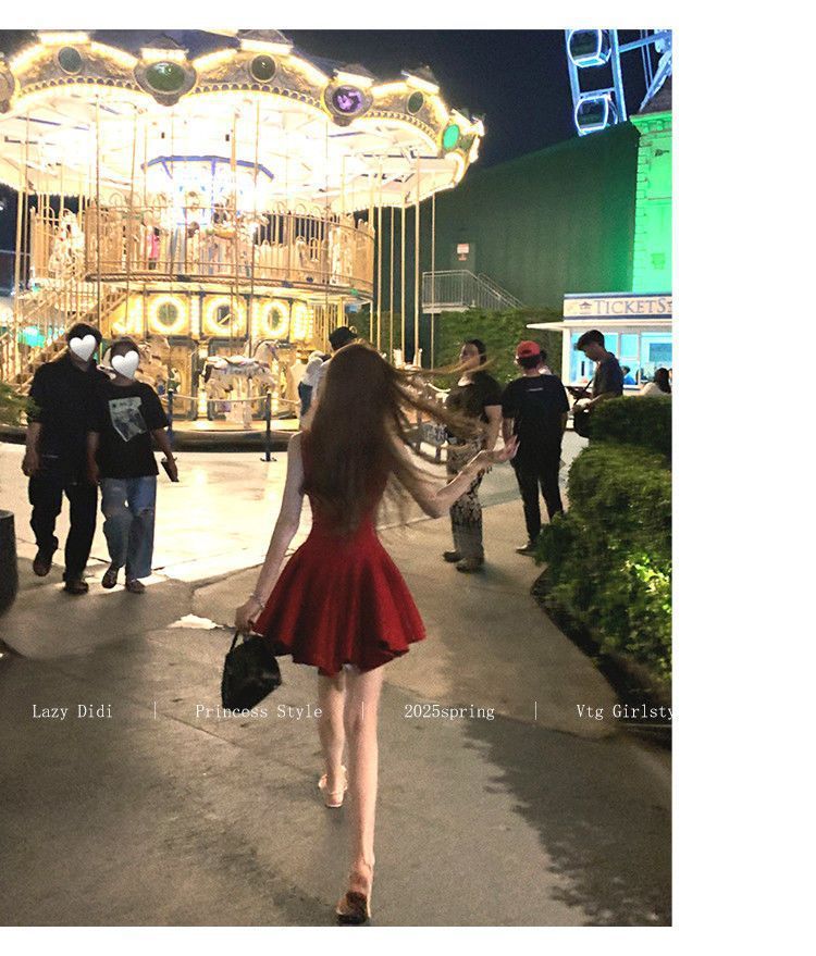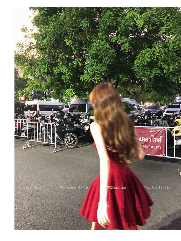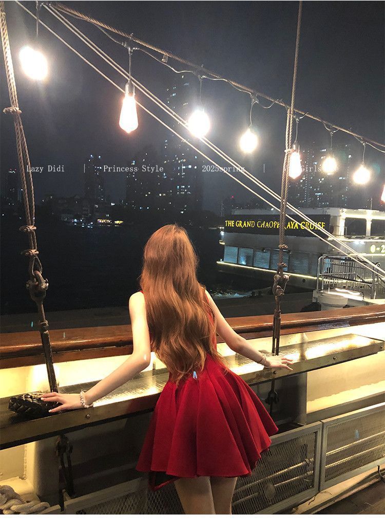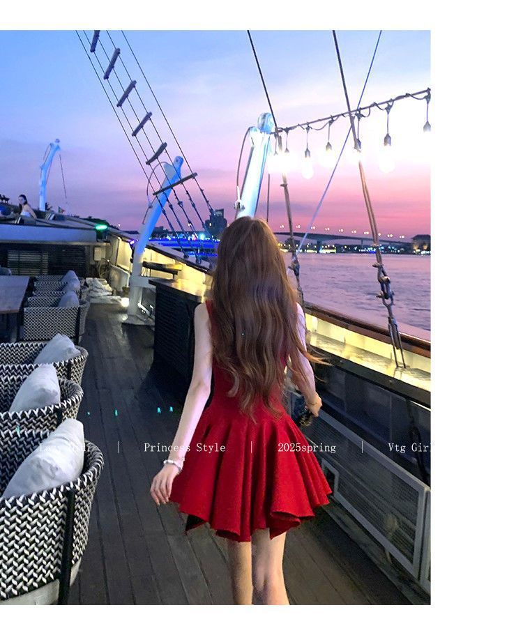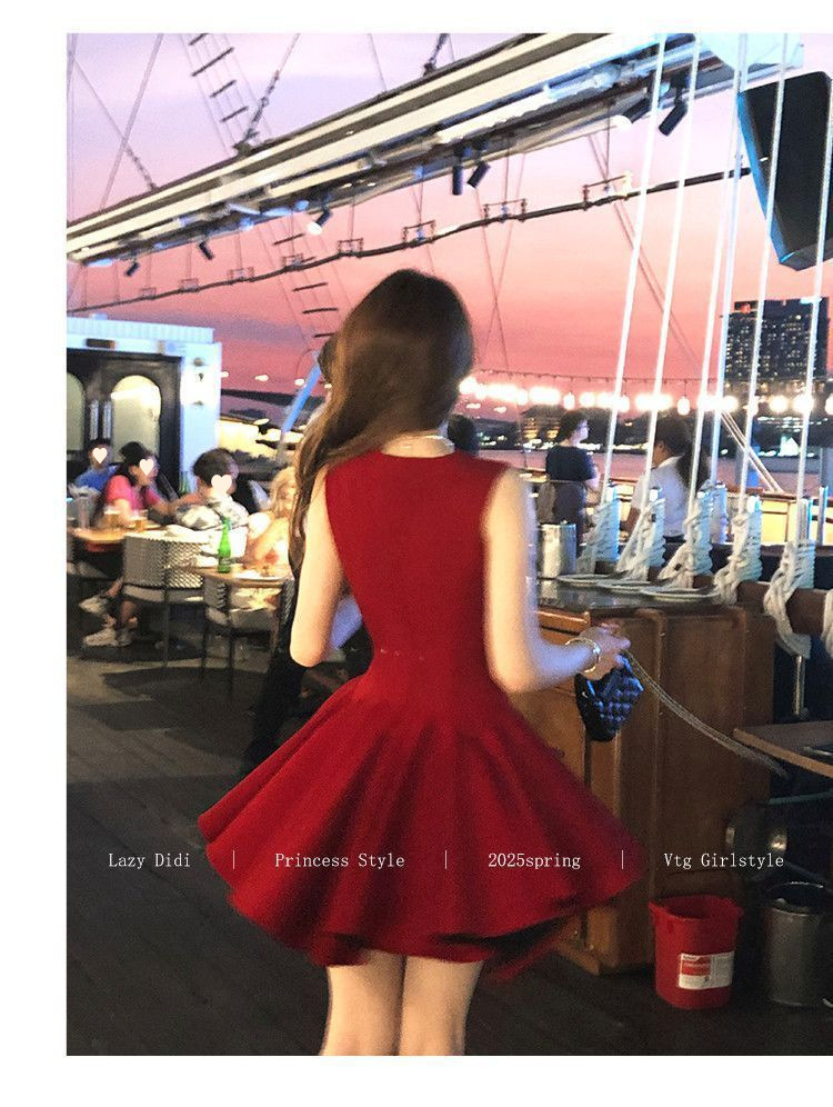 Bow new dress rose life summer premium French daughter waist thin birthday princess short dress