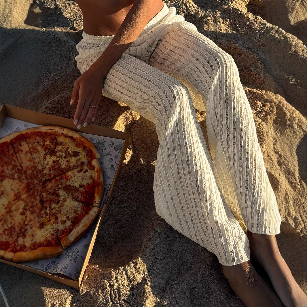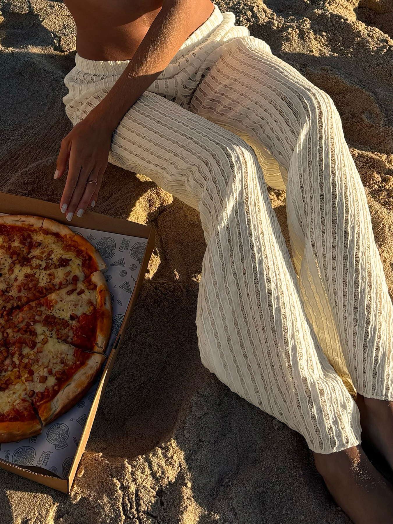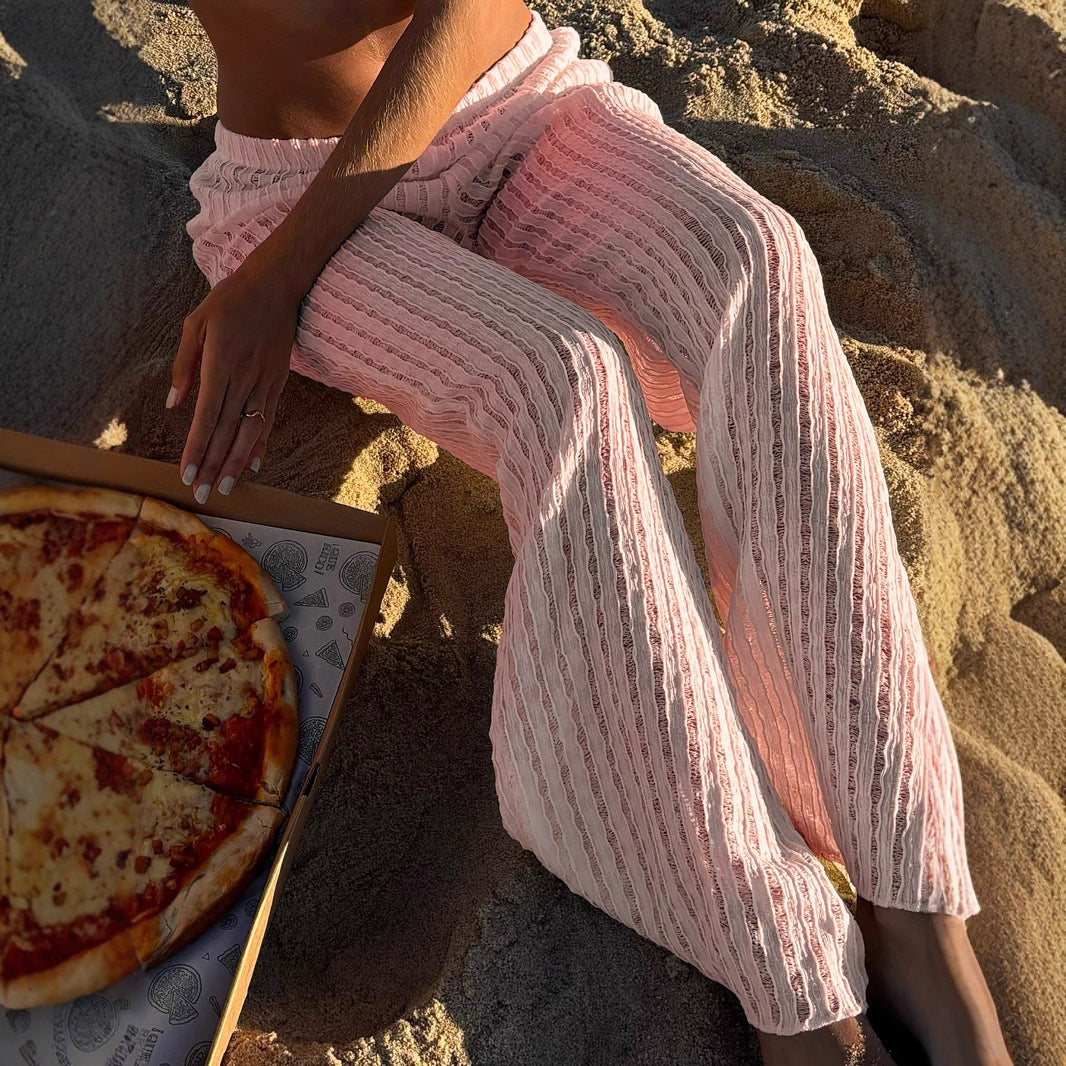 Casual vacation style texture material design knitted pants micro perspective Spice Girls summer new loose lazy comfortable trousers