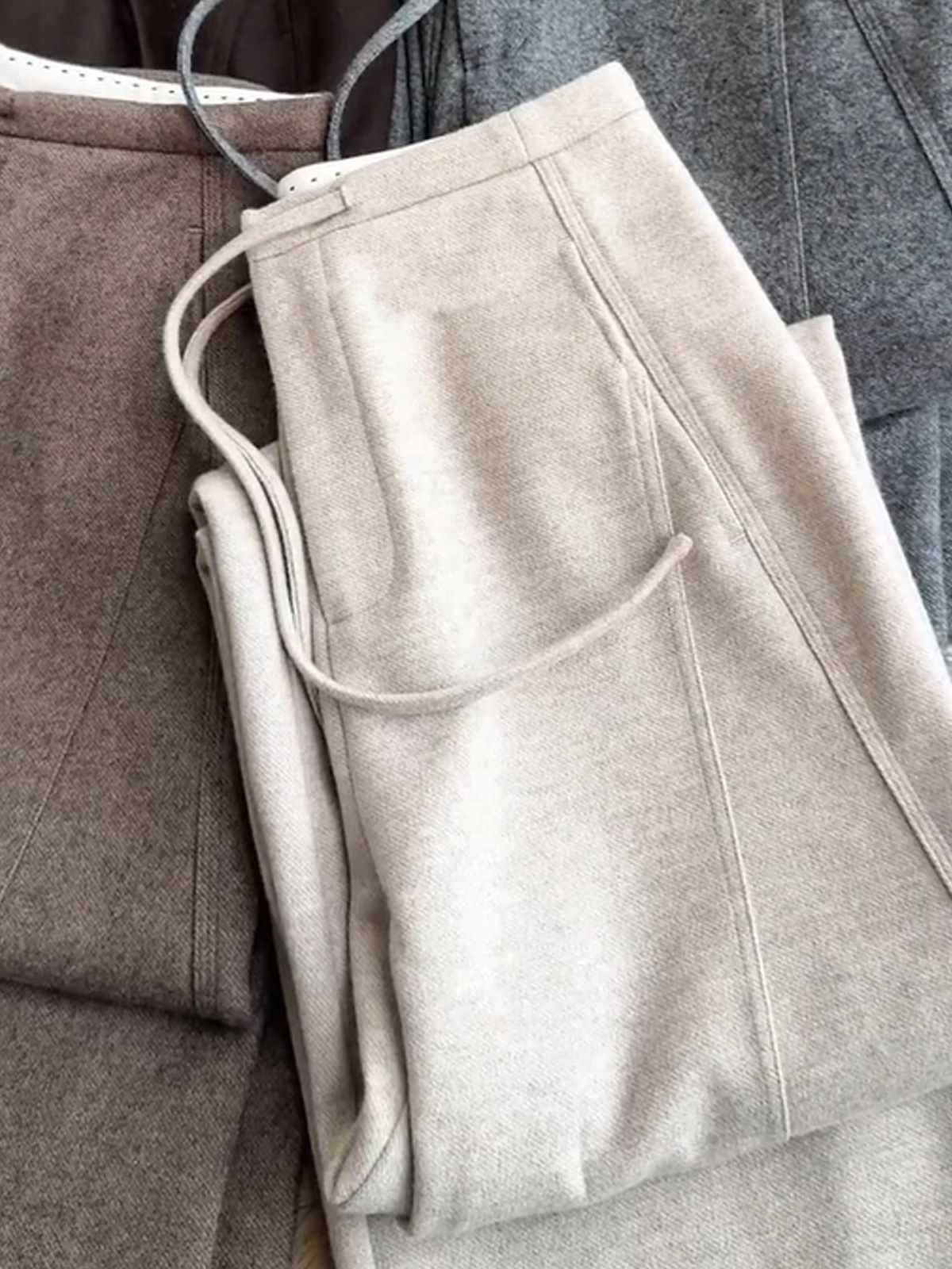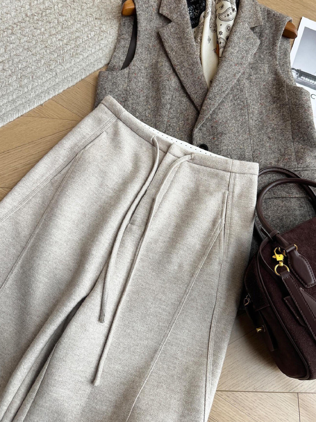 CHAO grade recommendation! Oatmeal woolen straight scimitar pants women's autumn and winter high waist drape narrow version sickle wide-leg pants