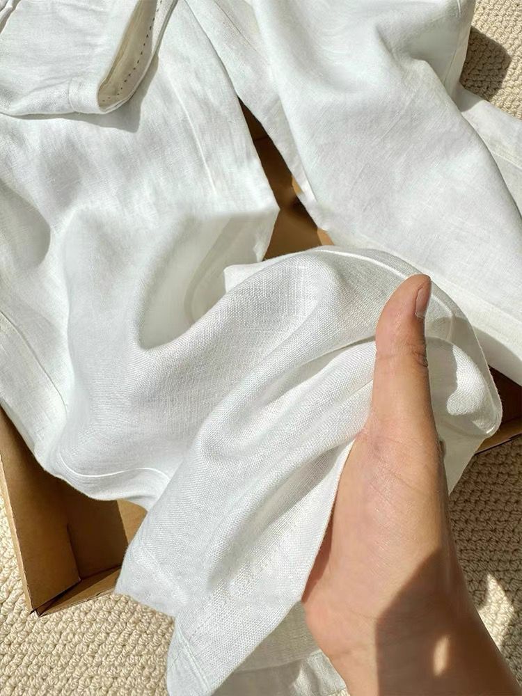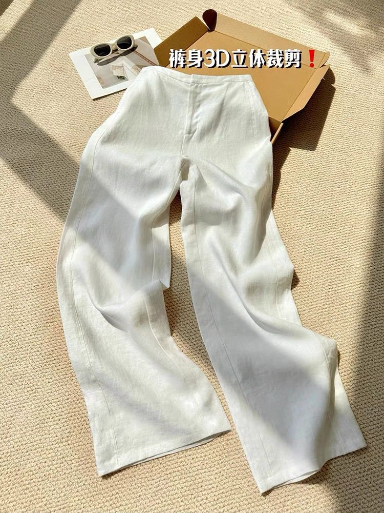 CHAO level recommendation! Simple and casual relaxation white linen pants women's summer new old money wind casual pants