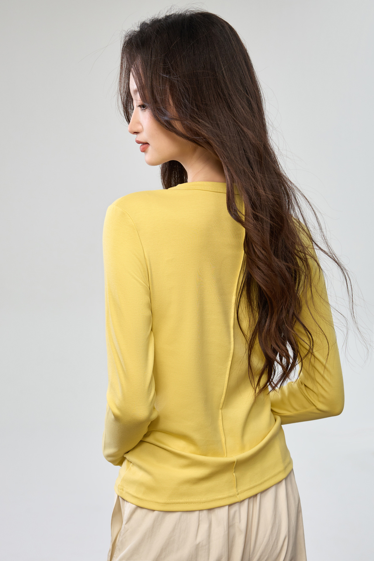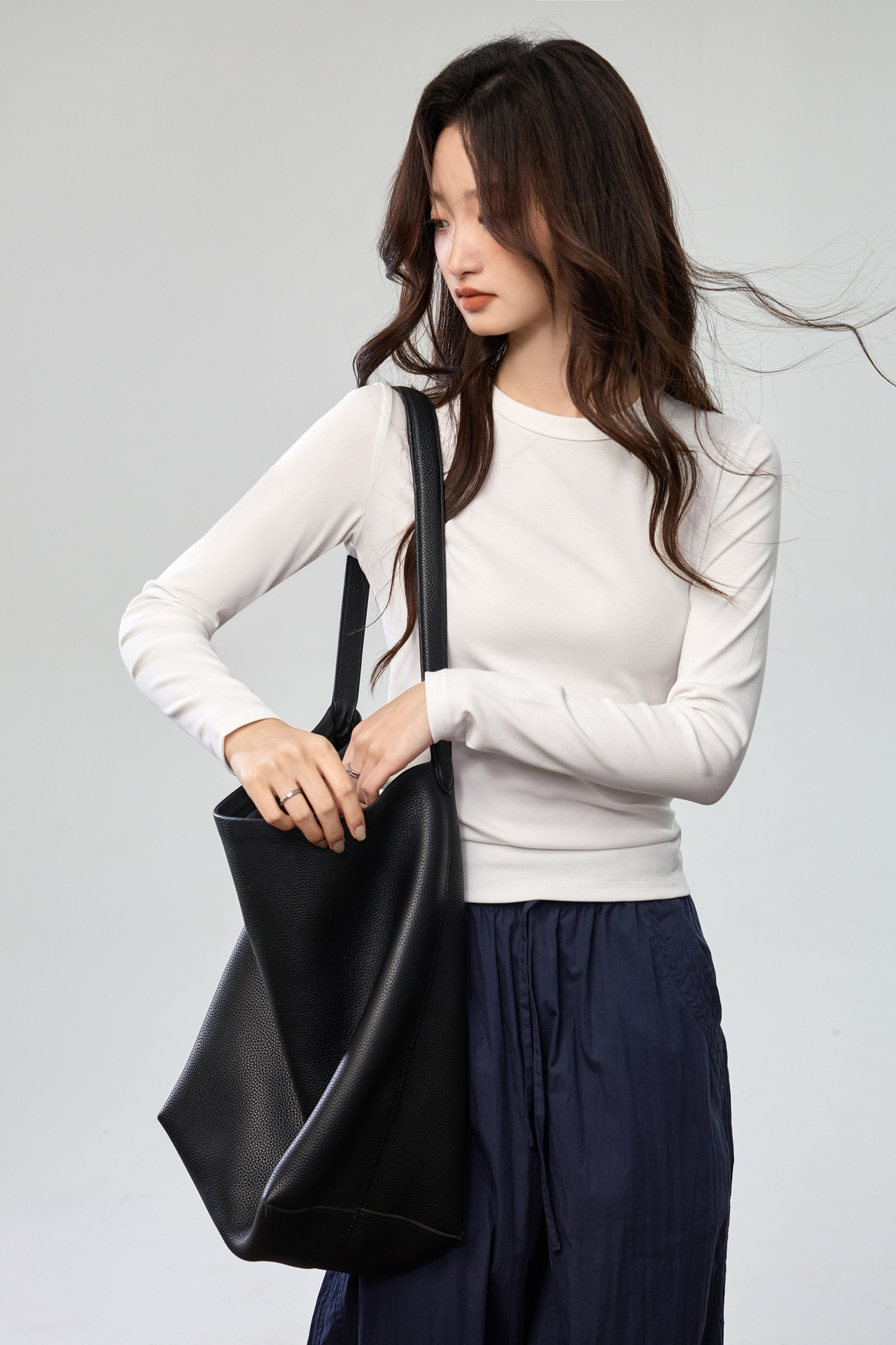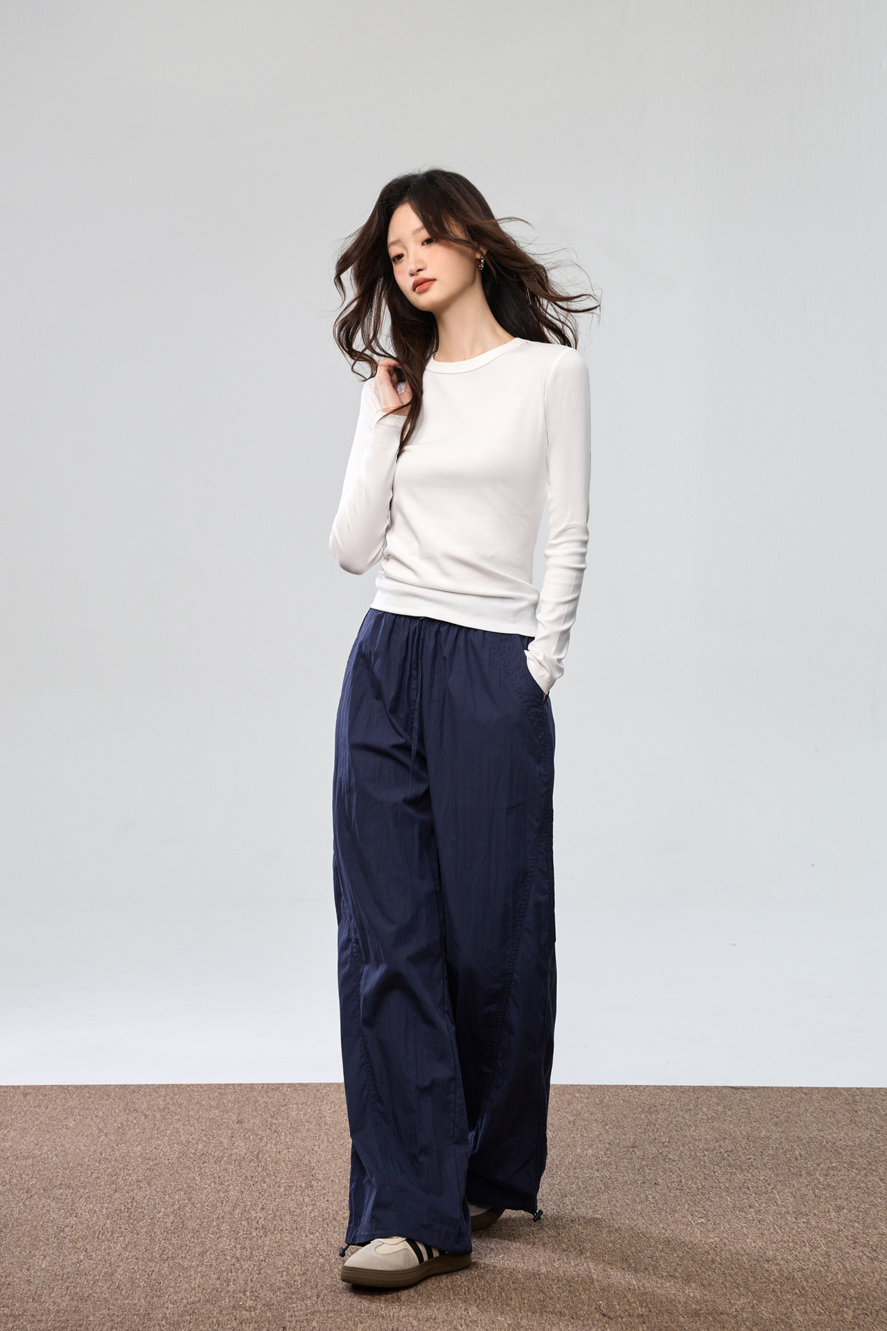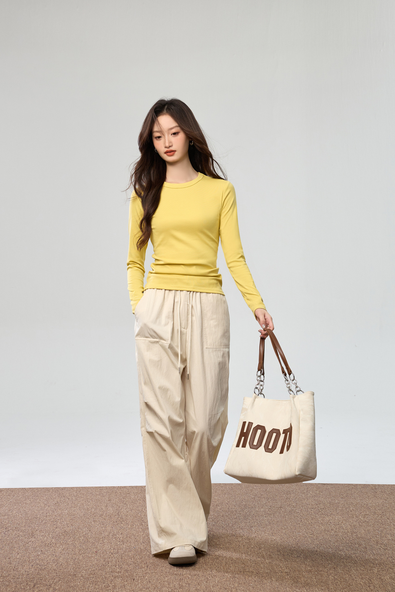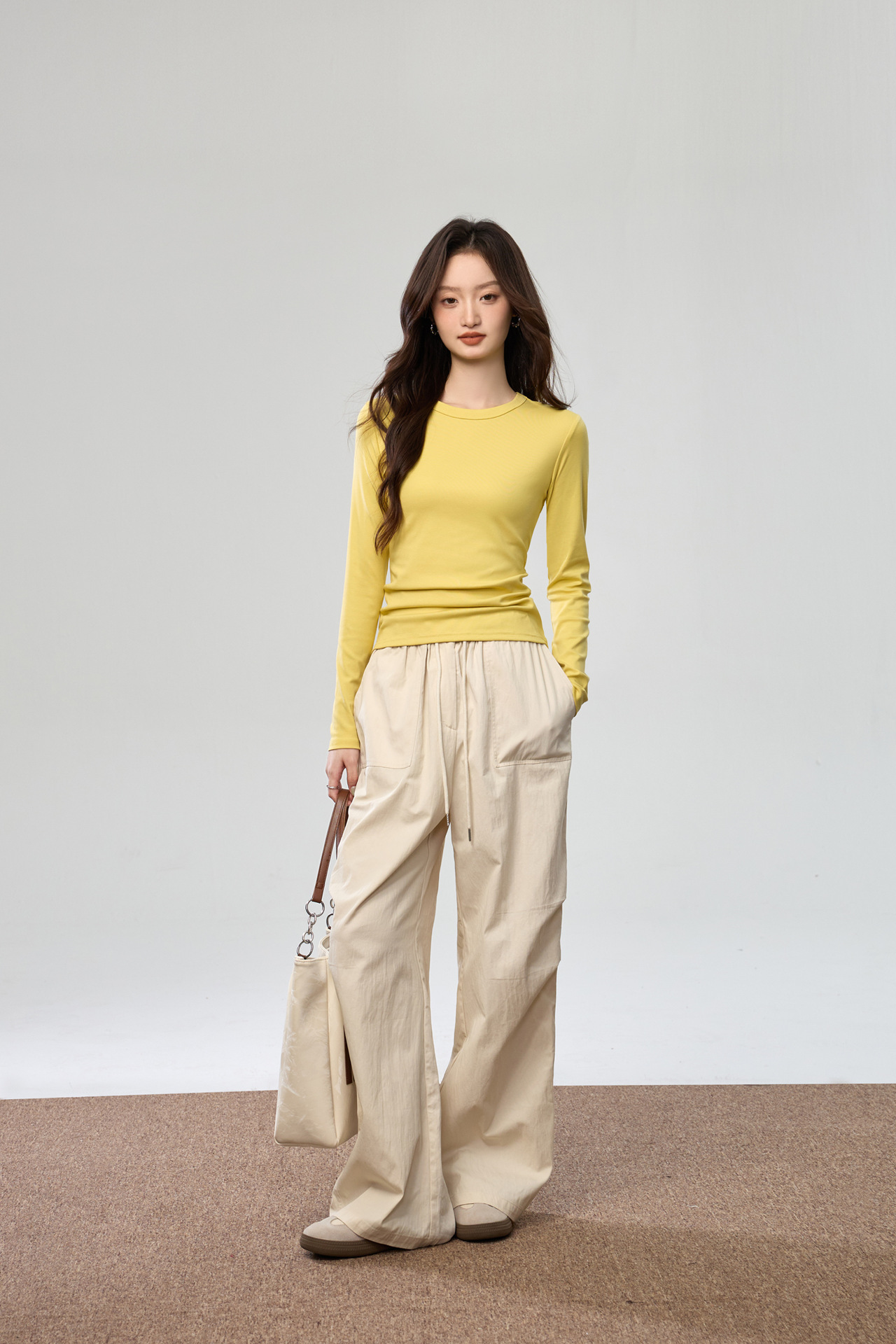 Combed pure cotton, bright line design versatile 2026 autumn new long-sleeved T-shirt women's simple crew neck bottoming shirt top