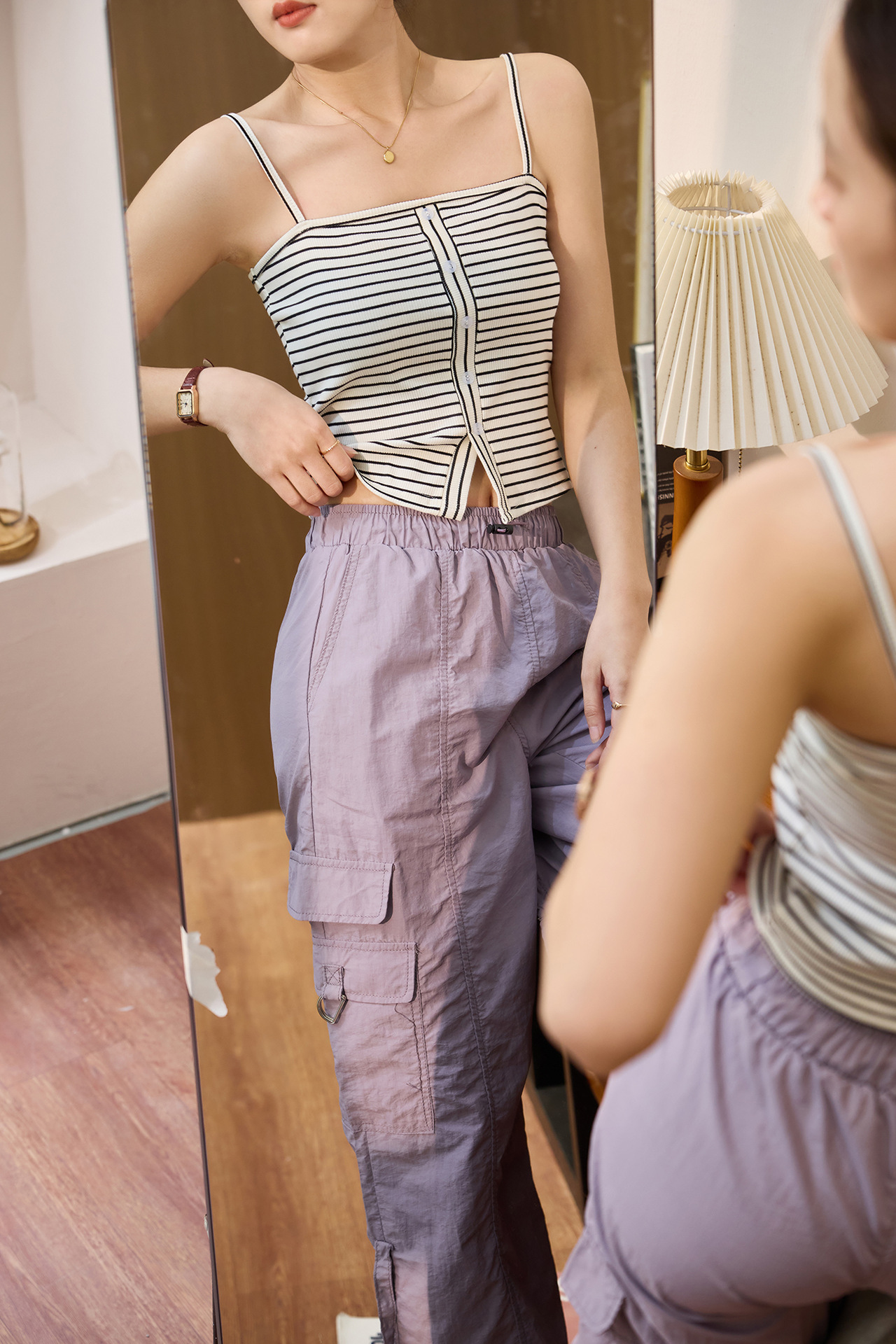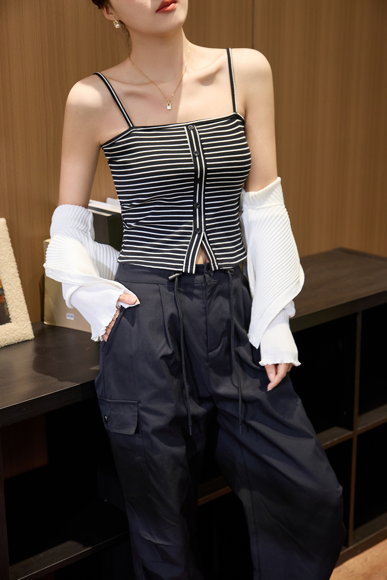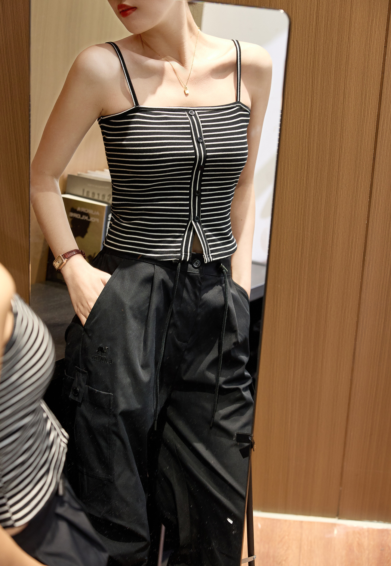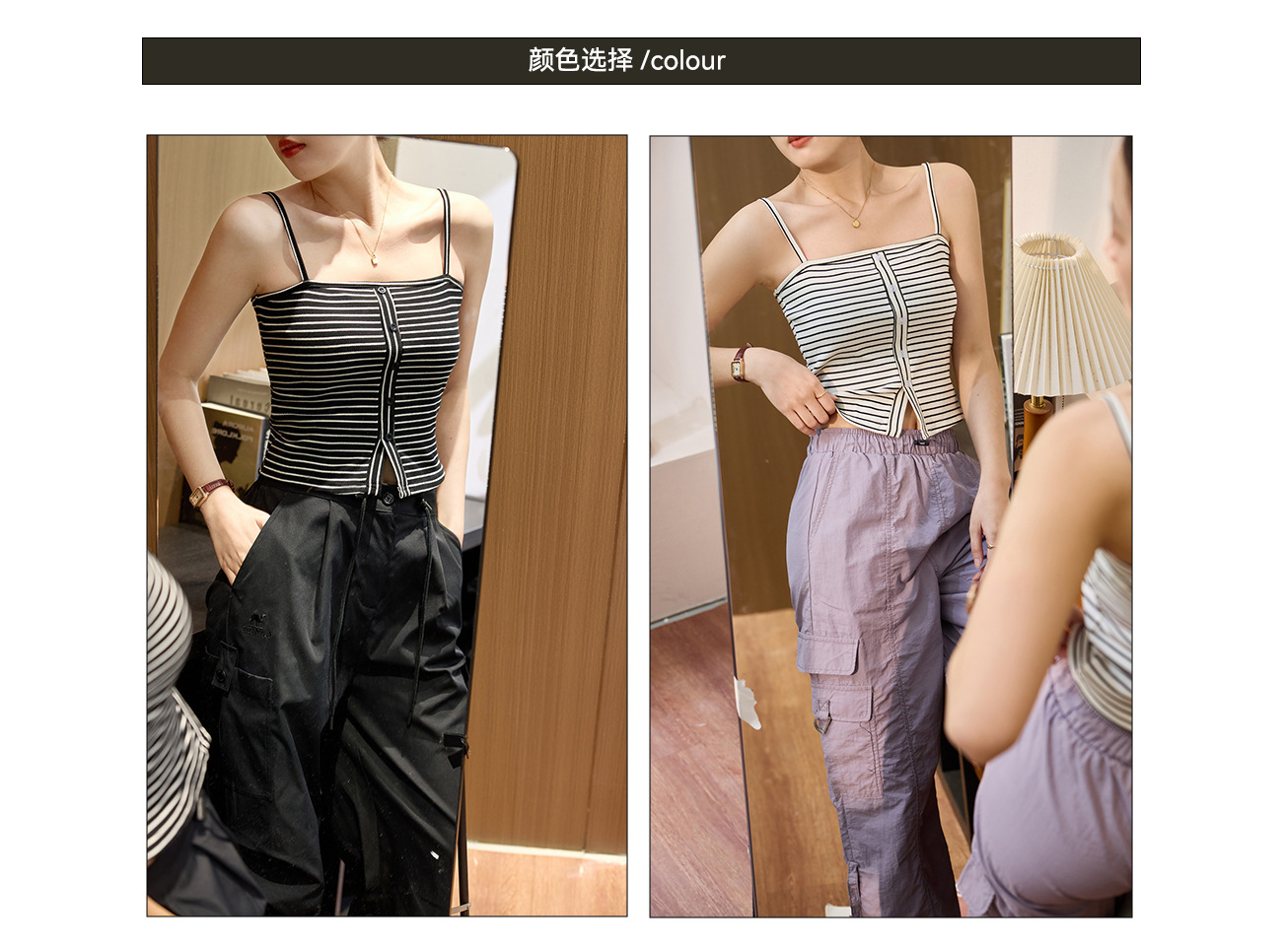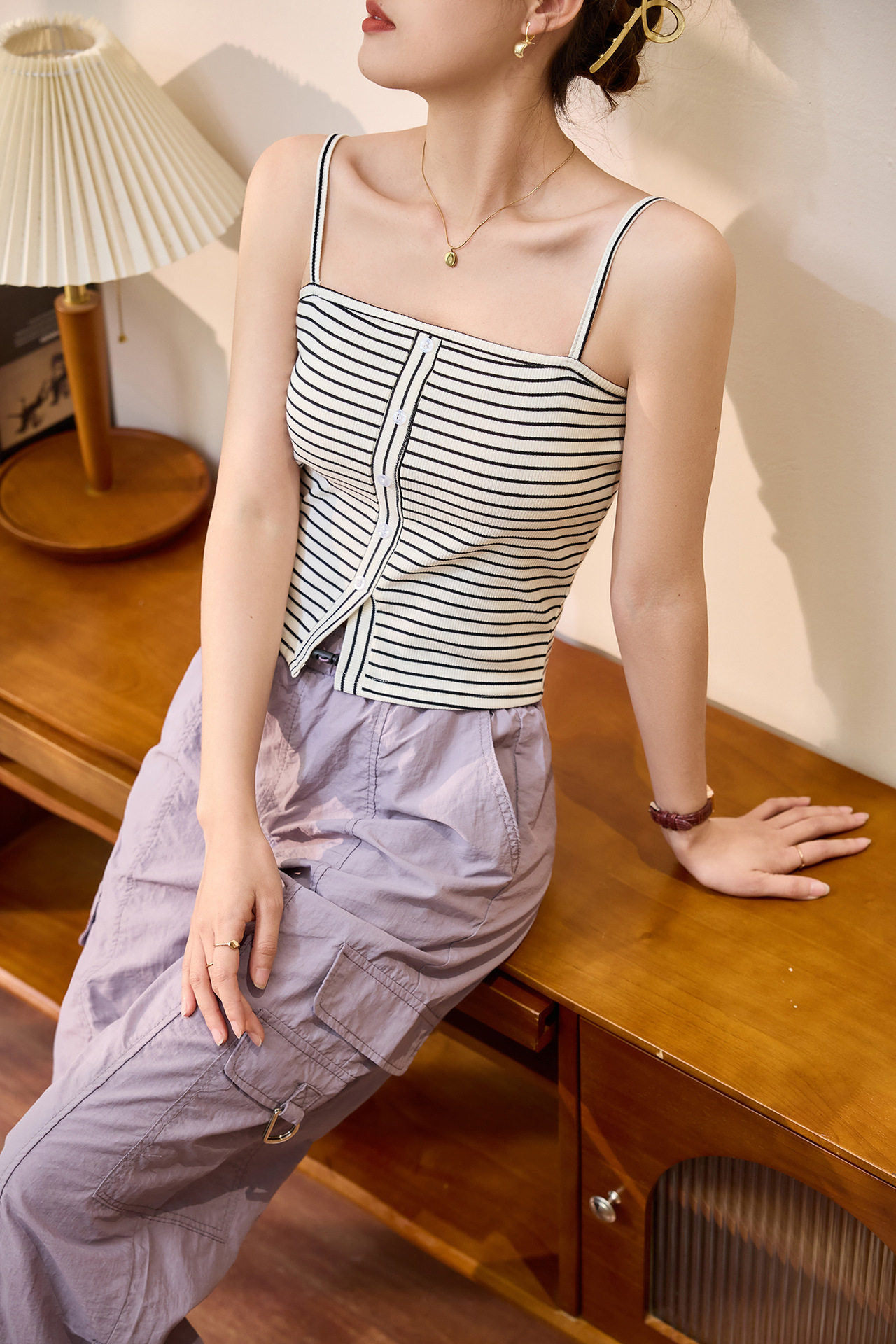 #Combed pure cotton #Design sense striped sling vest women's summer 2026 new Spice Girl off-the-shoulder bottom top