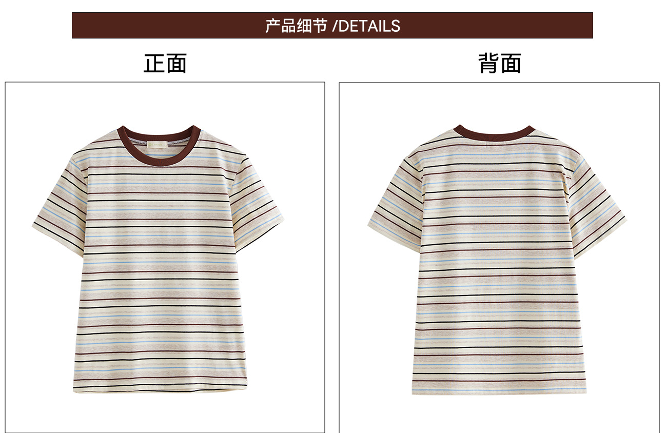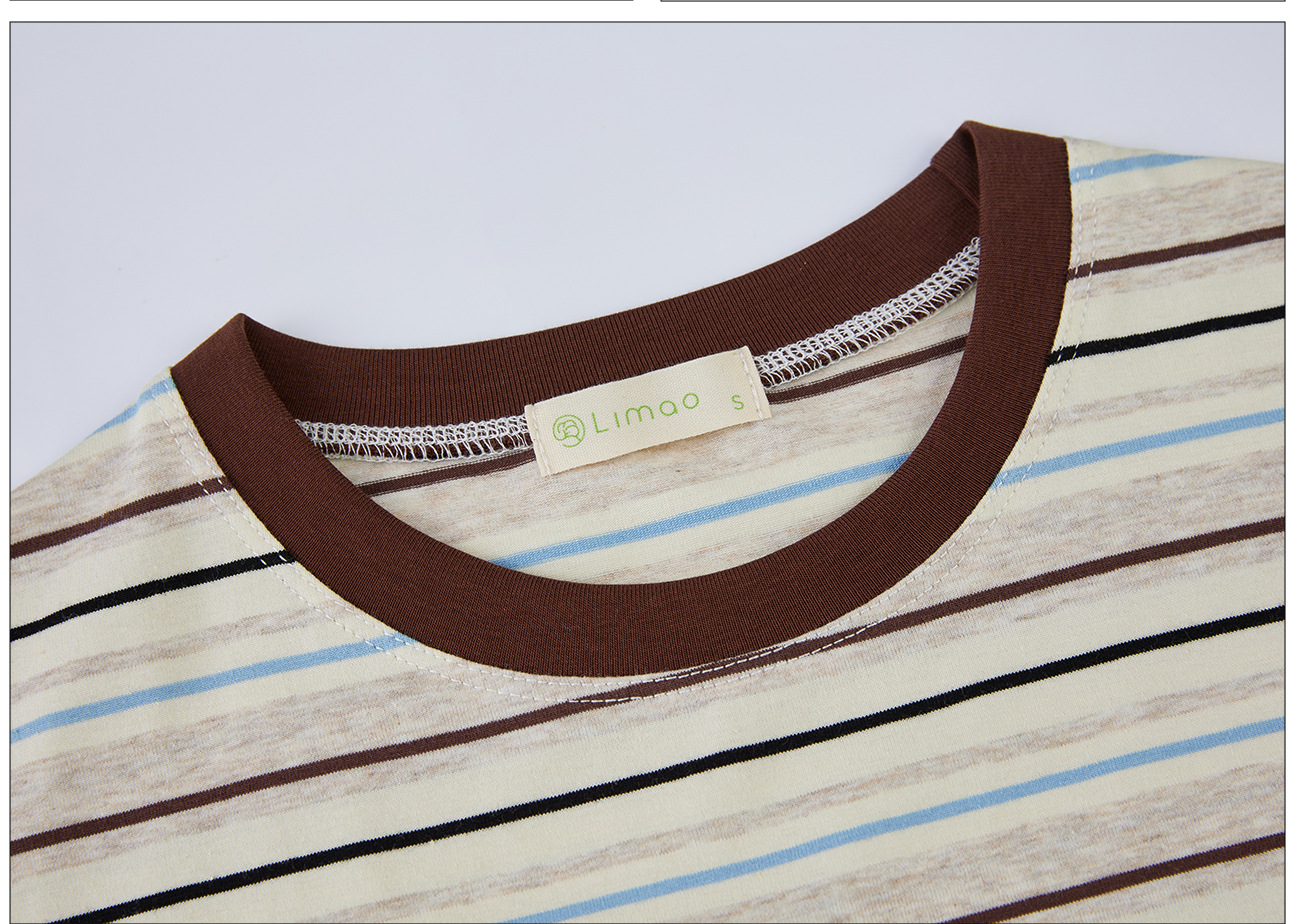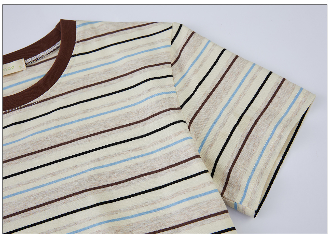 #Combed pure cotton #medium and long loose retro rainbow striped short-sleeved t-shirt women's summer 2026 new lazy top