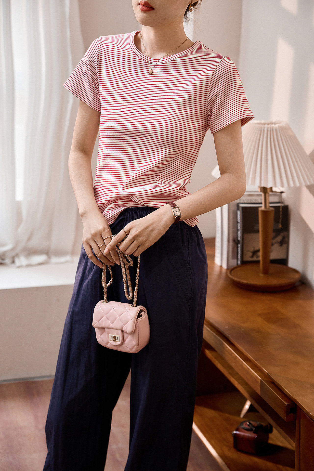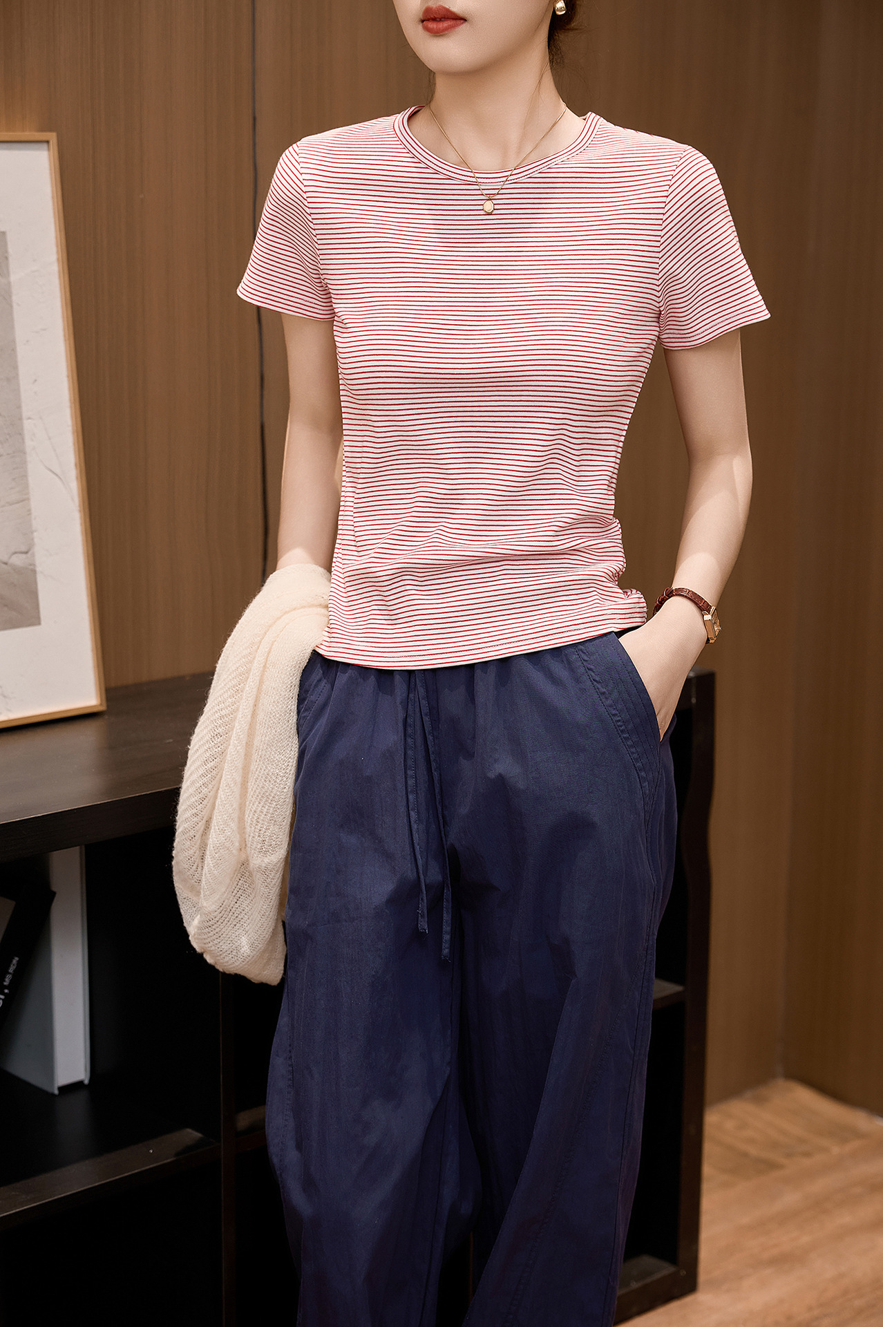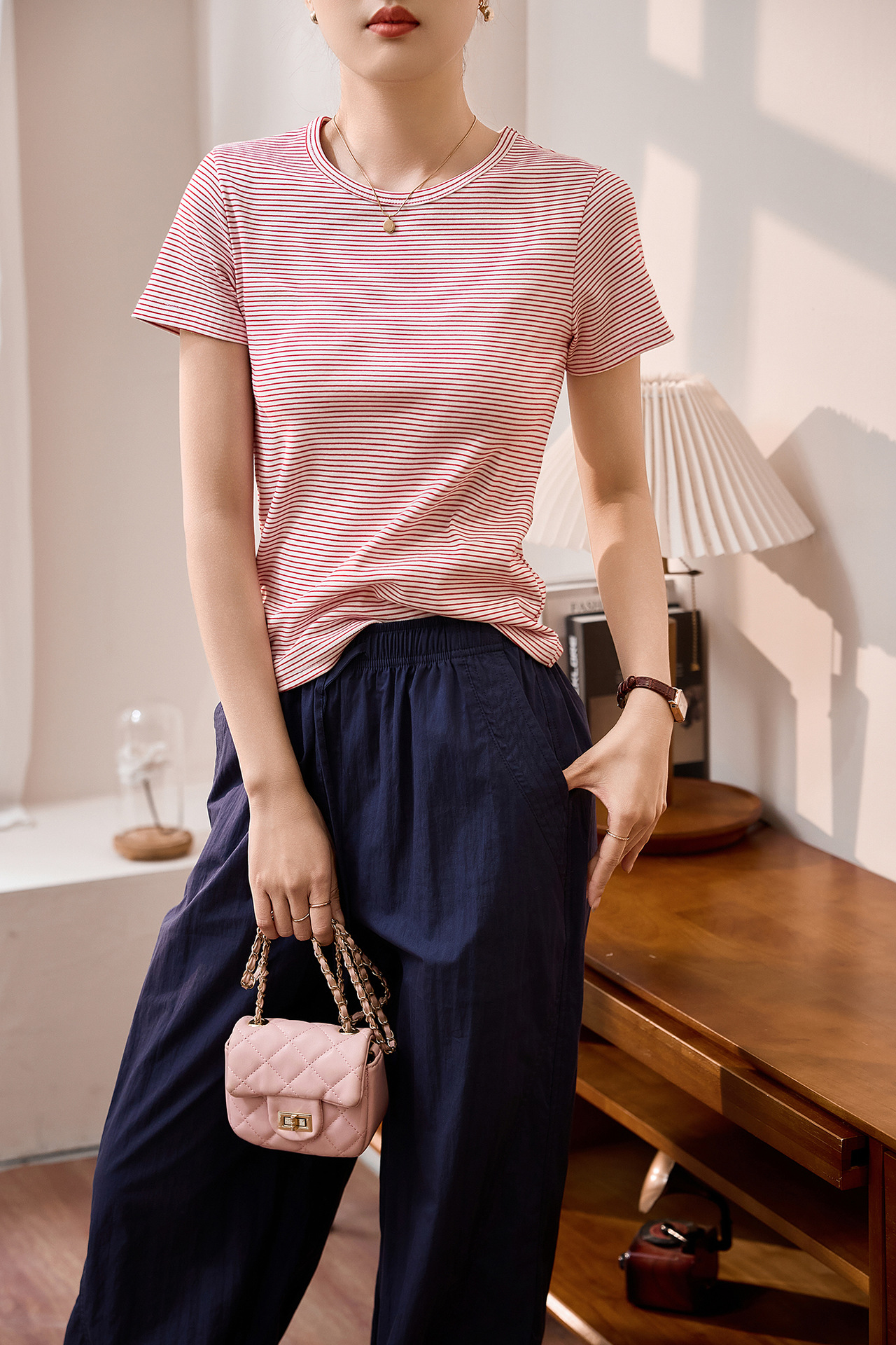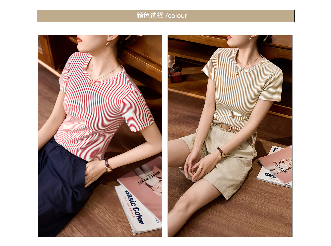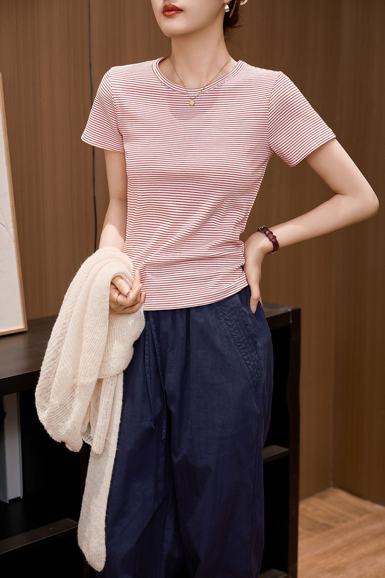 #Combed pure cotton #striped t-shirt women's short sleeve 2026 summer new slim and thin casual versatile crew neck top