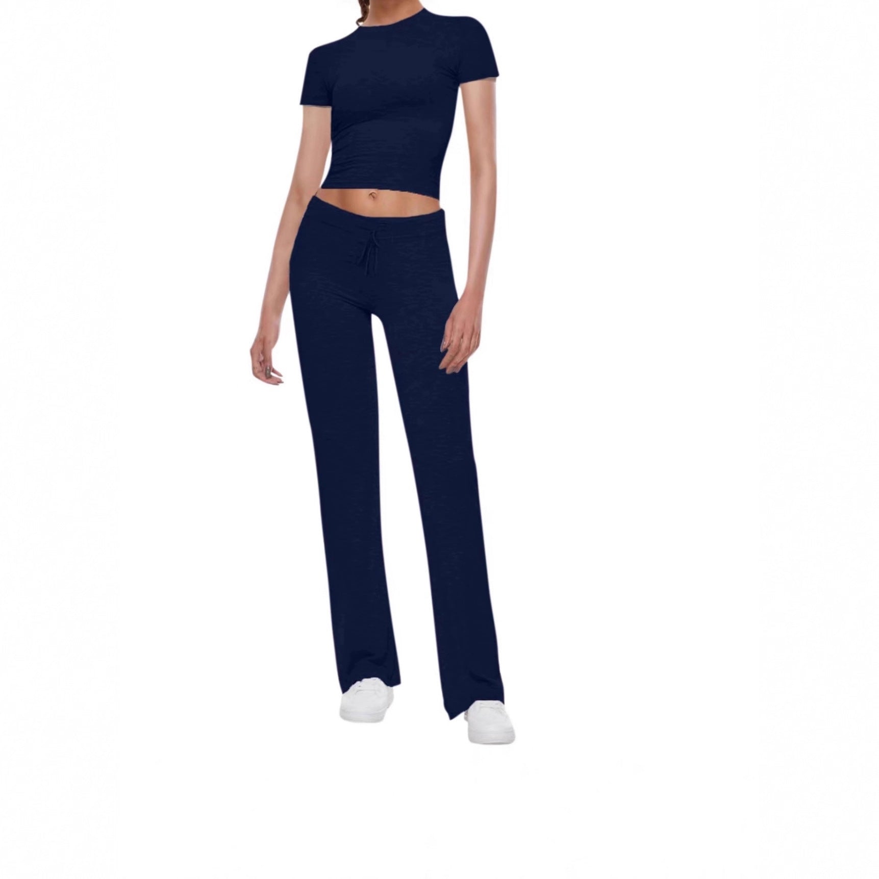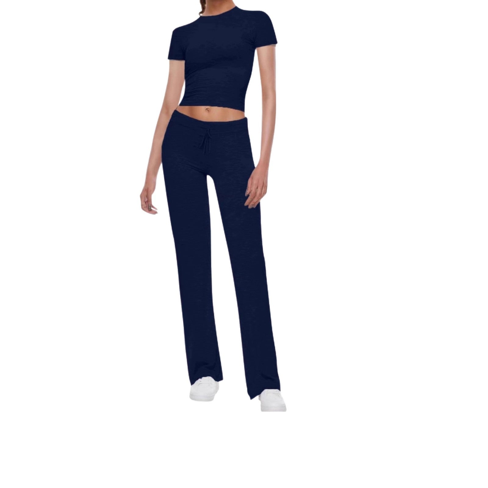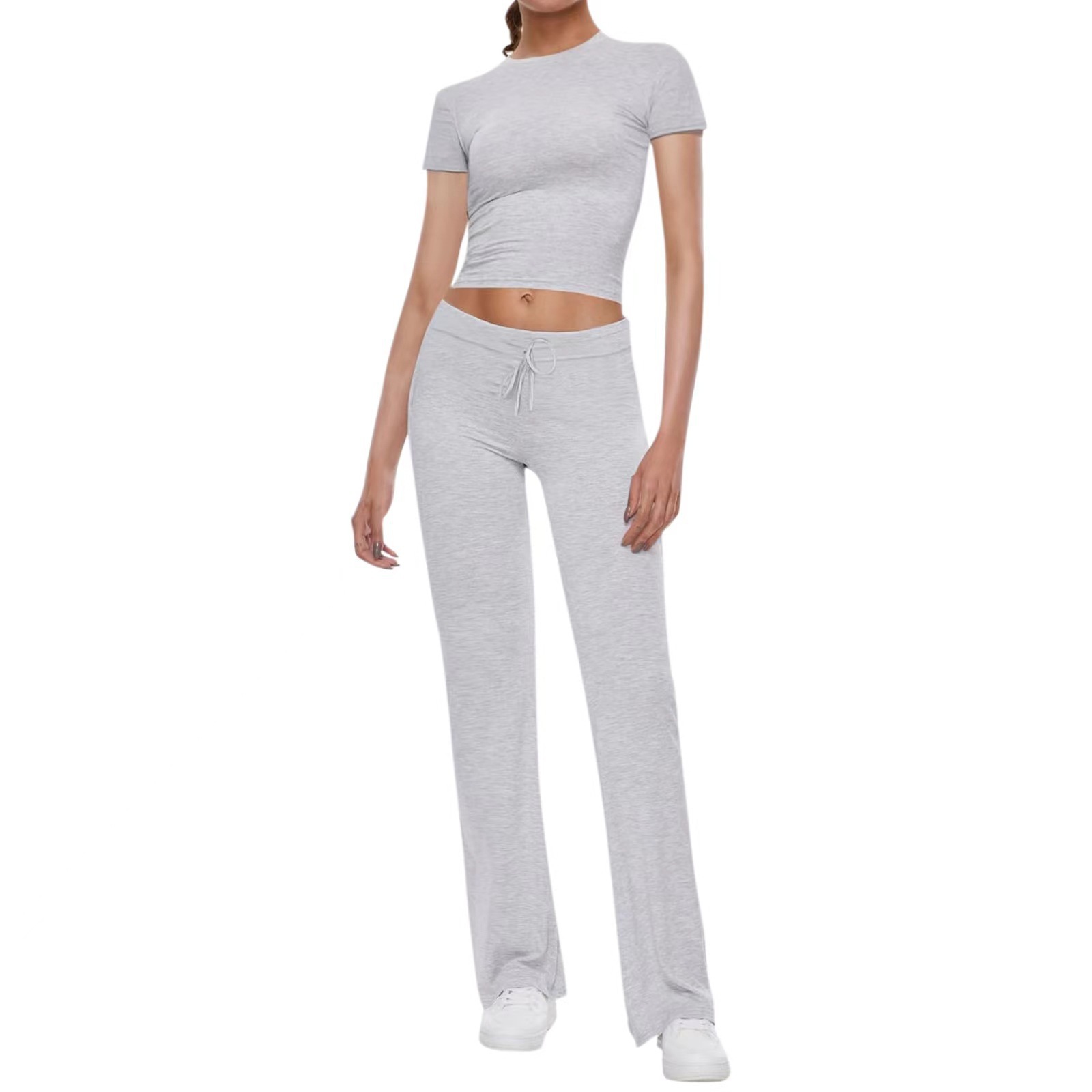Cross-border 2025 American basic casual solid color T-shirt casual pants flanged waist short-sleeved Spice Girls sports suit
