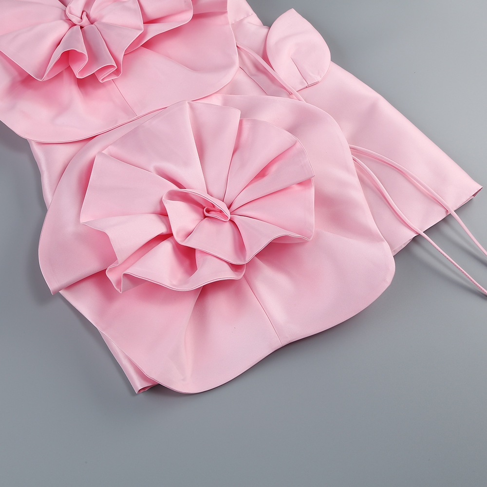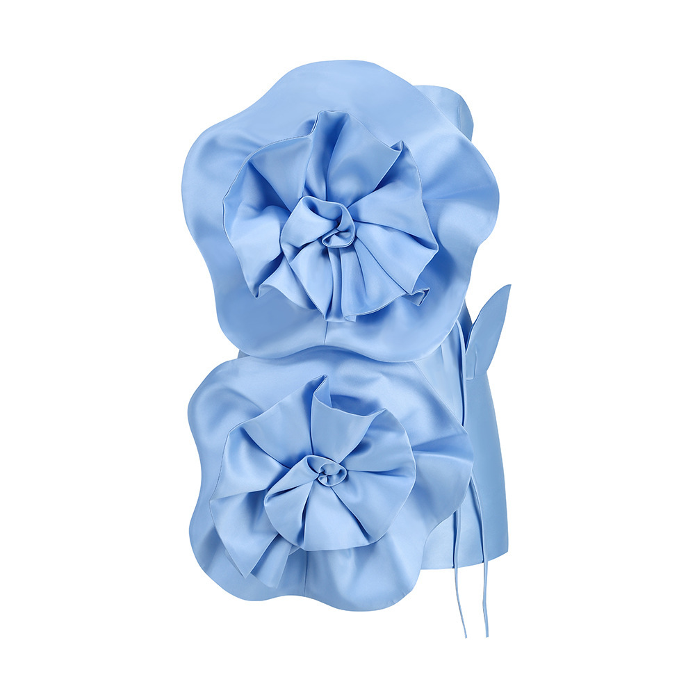 Cross-border French high-end three-dimensional flower sleeveless short skirt women's design dress waist strap bandeau dress