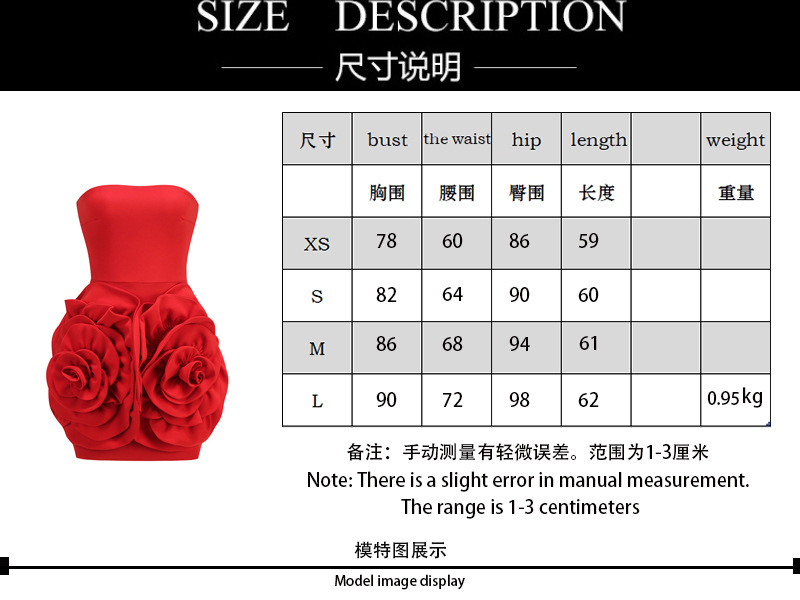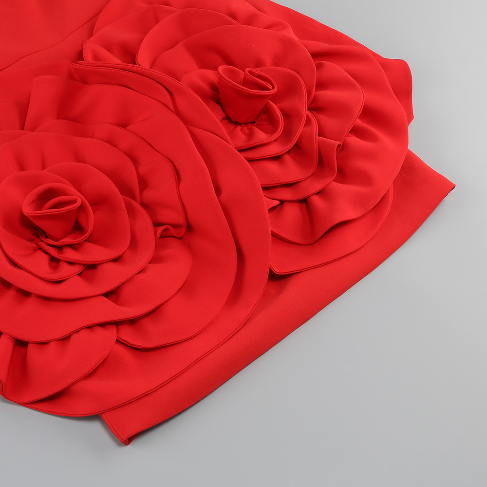 Cross-border high-end design women's clothing sexy decoration three-dimensional flower banquet dress femininity backless tube top dress