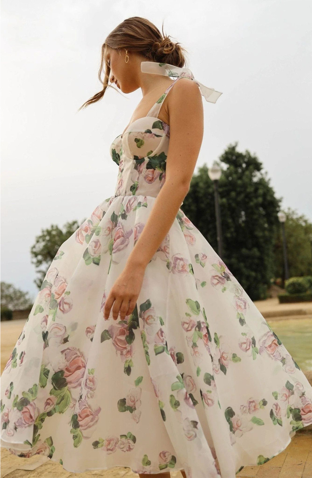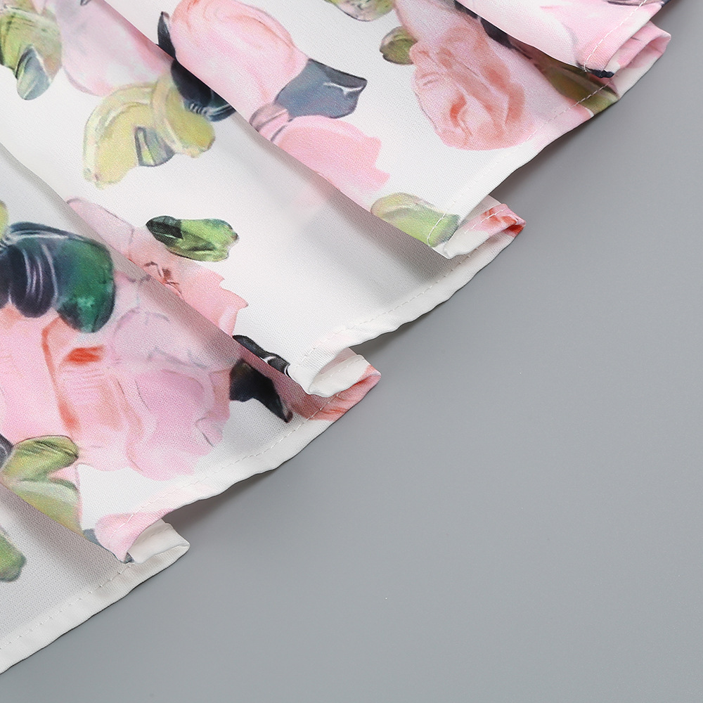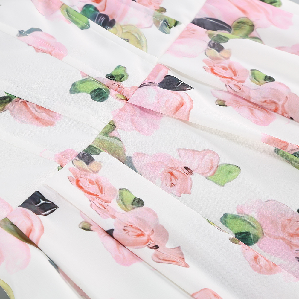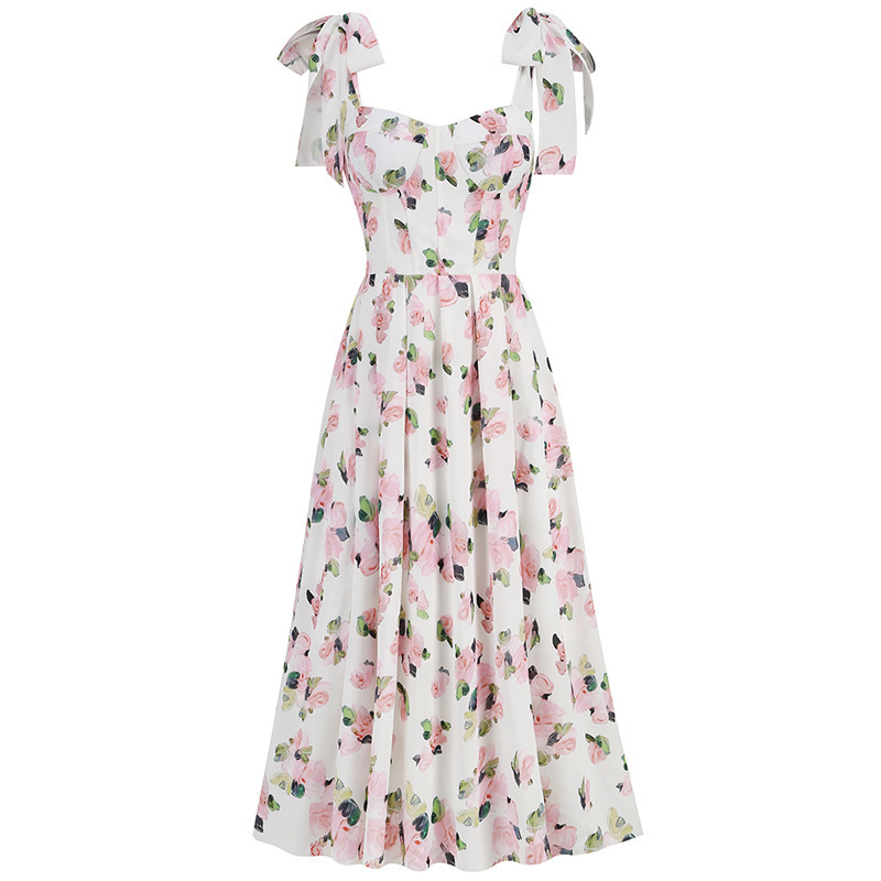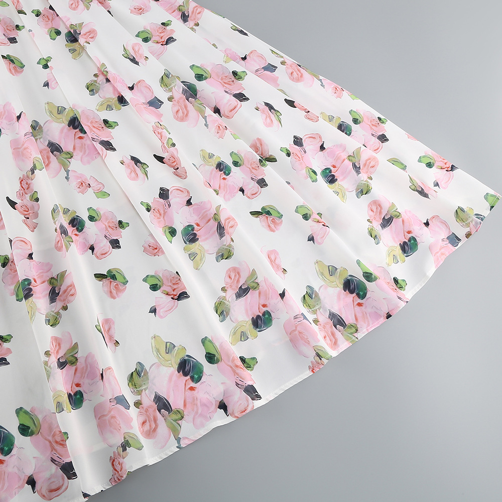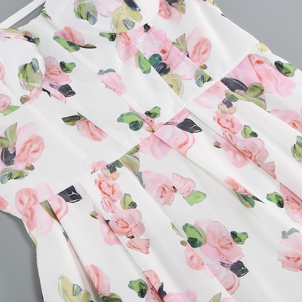Cross-border high-end sexy shoulder straps suspender skirt women's printed pendulum medium and long banquet dress dress elegant