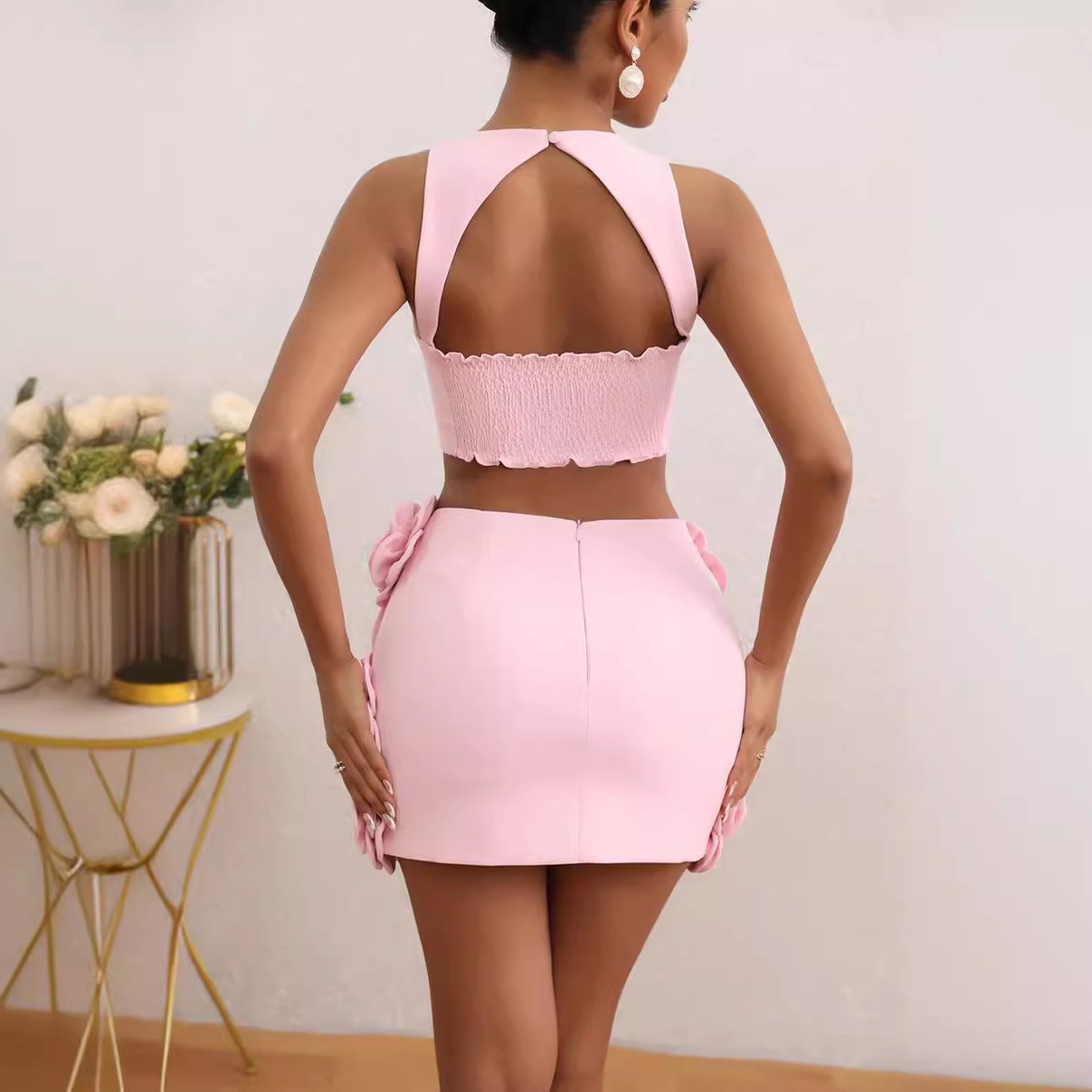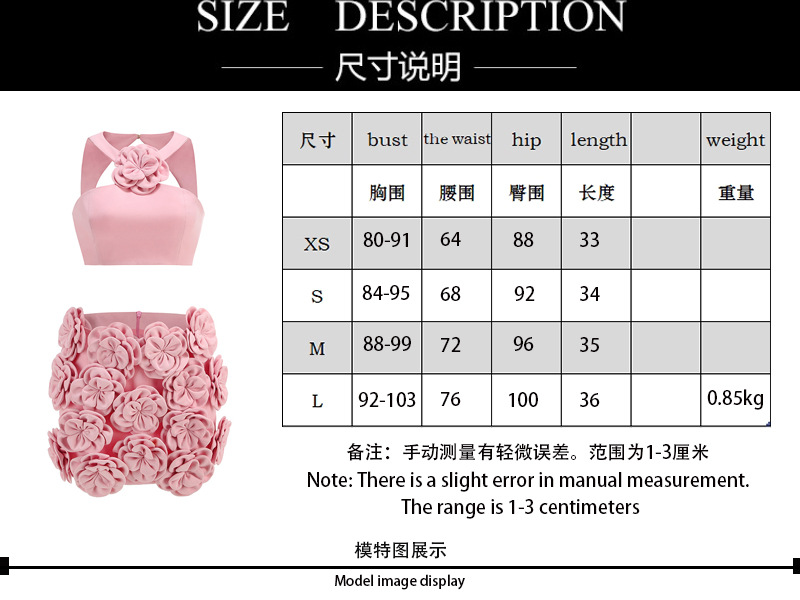 Cross-border sexy fashion suit top neck decoration flower skirt temperament women's short skirt two-piece set with suspenders