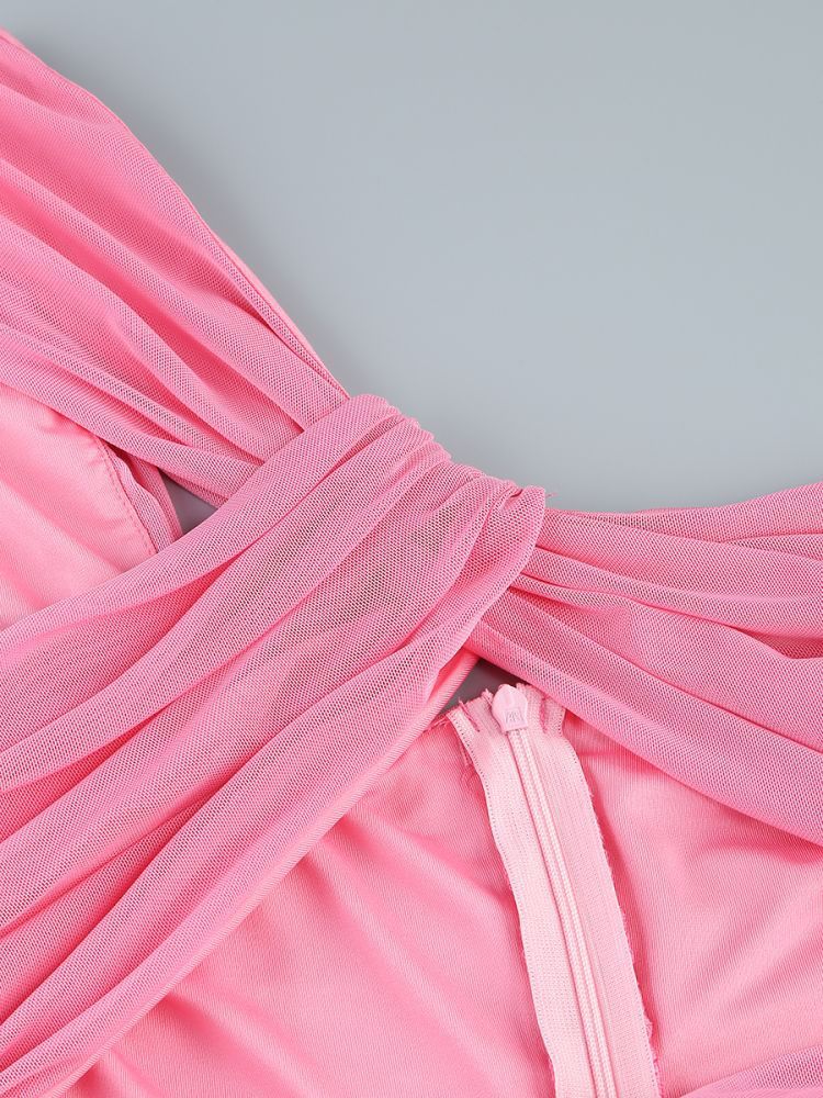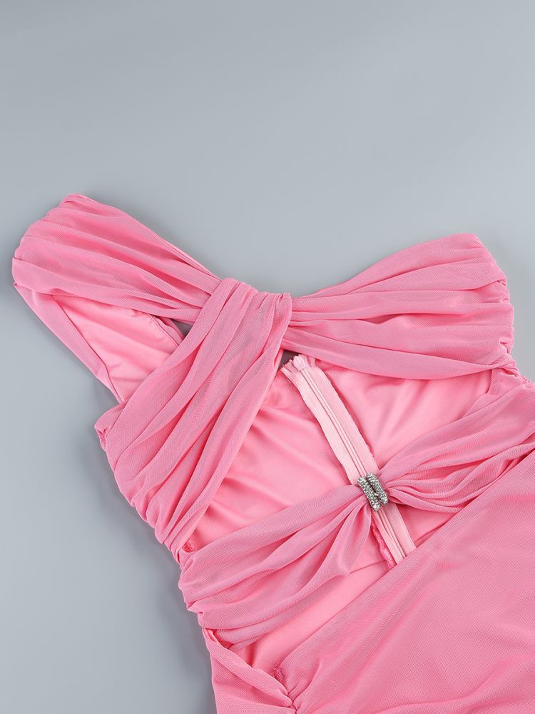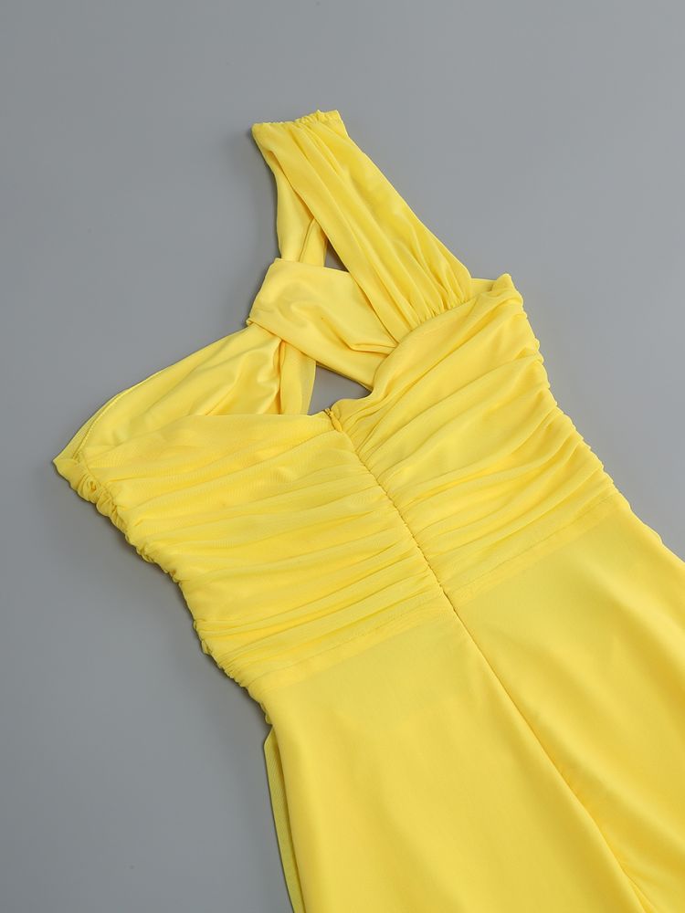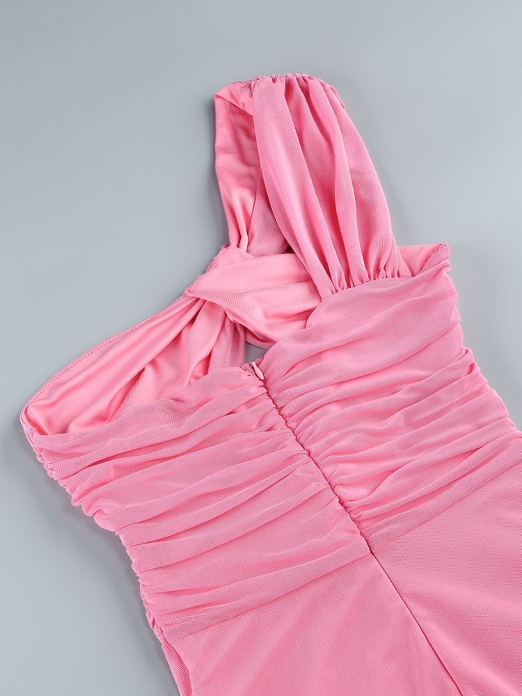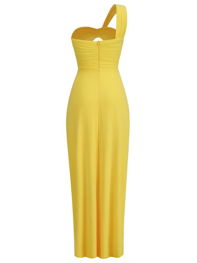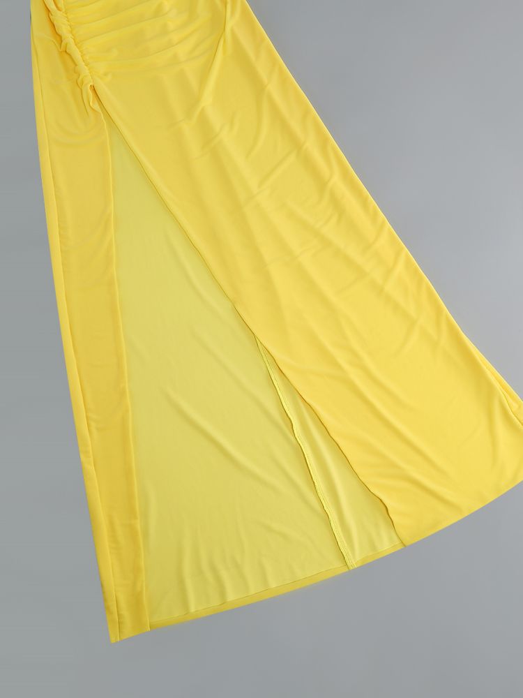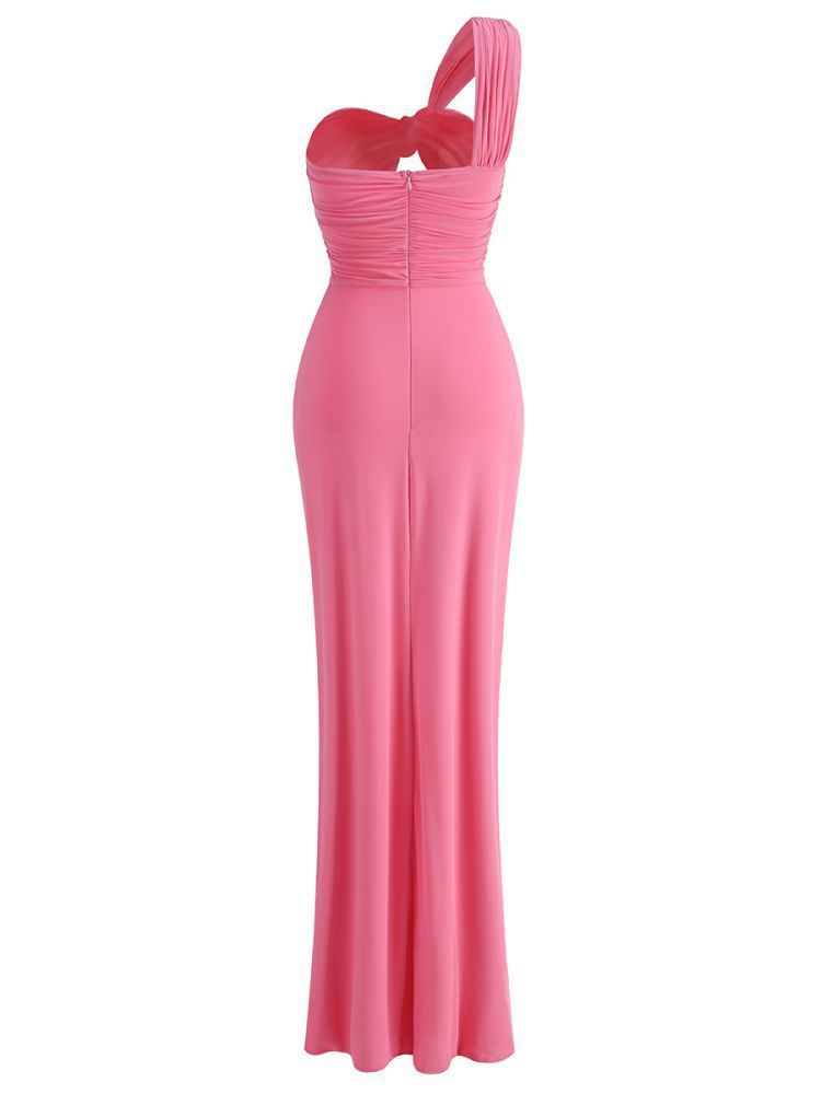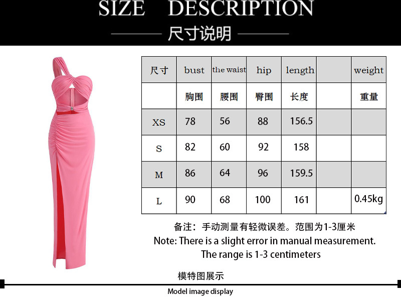 Cross-border women's off-the-shoulder kinked chest-wrapped dress women's high split solid color evening banquet dress skirt elegant temperament