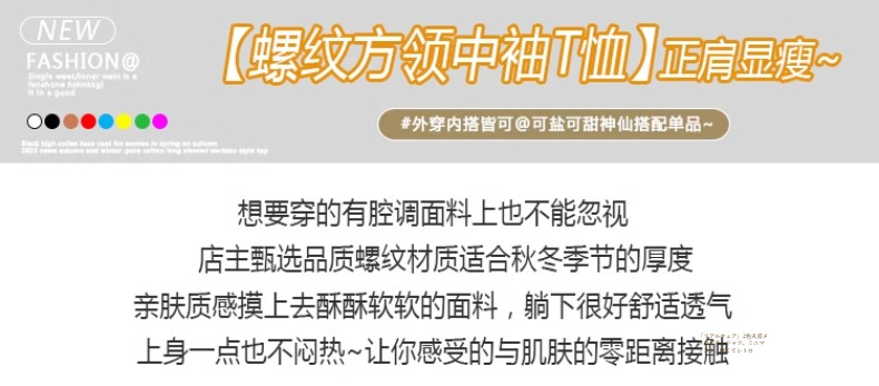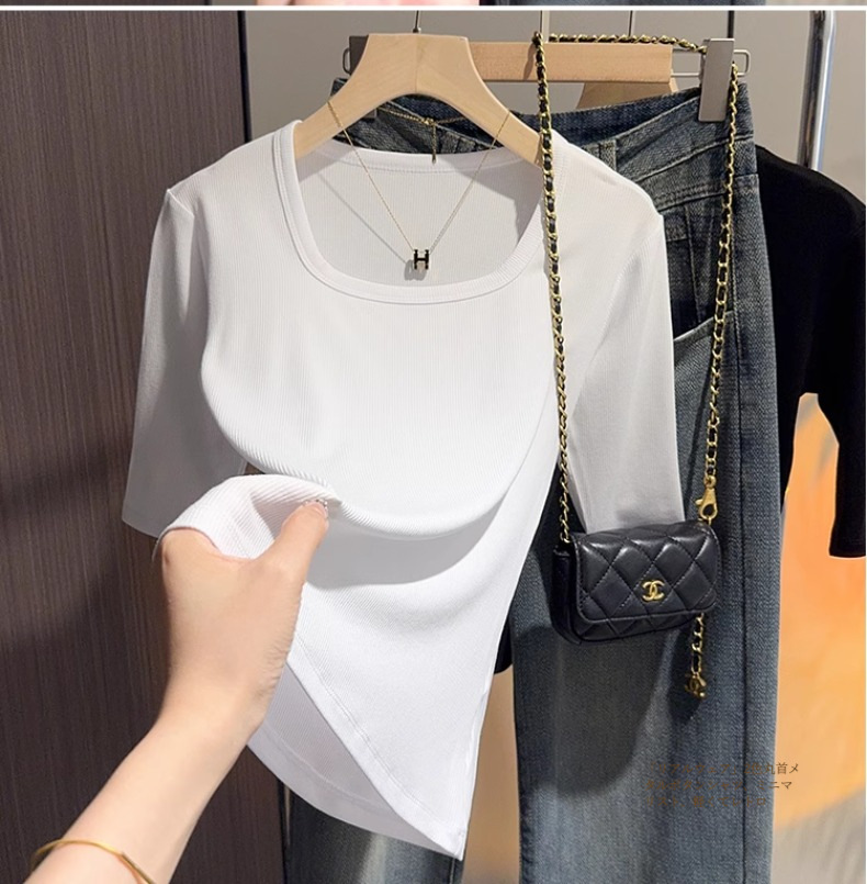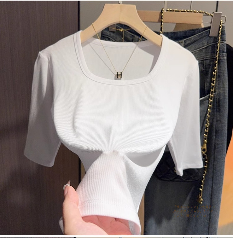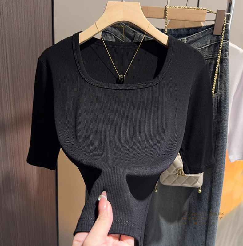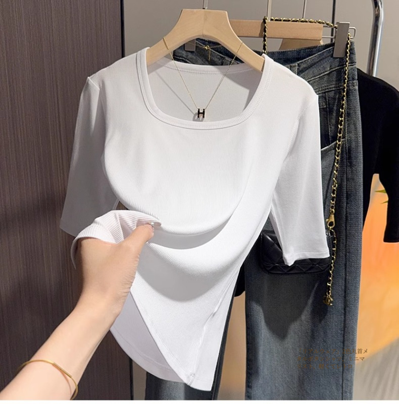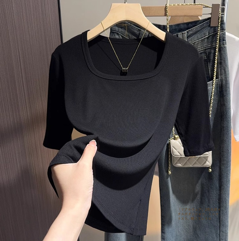 Dark gray square neck five-quarter-sleeved t-shirt women's 2025 summer new slim-fitting medium-sleeved thin bottom half-sleeved top
