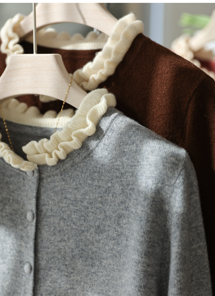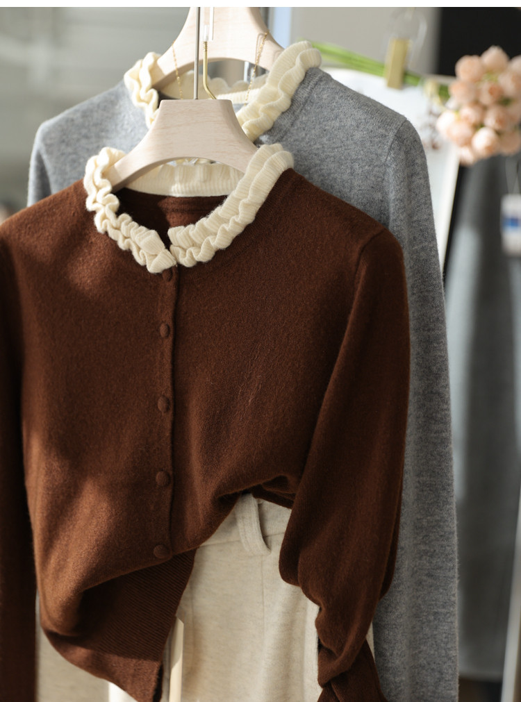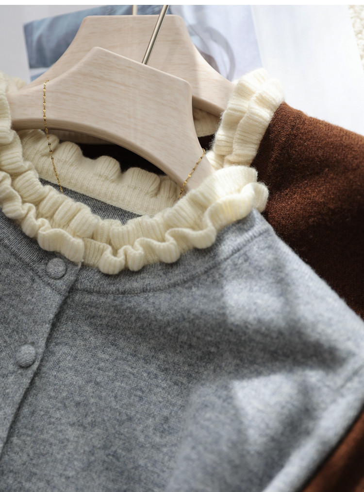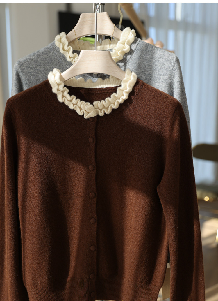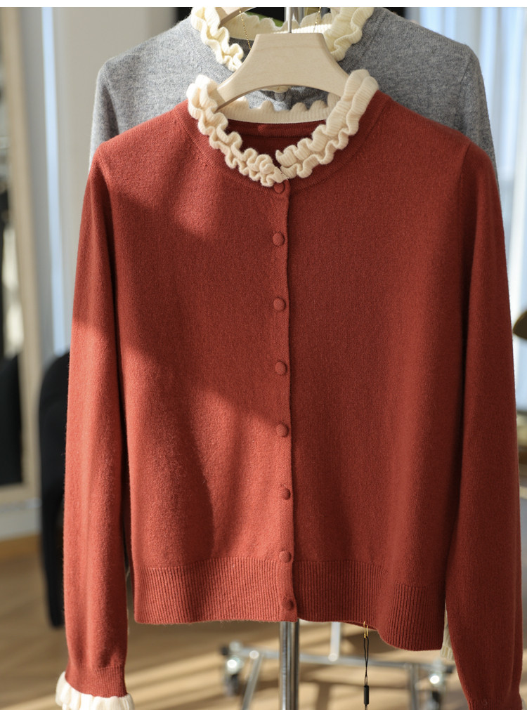 Difference between market products! Cashmere version! Fungus lace stand-up collar cashmere cashmere sweater thickened cardigan sweater women's autumn and winter