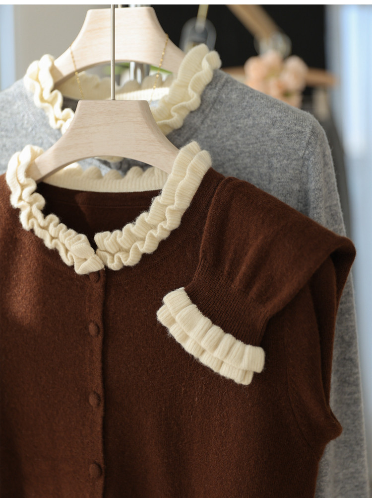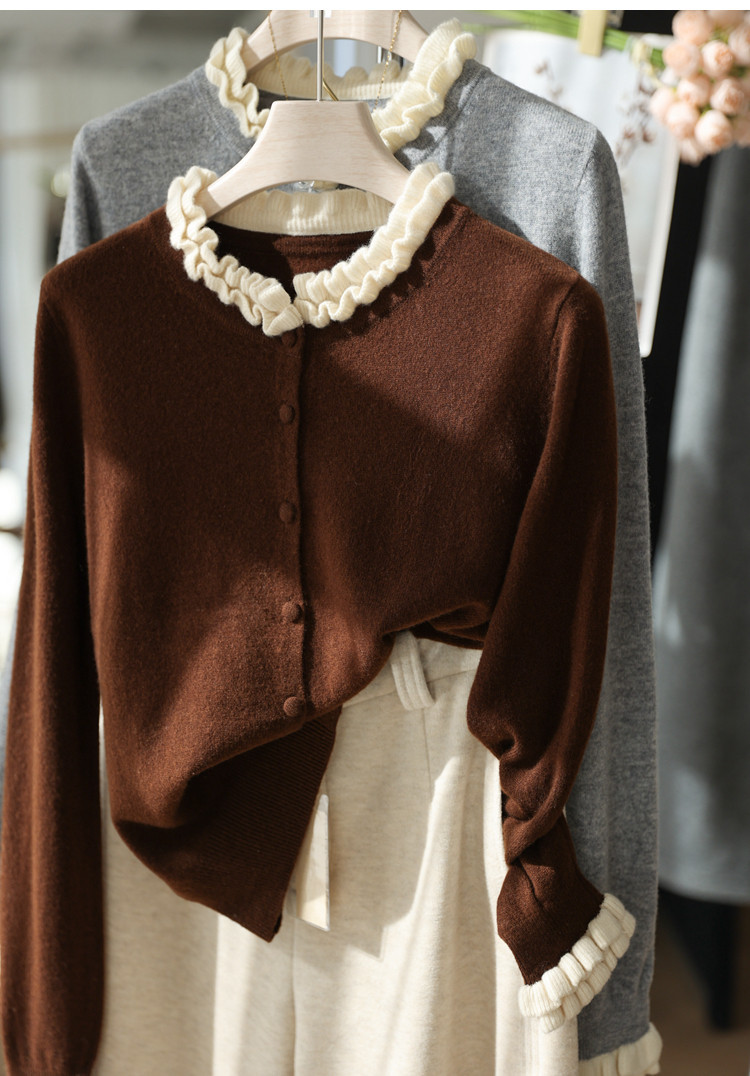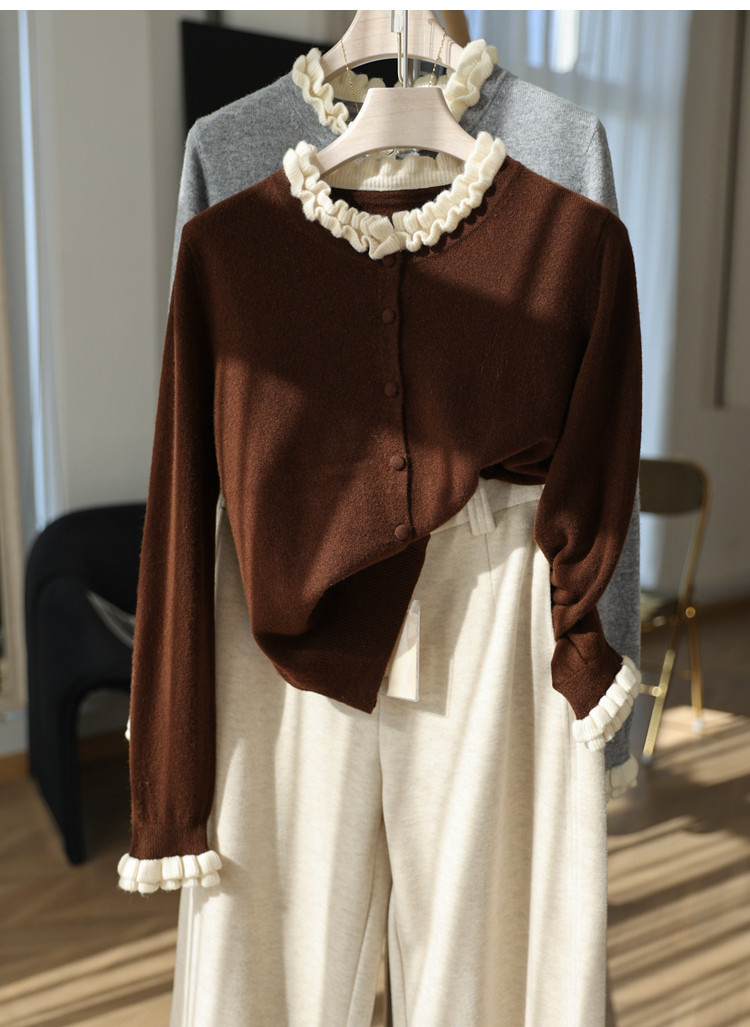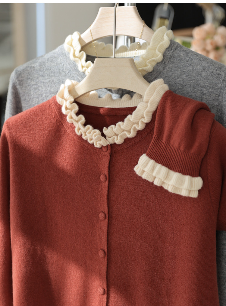 Difference between market products! Cashmere version! Fungus lace stand-up collar cashmere cashmere sweater thickened cardigan sweater women's autumn and winter