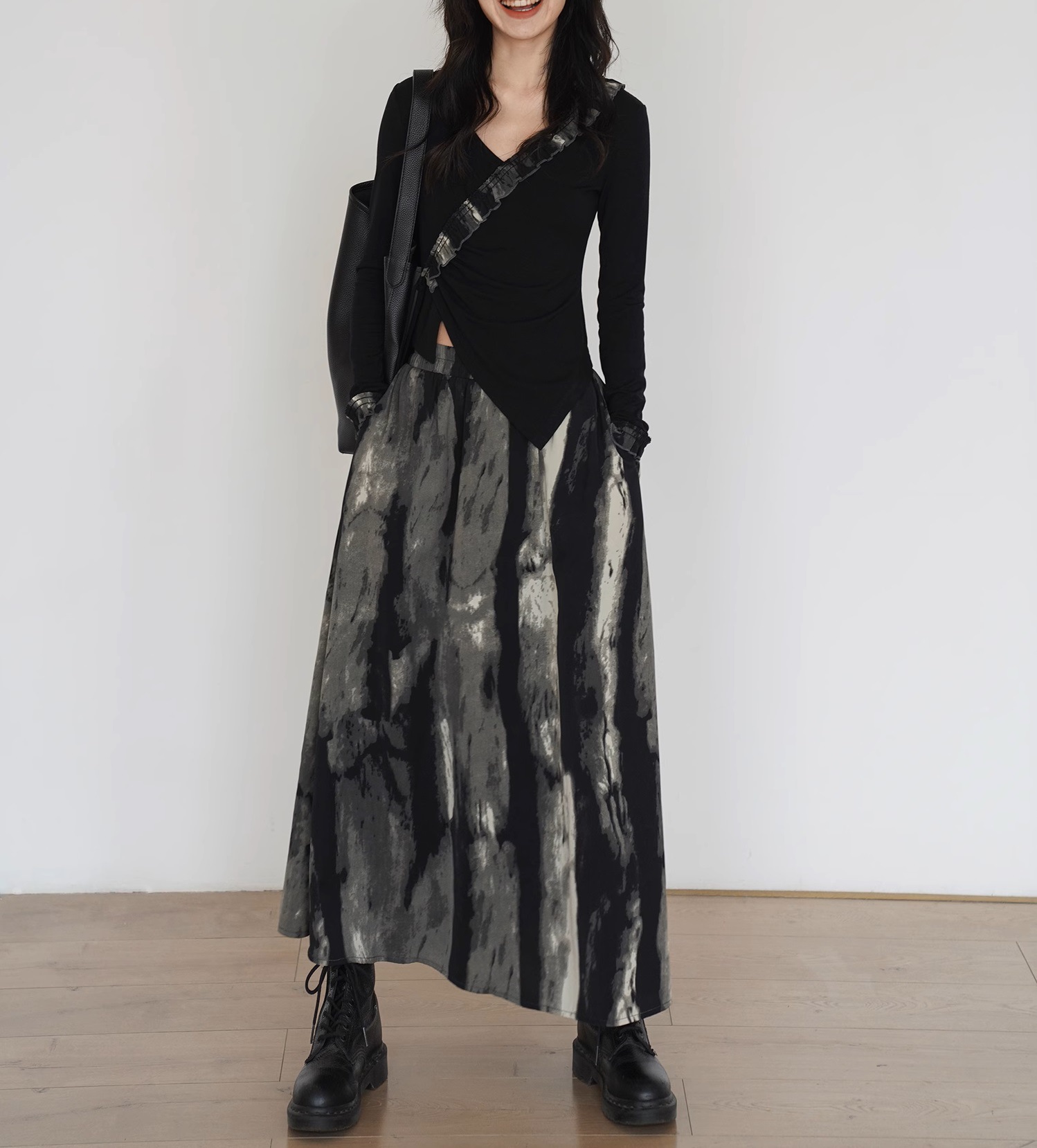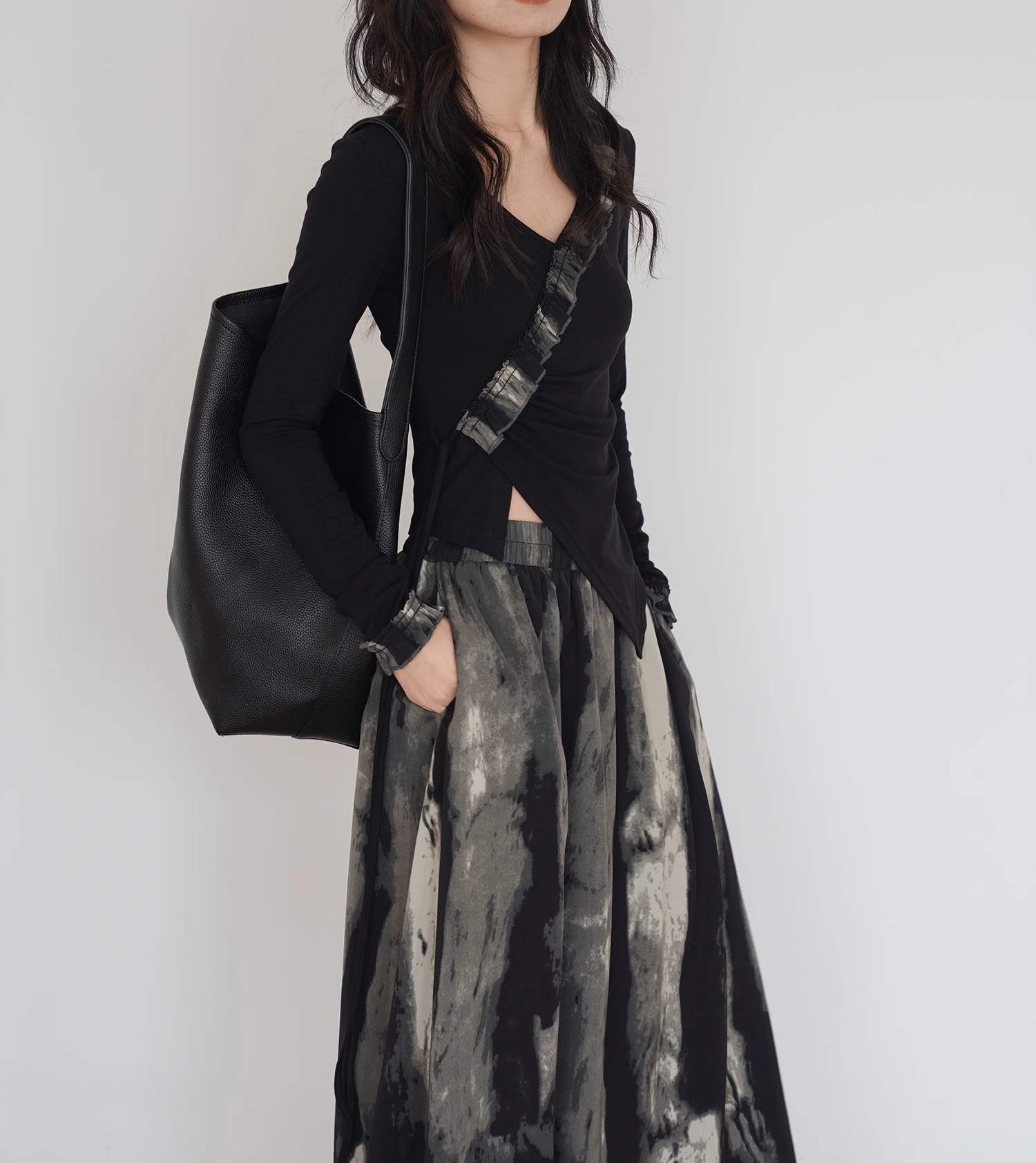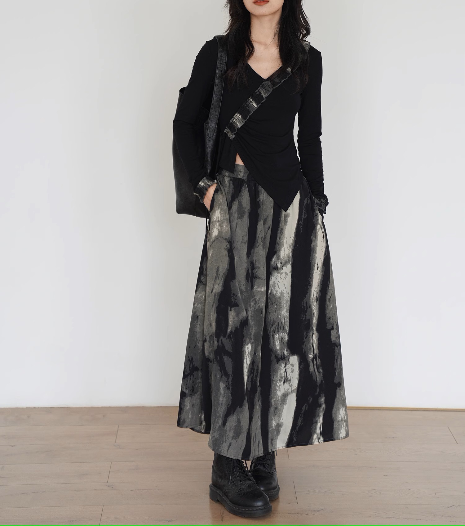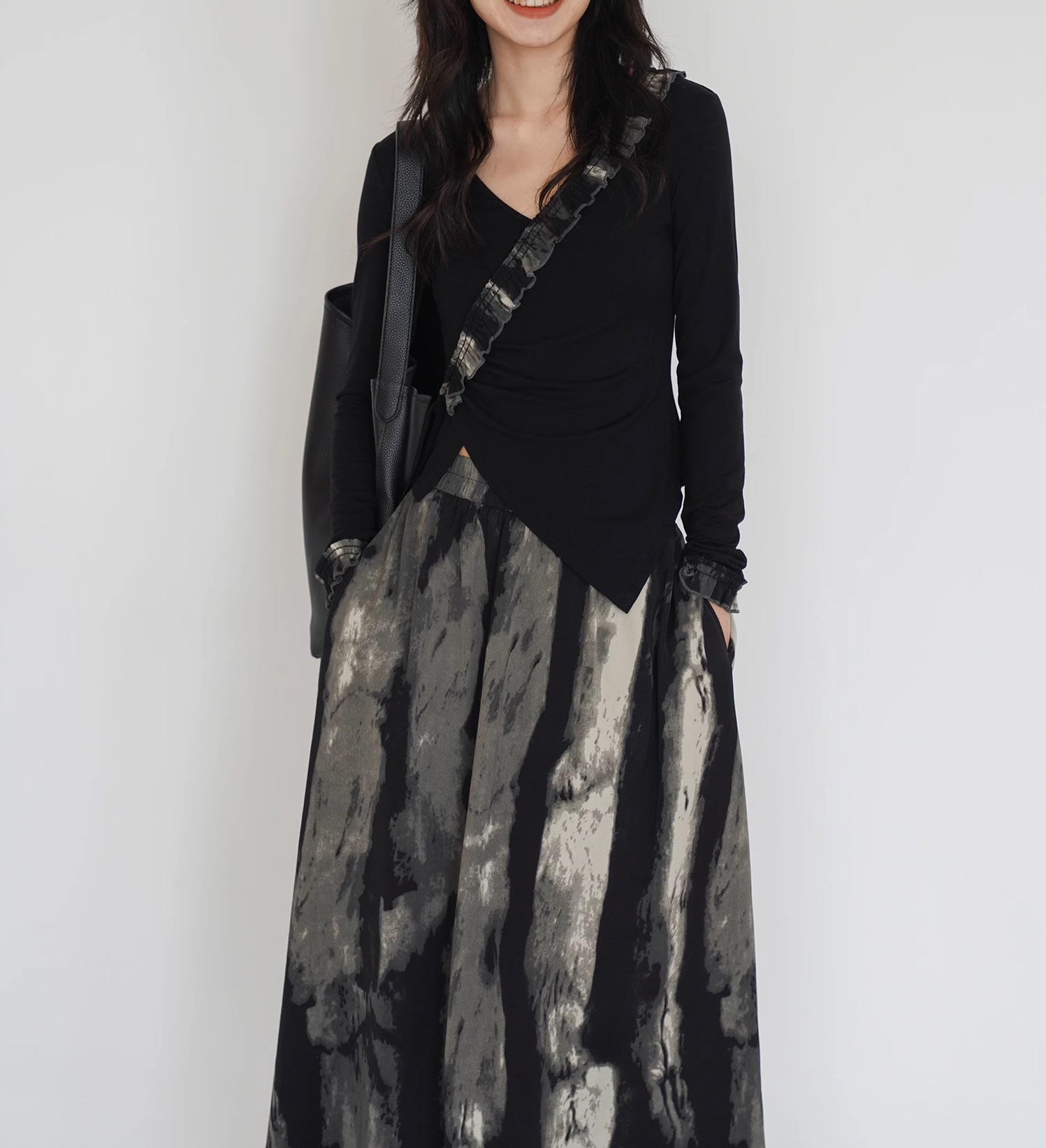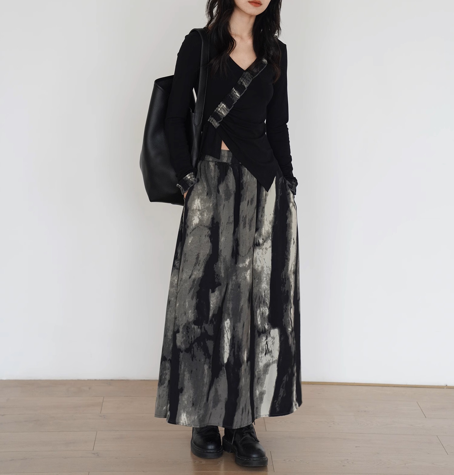 EM August, new Chinese tie-dye loose skirt women's autumn new French two-piece top skirt set