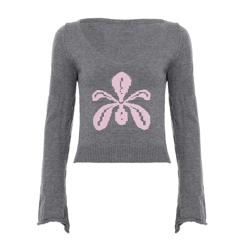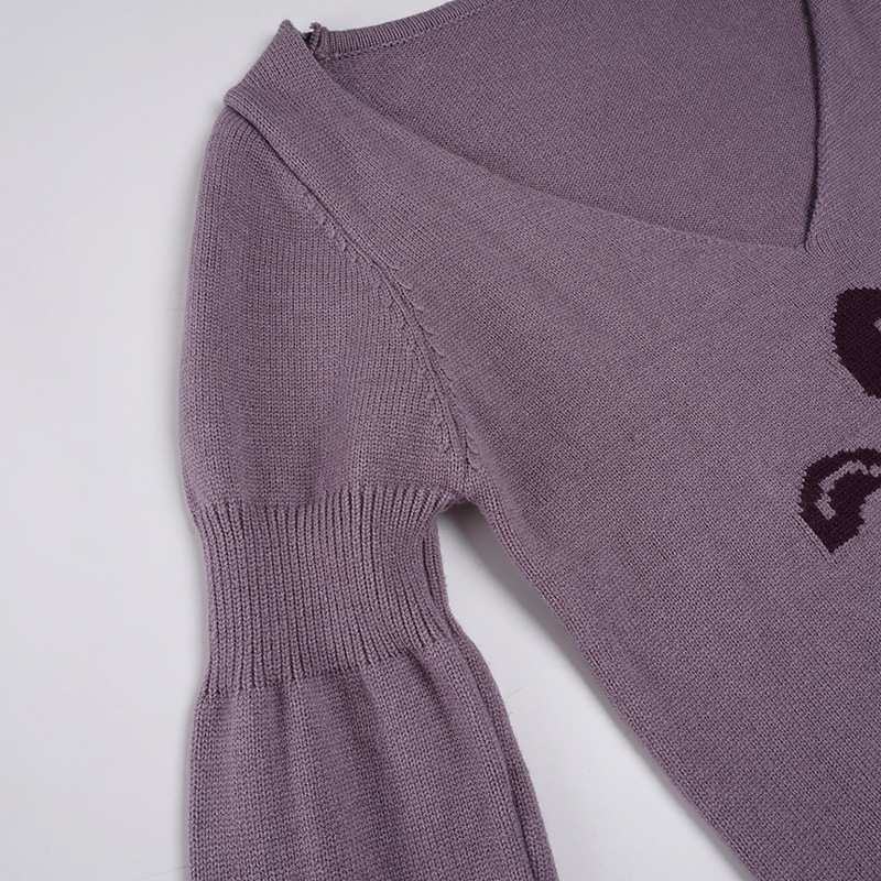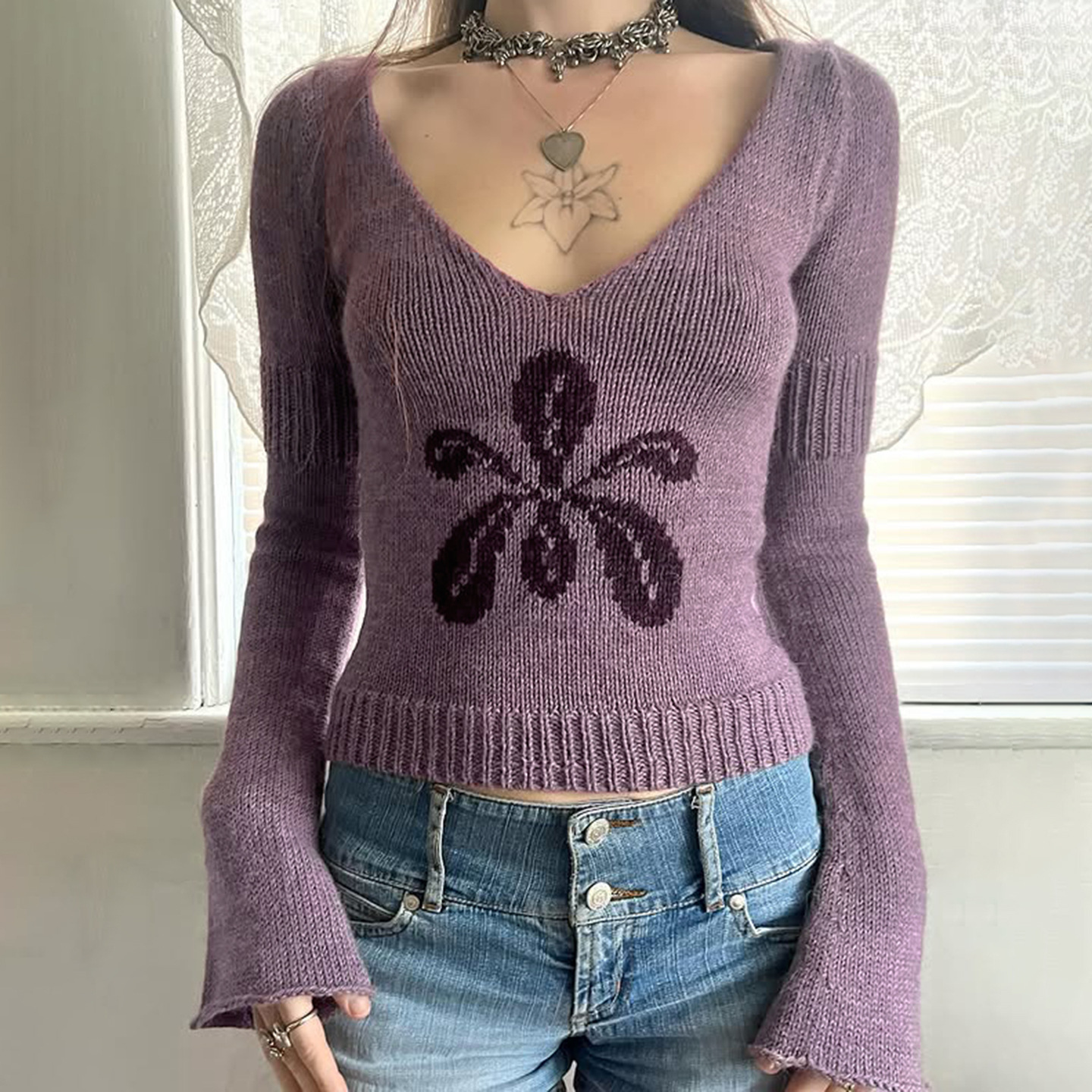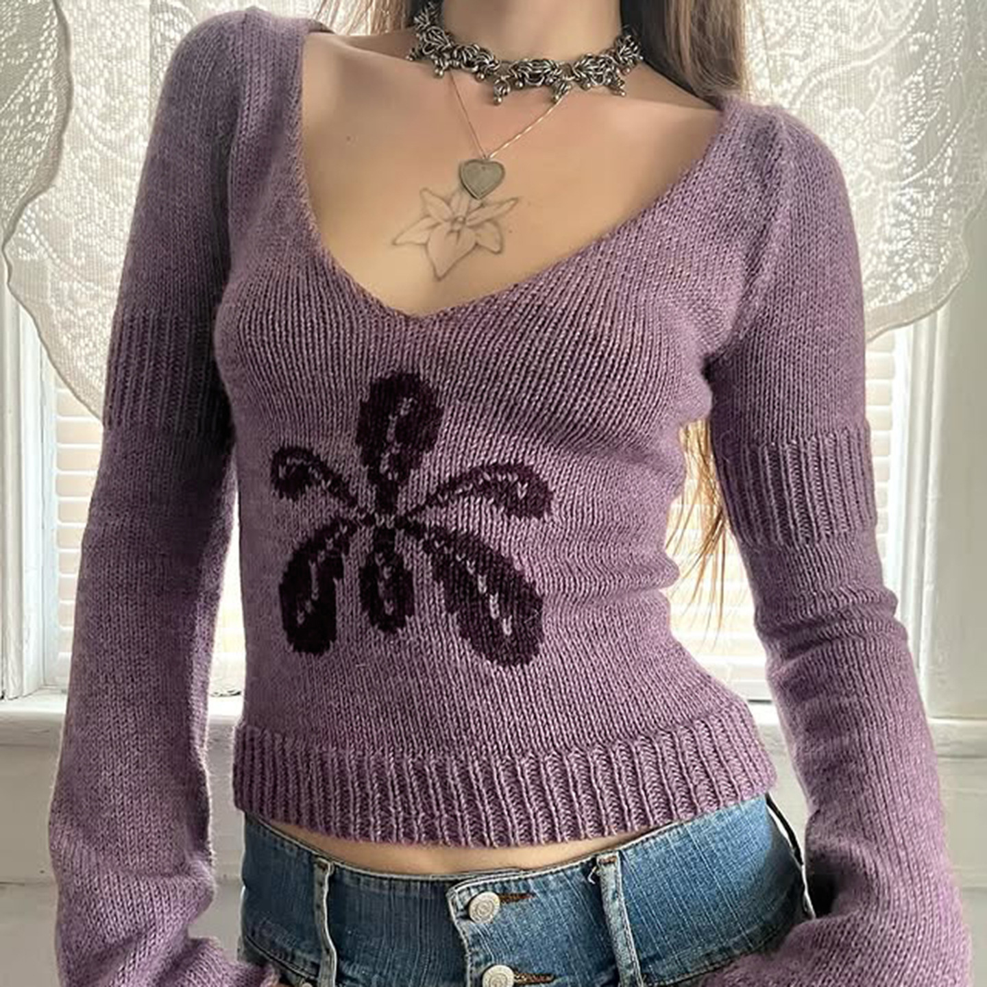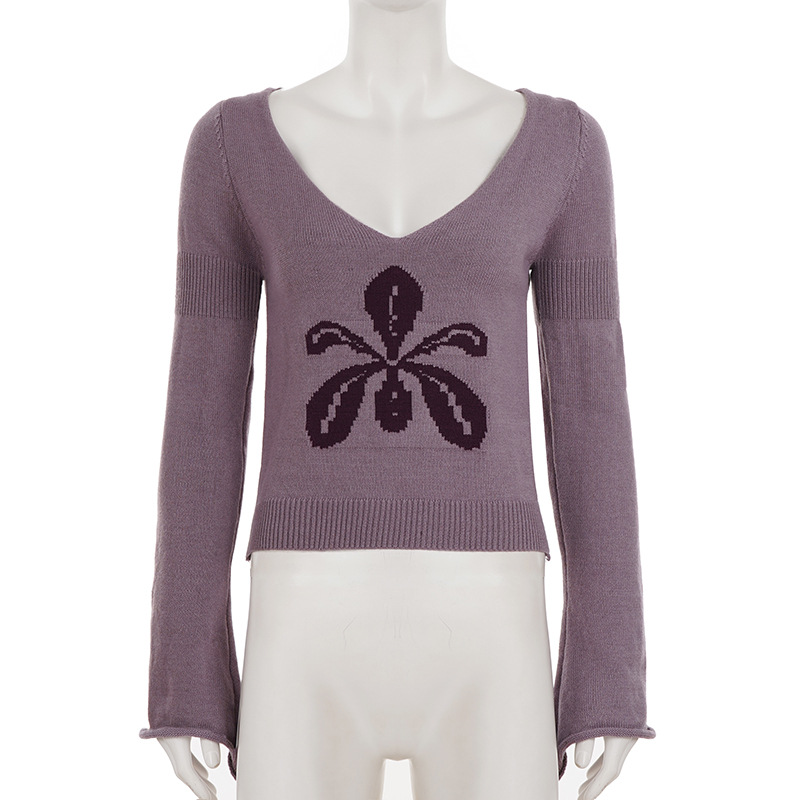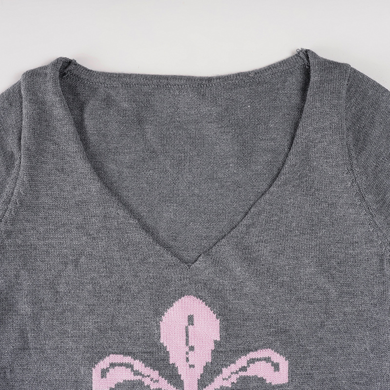European and American foreign trade flower jacquard pattern V-neck sweater retro autumn fashion temperament casual version long-sleeved sweater