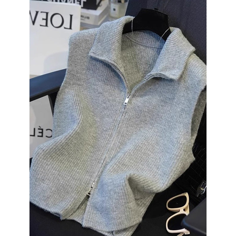 European high-end sense niche double zipper knitted vest autumn new simple casual stacking vest