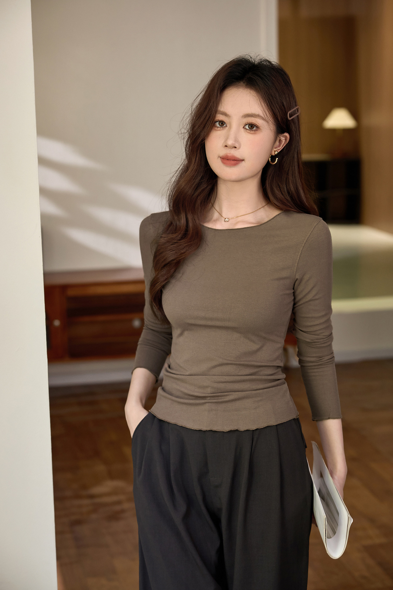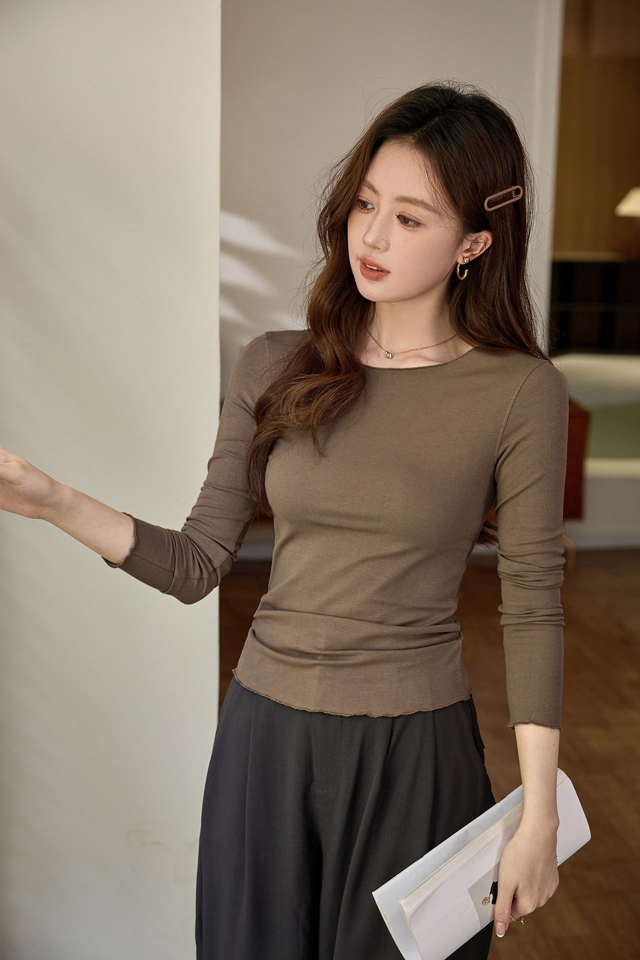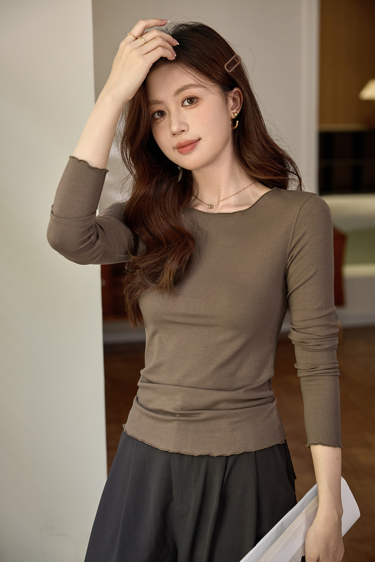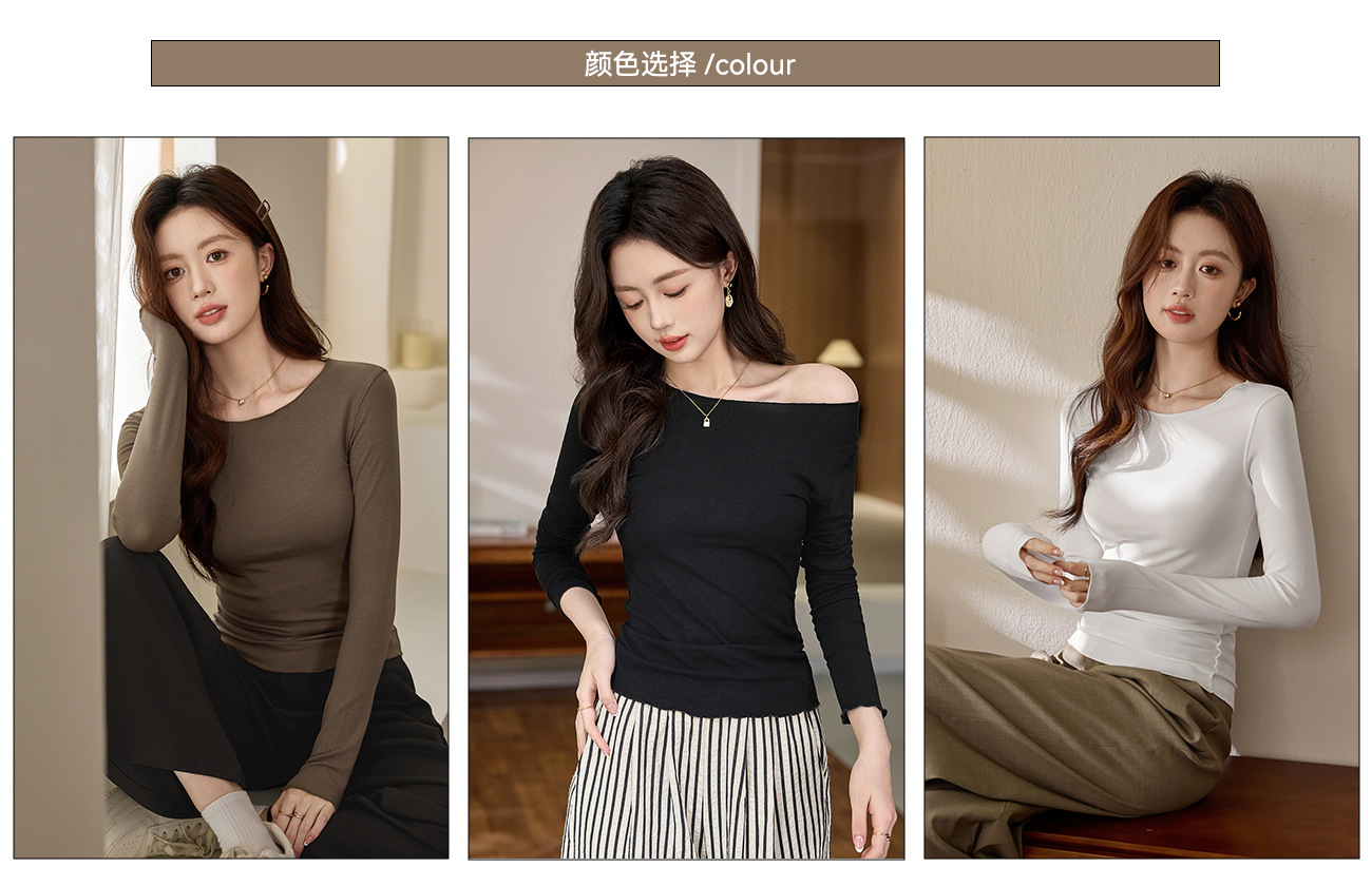 #Excellent choice #Micro-curl edge premium long-sleeved T-shirt women's 2026 autumn new slim-fit inner bottoming shirt top