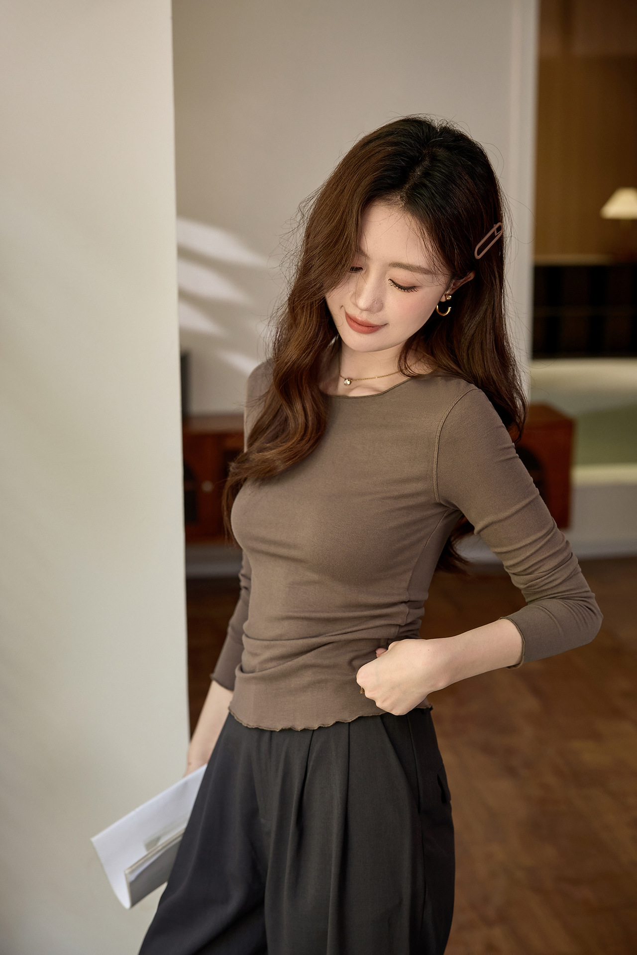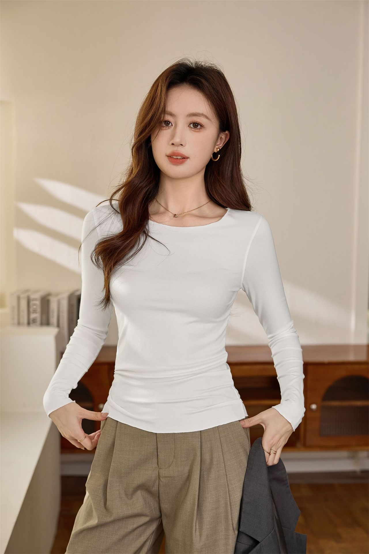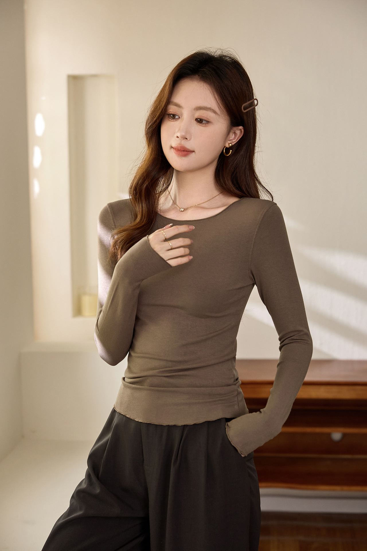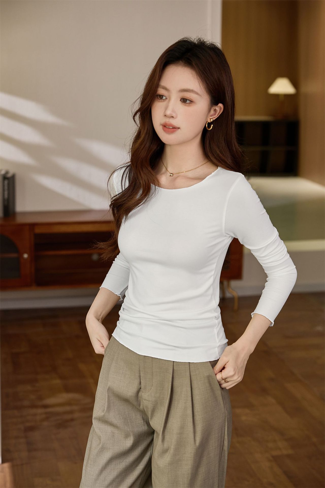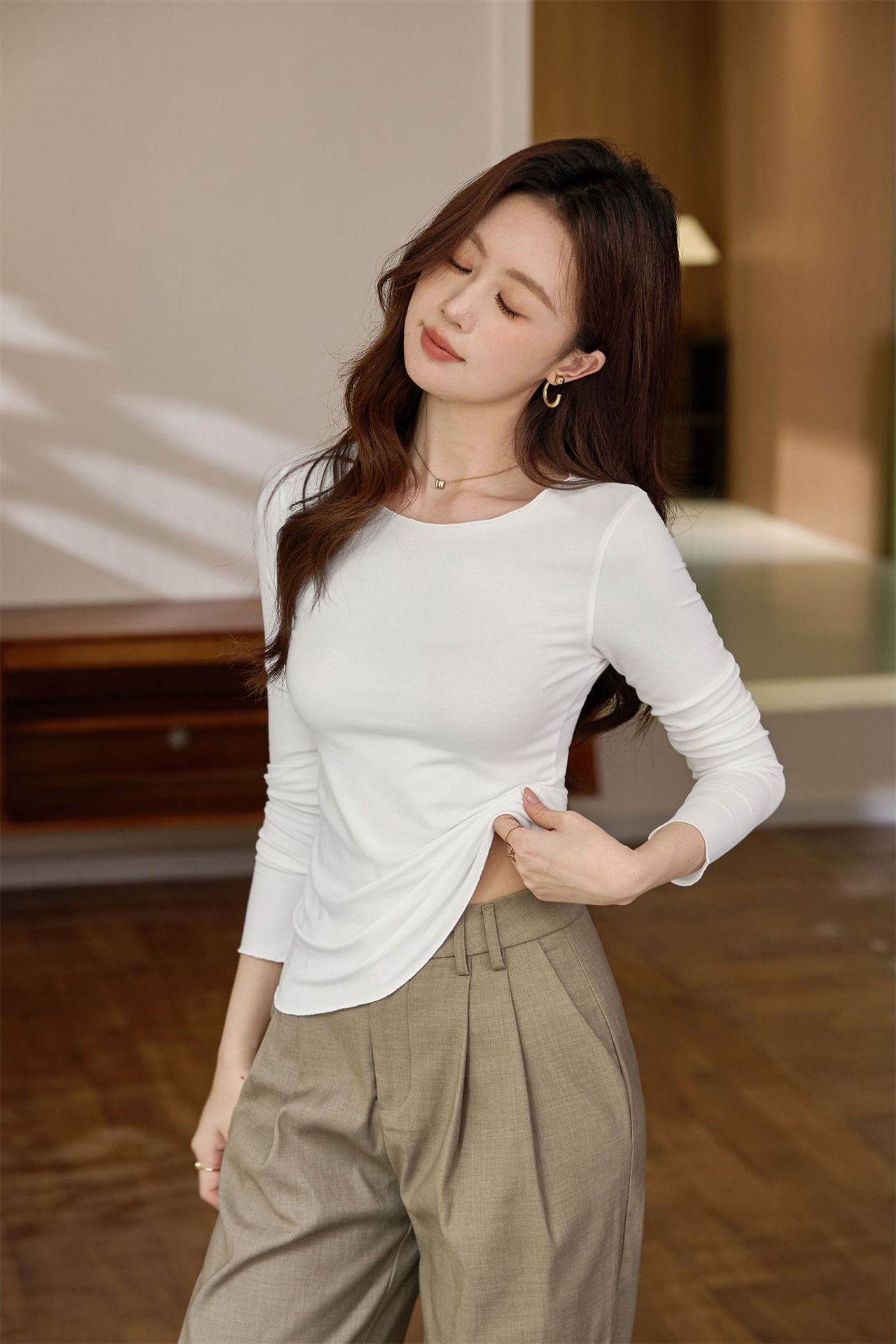 #Excellent choice #Micro-curl edge premium long-sleeved T-shirt women's 2026 autumn new slim-fit inner bottoming shirt top
