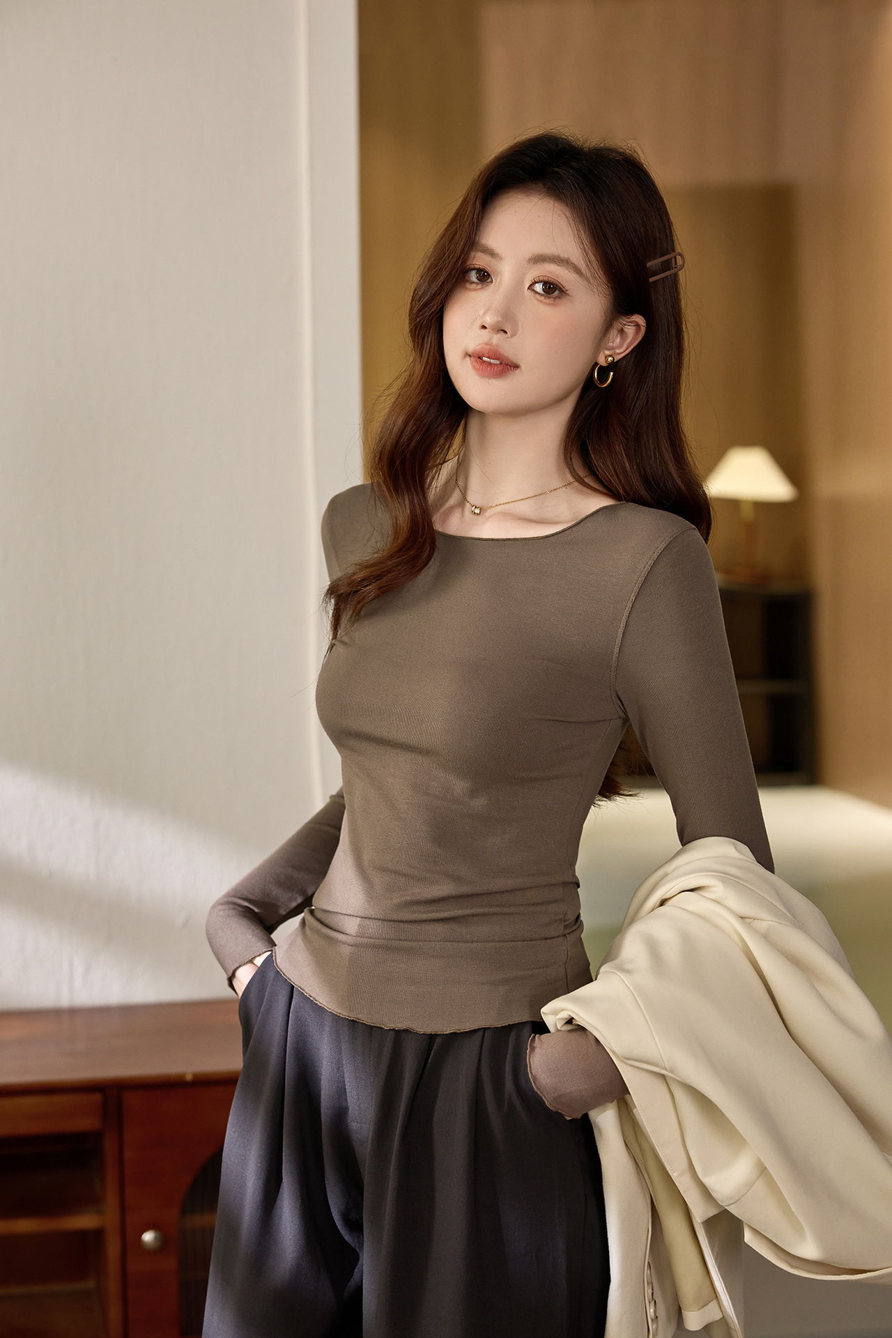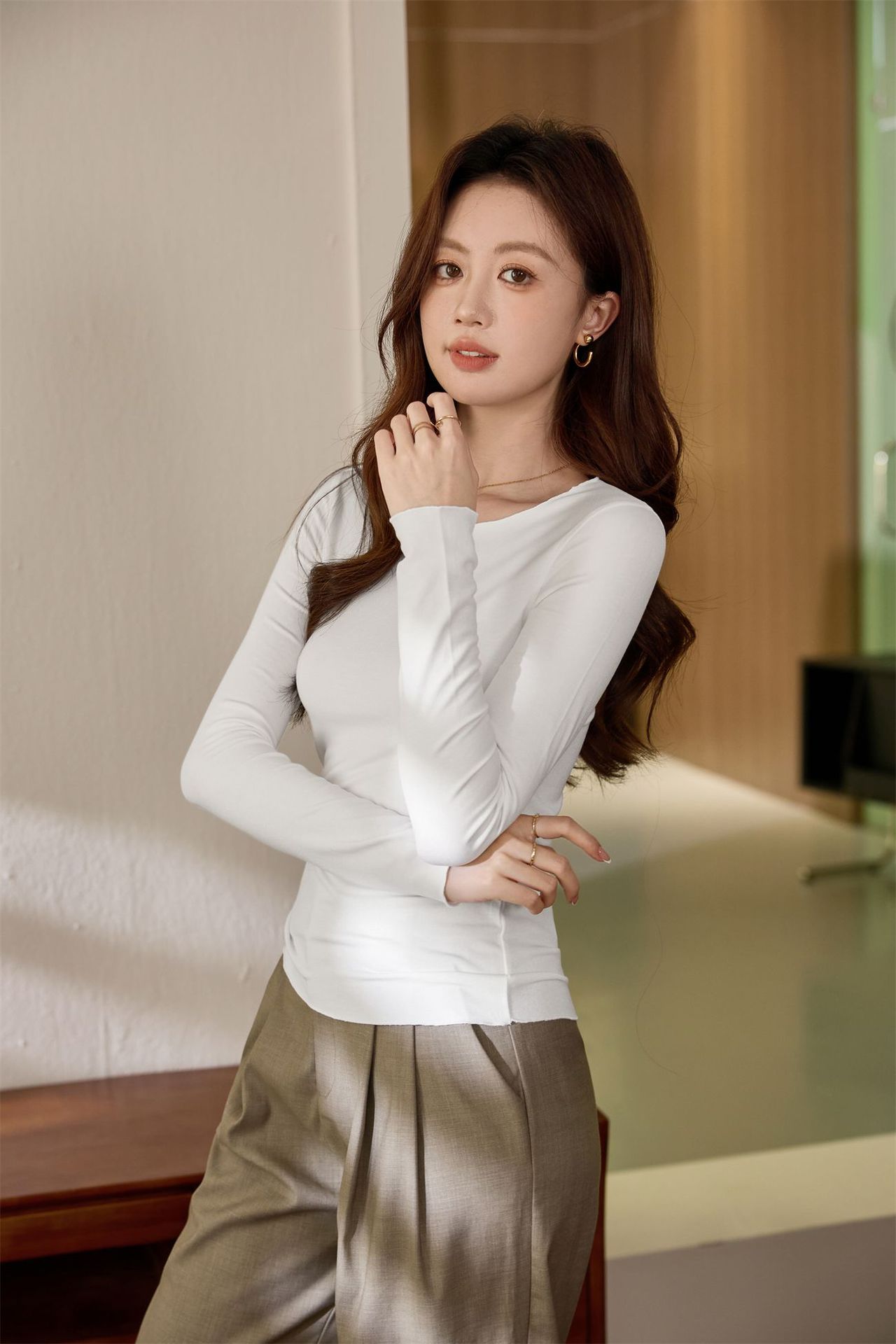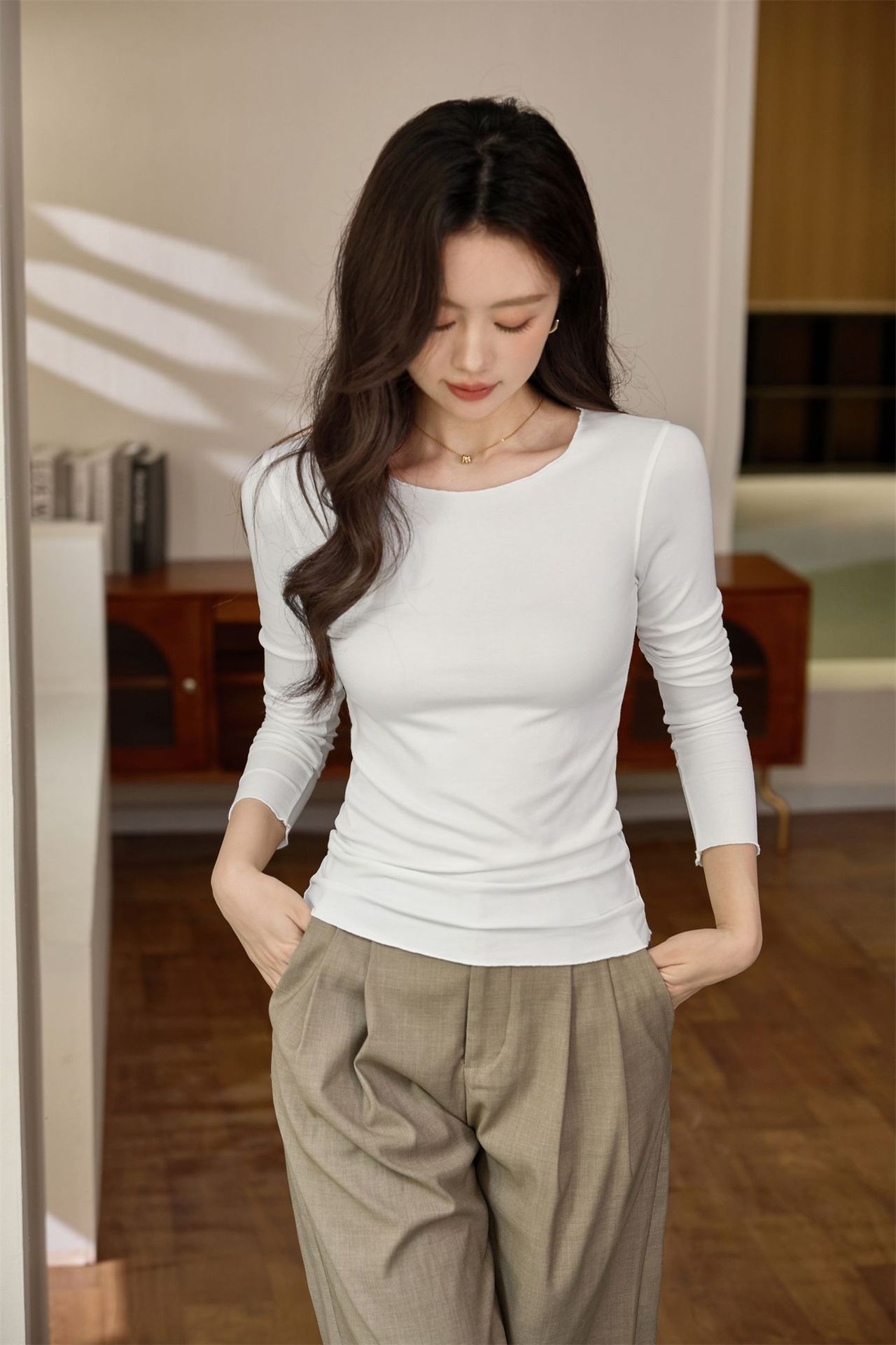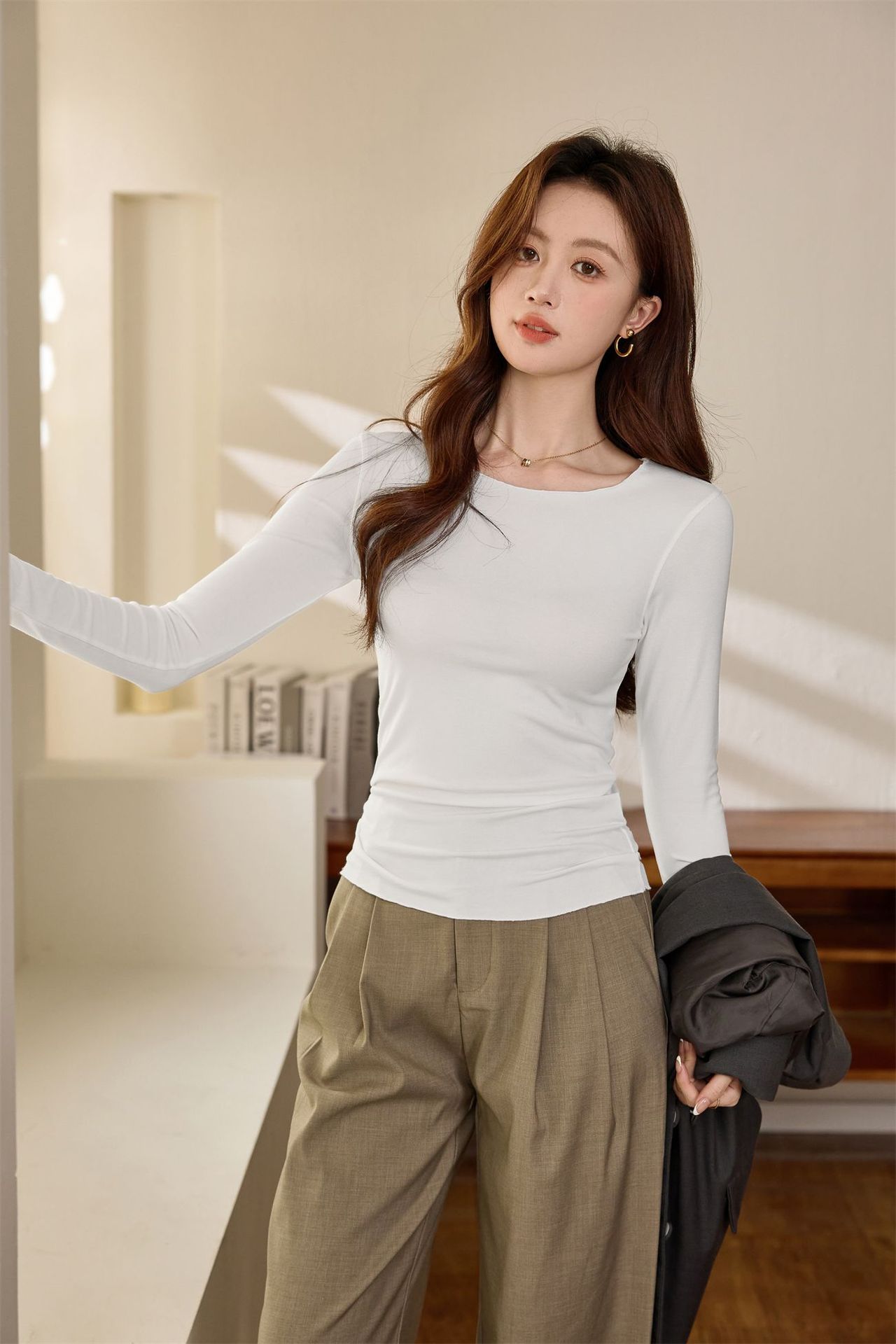 #Excellent choice #Micro-curl edge premium long-sleeved T-shirt women's 2026 autumn new slim-fit inner bottoming shirt top