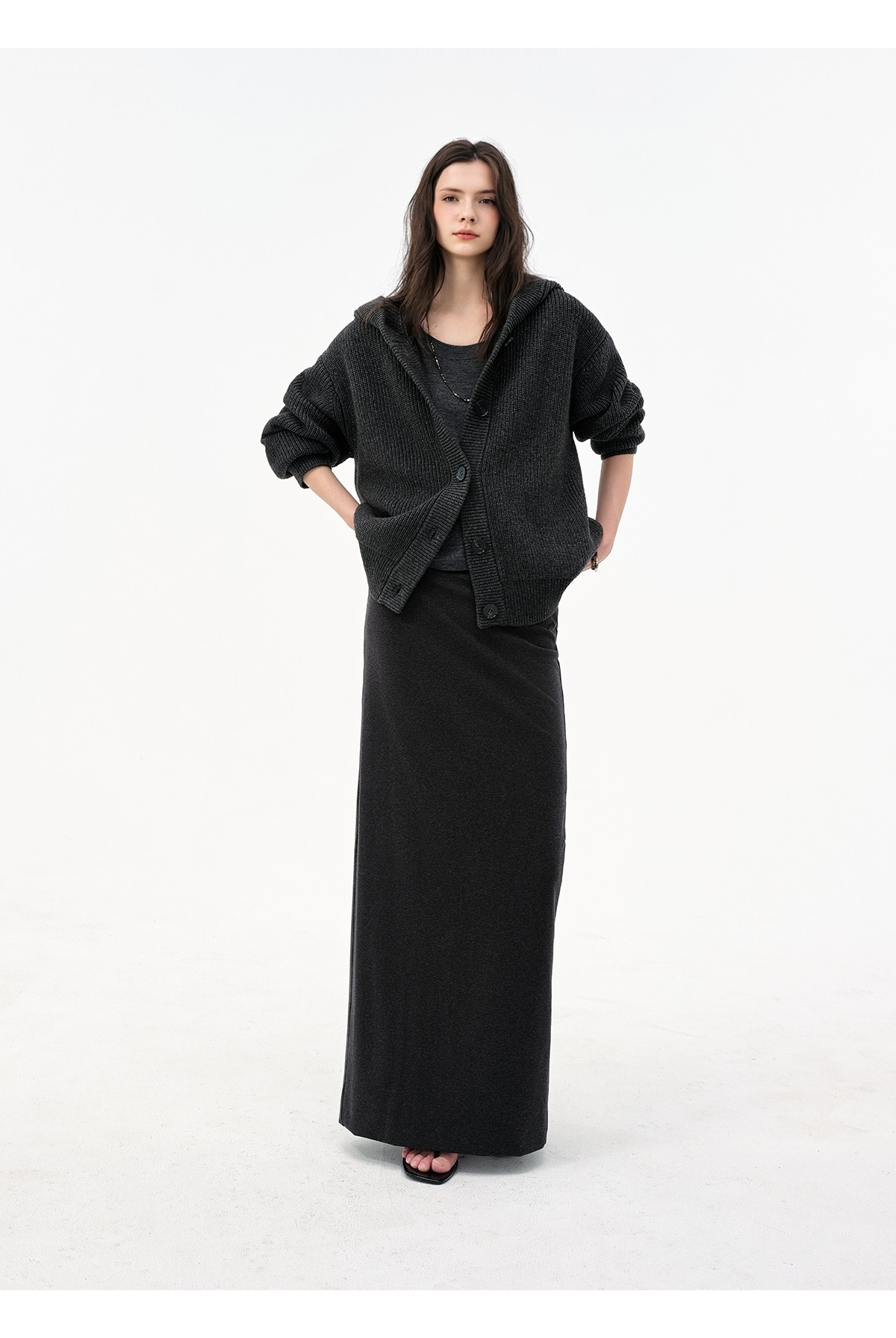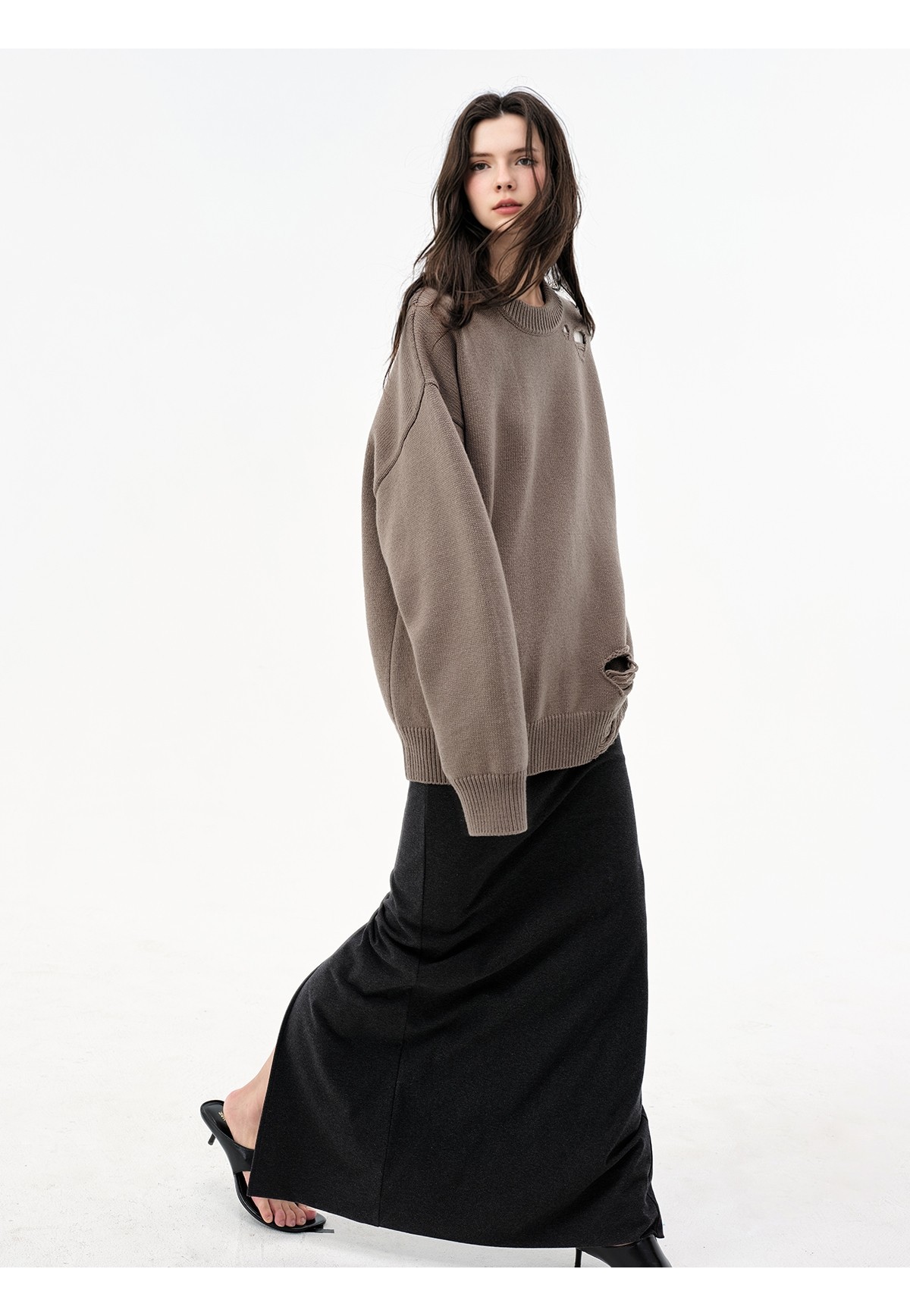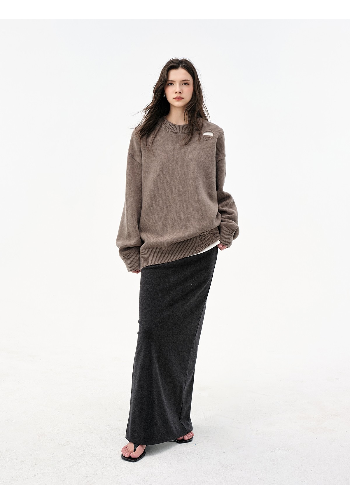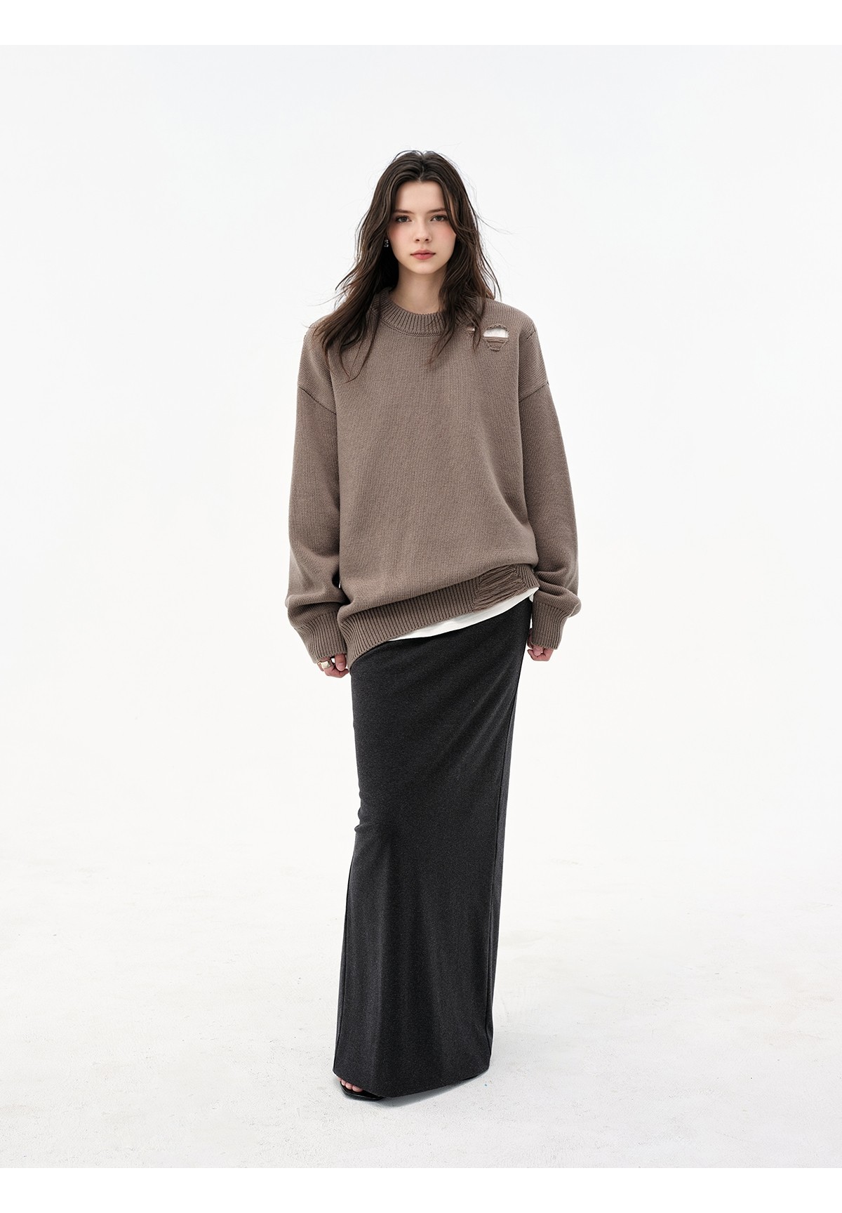 Extremely comfortable knitted wool-blend long skirt elastic high waist rear split harpoon tail skirt drop skirt