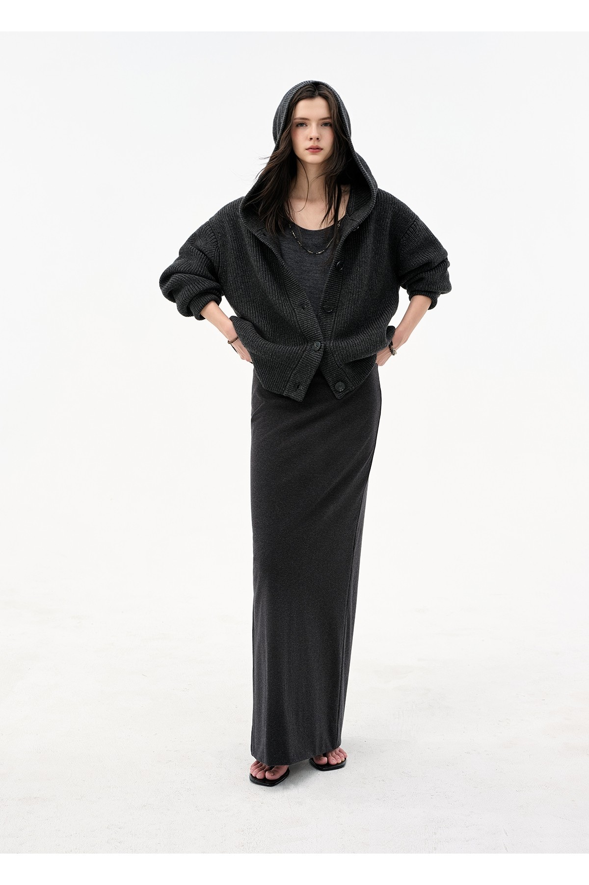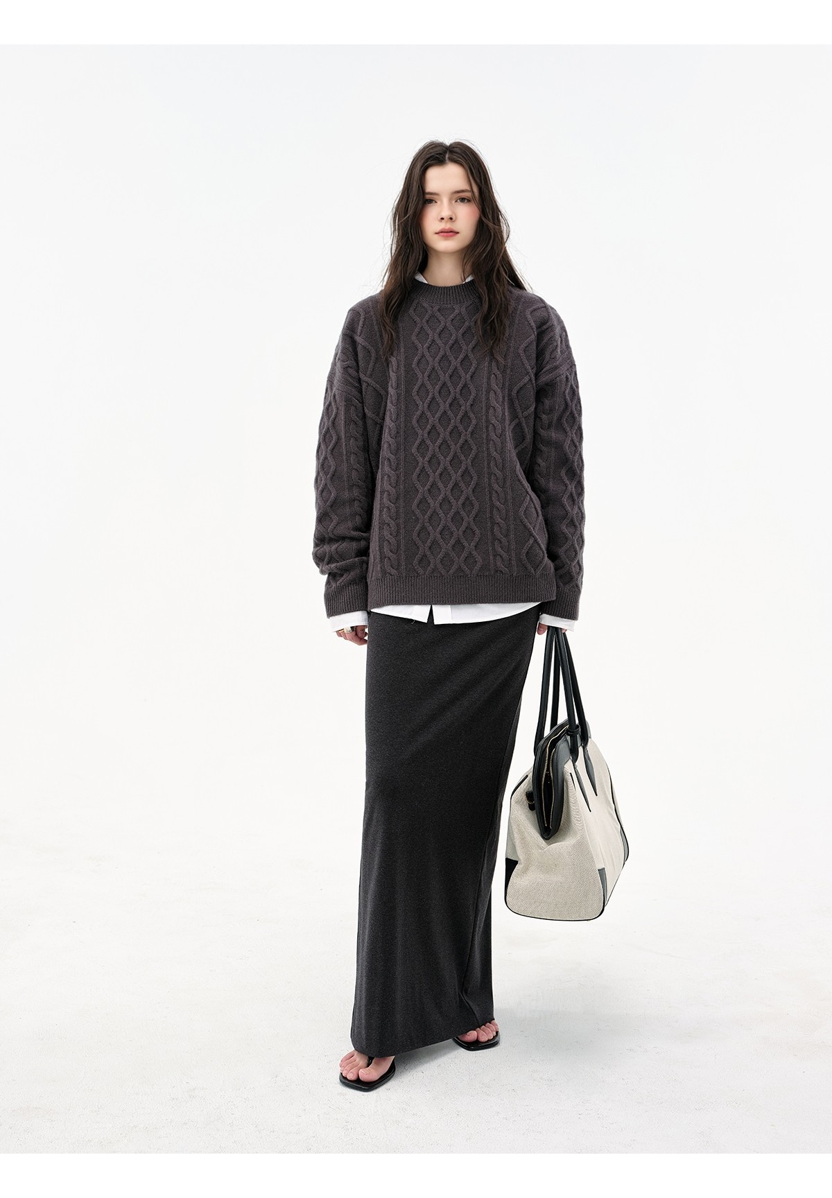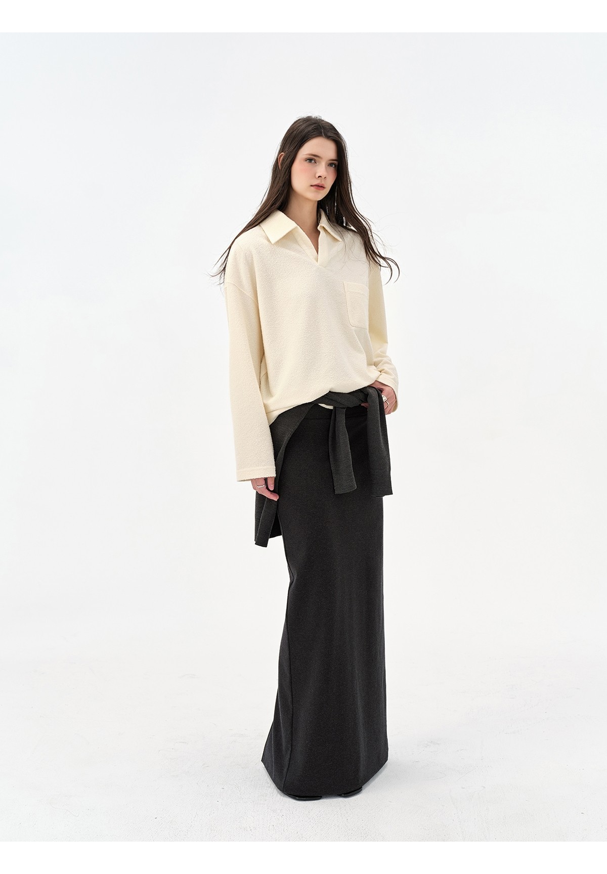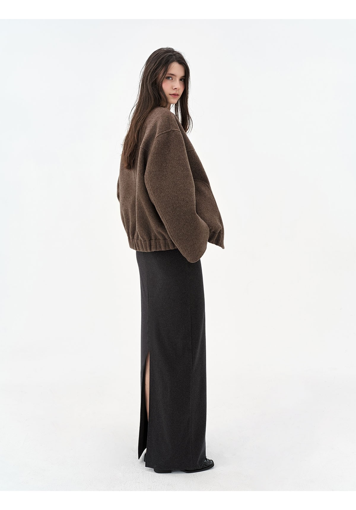 Extremely comfortable knitted wool-blend long skirt elastic high waist rear split harpoon tail skirt drop skirt