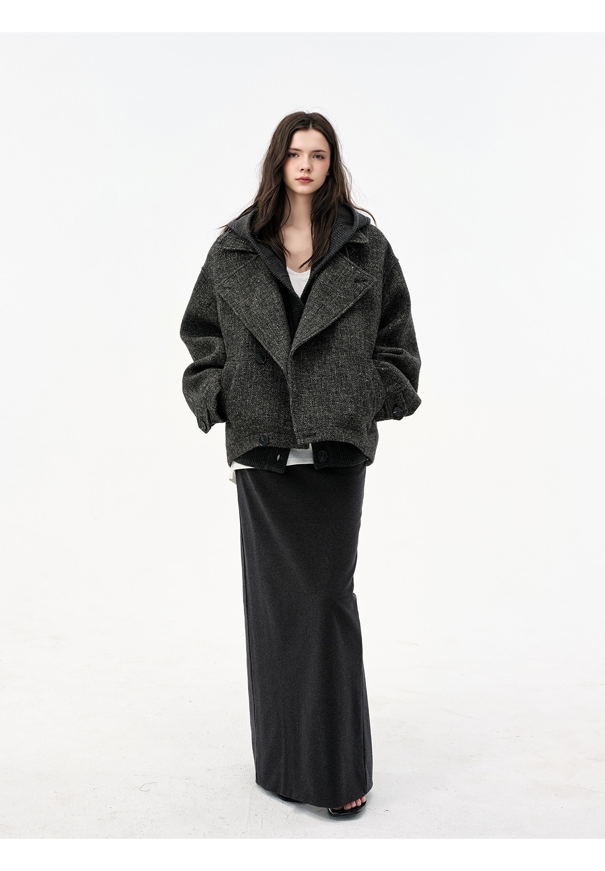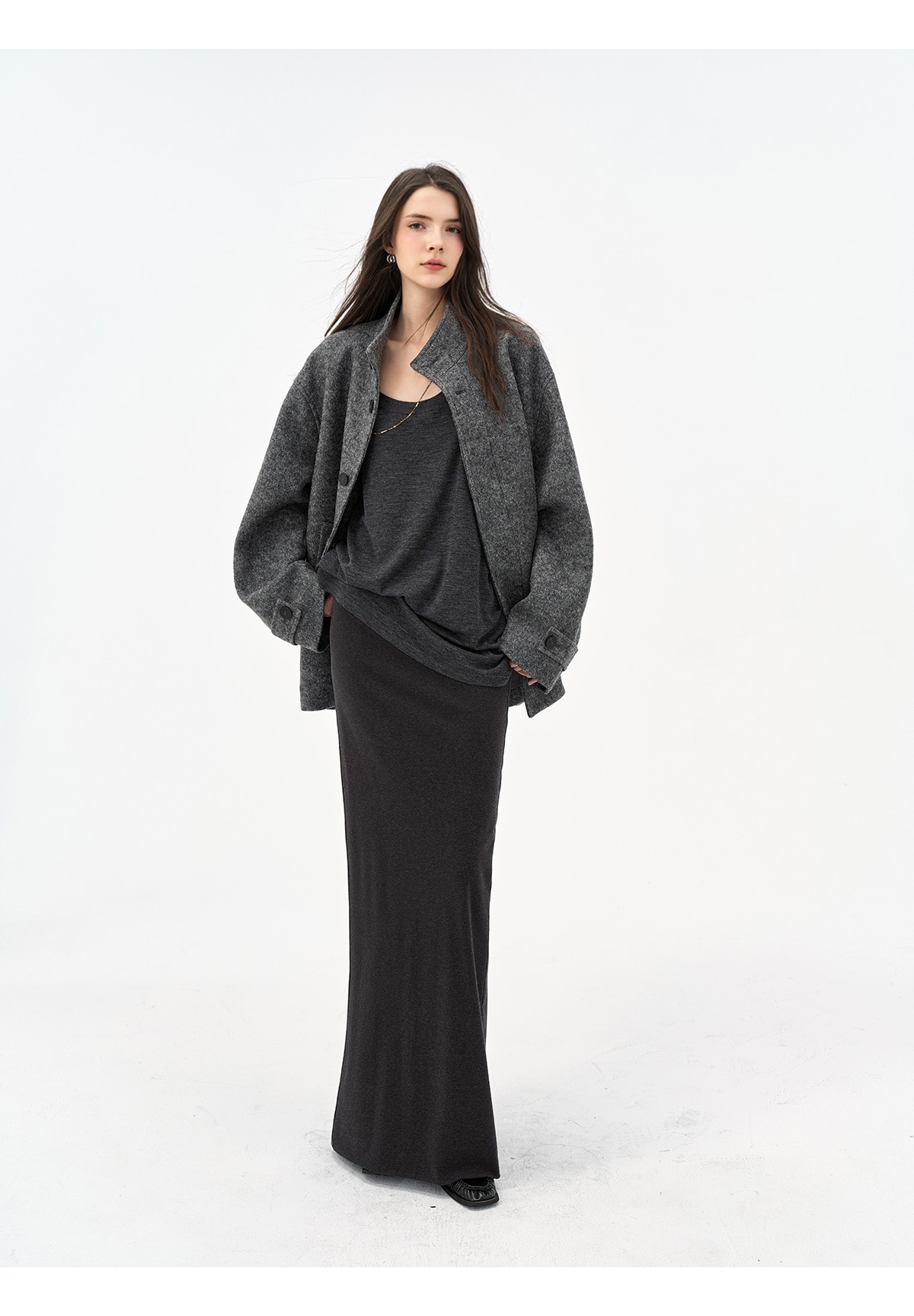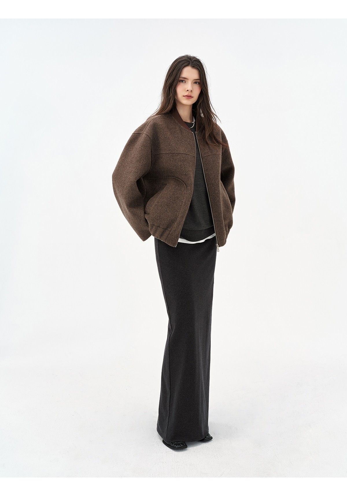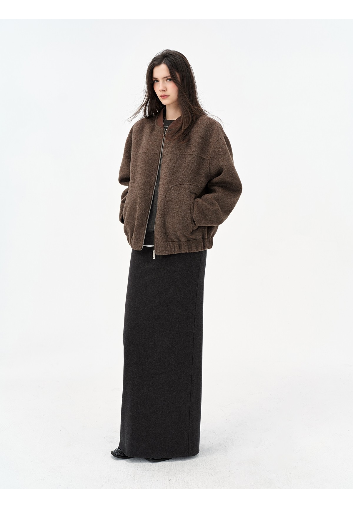 Extremely comfortable knitted wool-blend long skirt elastic high waist rear split harpoon tail skirt drop skirt
