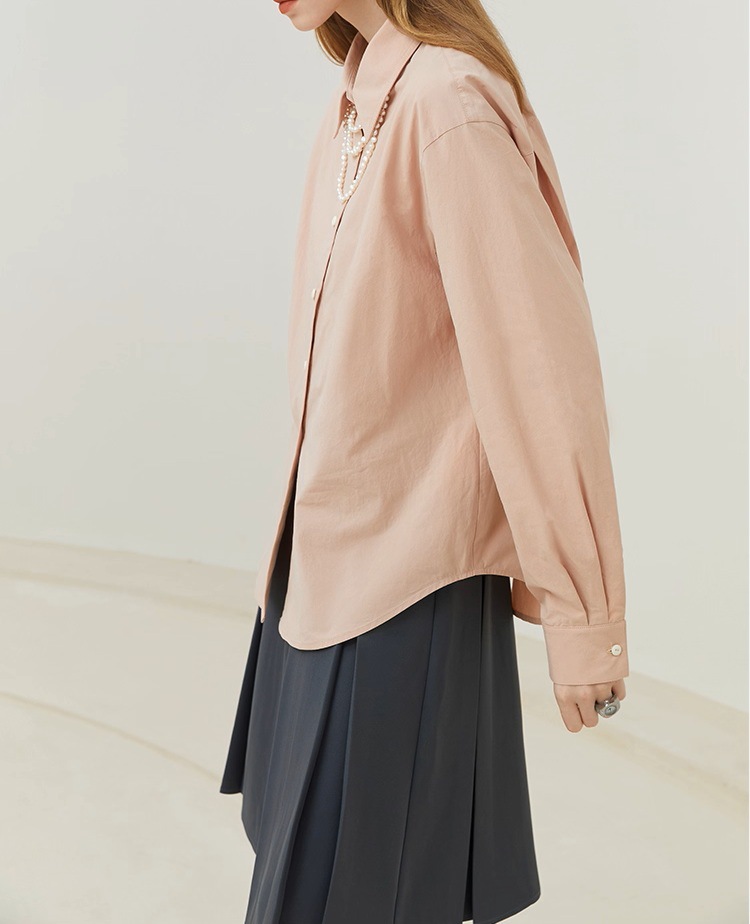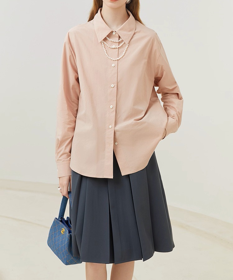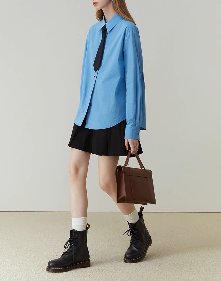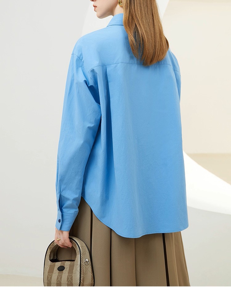 Fanslan Blue Temperament Cotton Long Sleeve Shirt Women's Spring and Autumn French Loose Casual Commuter Top 11190
