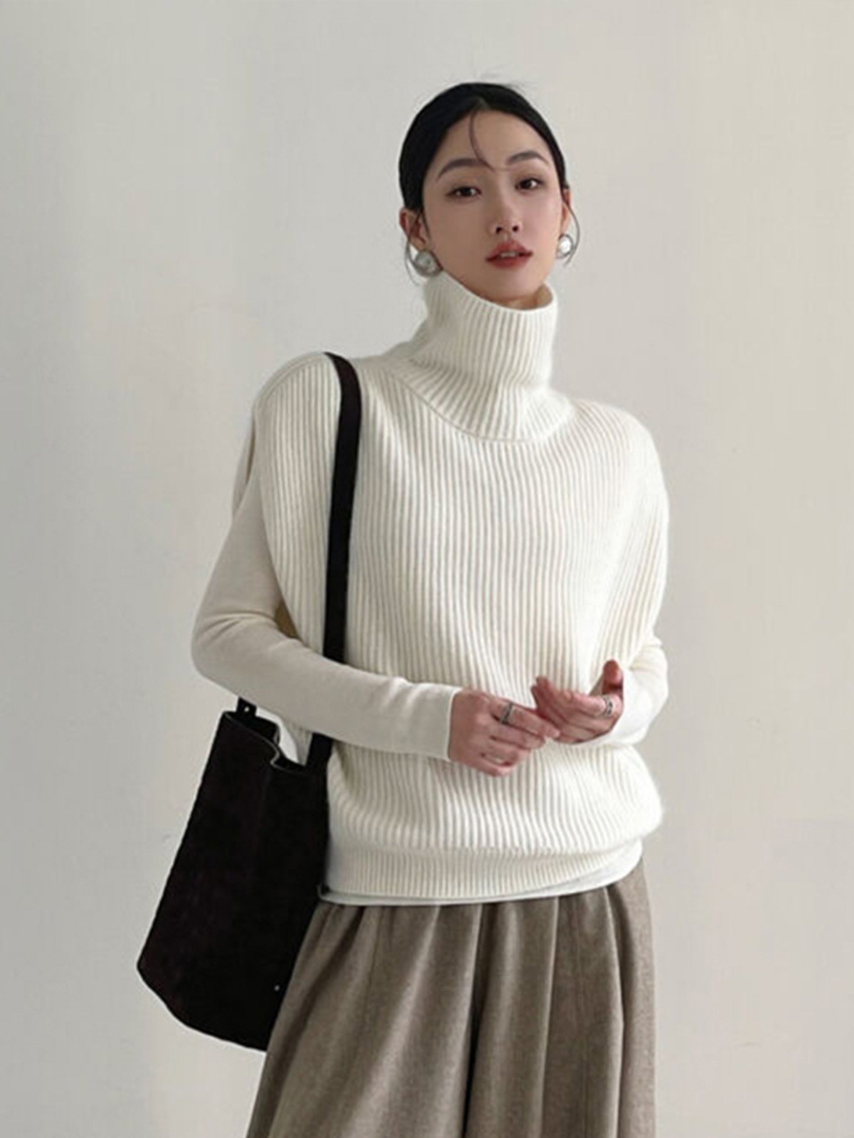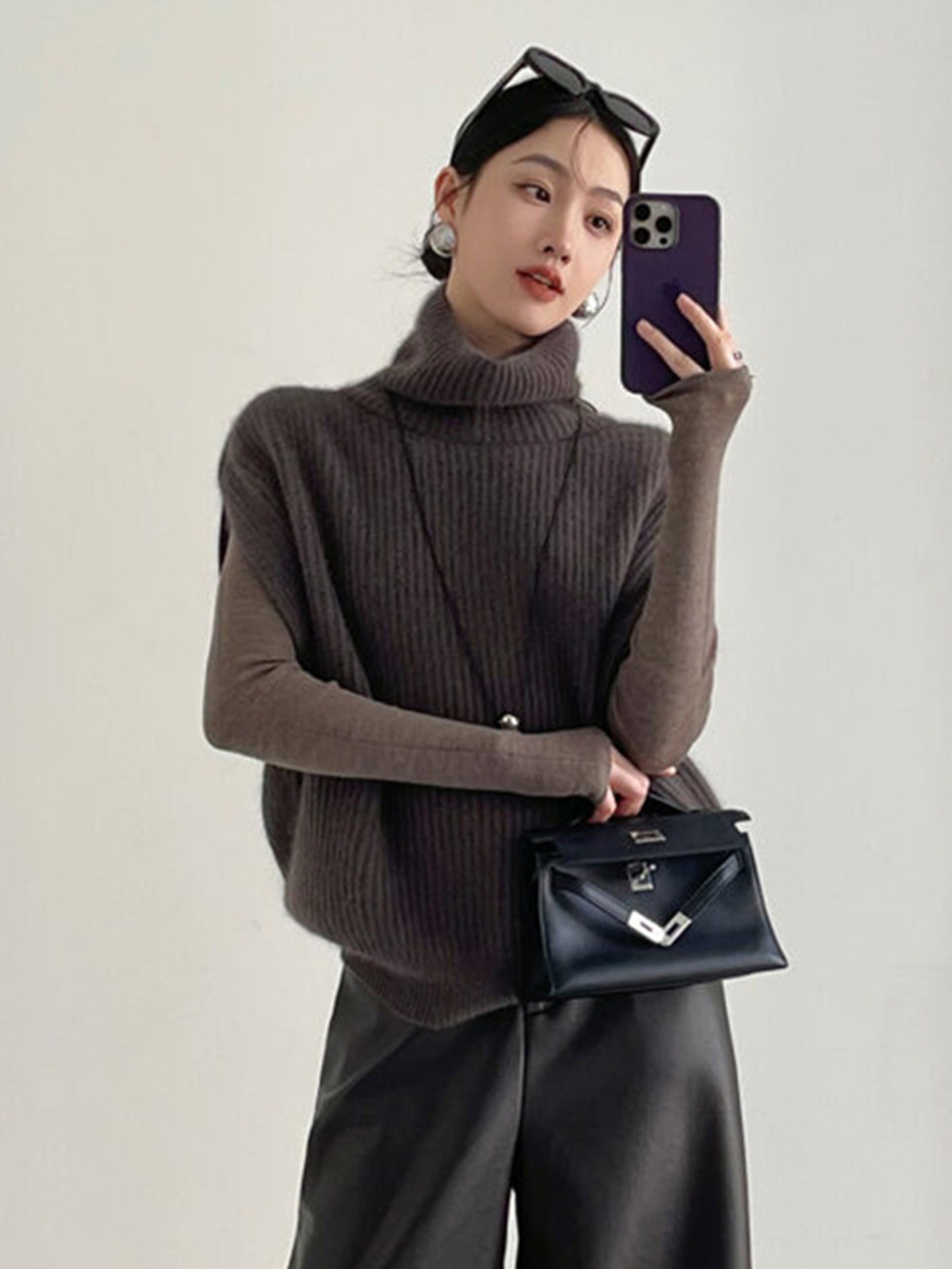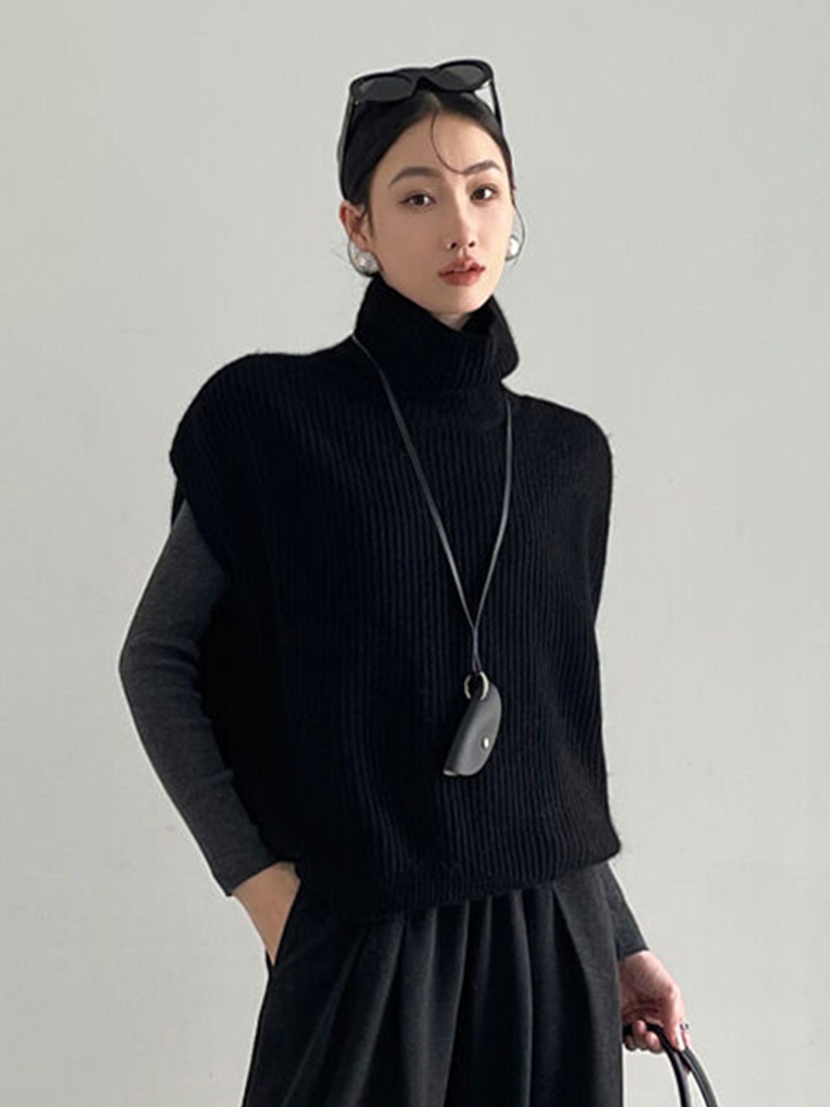 Fashionable foreign style turtleneck sleeveless knitted vest women's autumn and winter loose lazy wind stacked sweater top