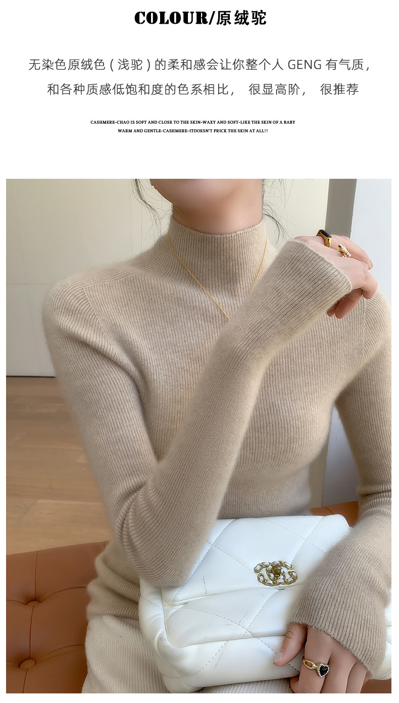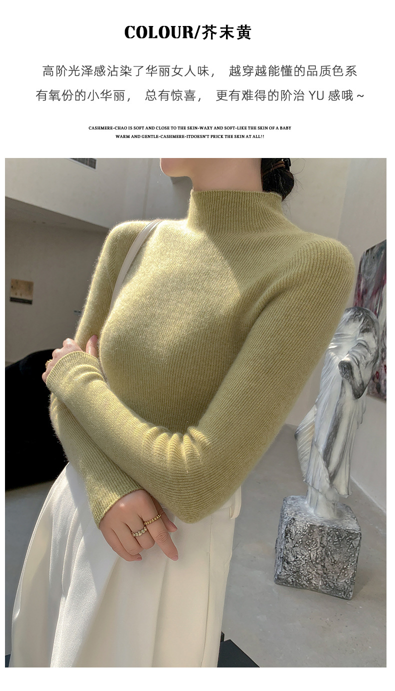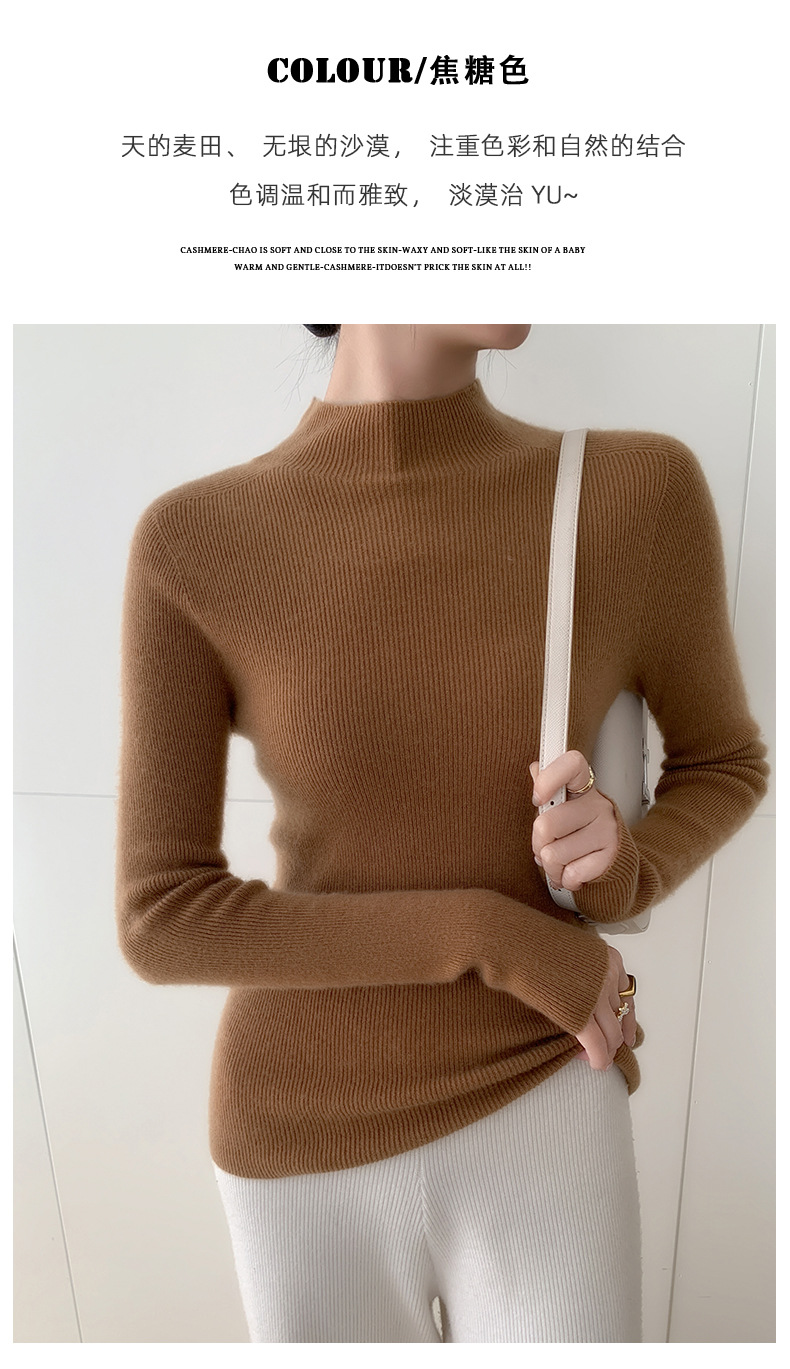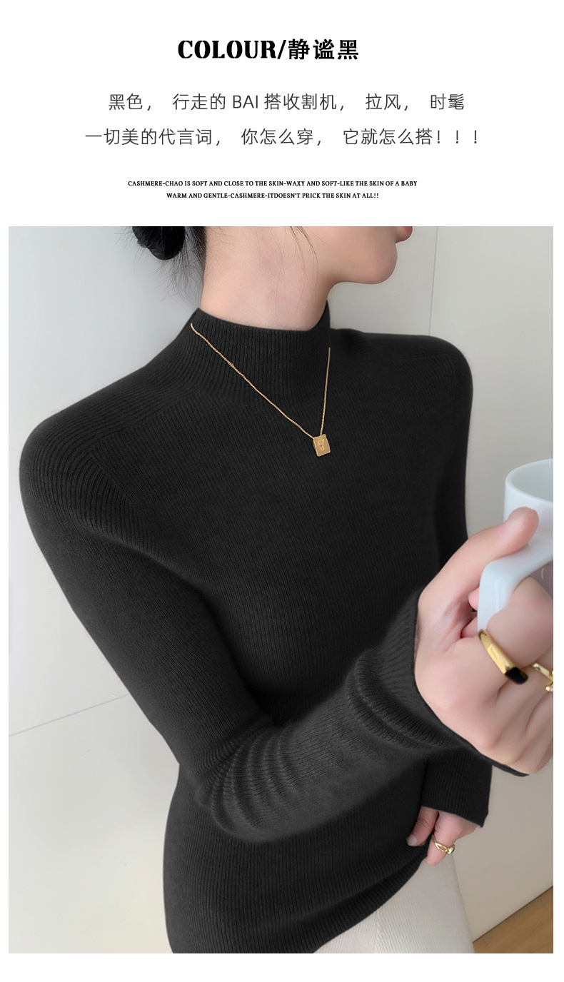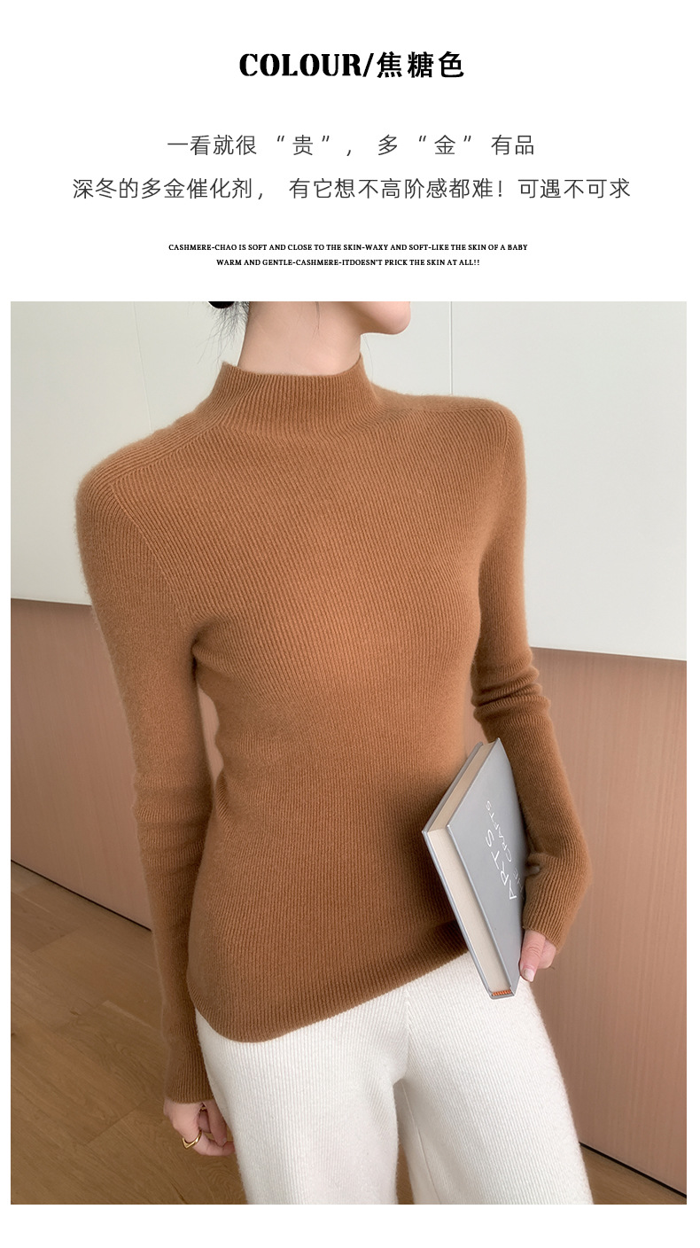 First-line ready-to-wear~ seamless semi-turtleneck cashmere sweater for women's autumn and winter slim-fitting and thin knitted wool bottoming sweater