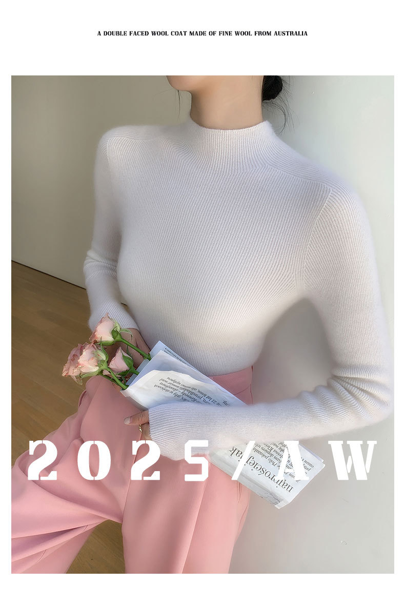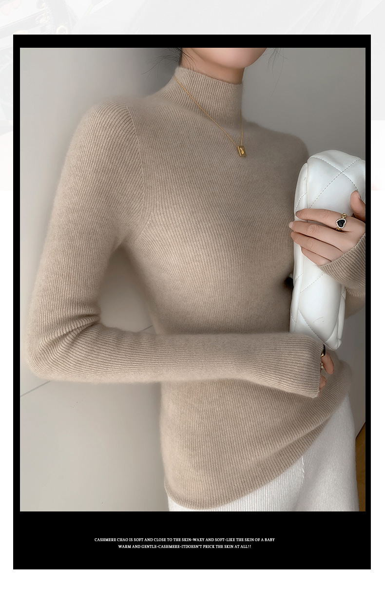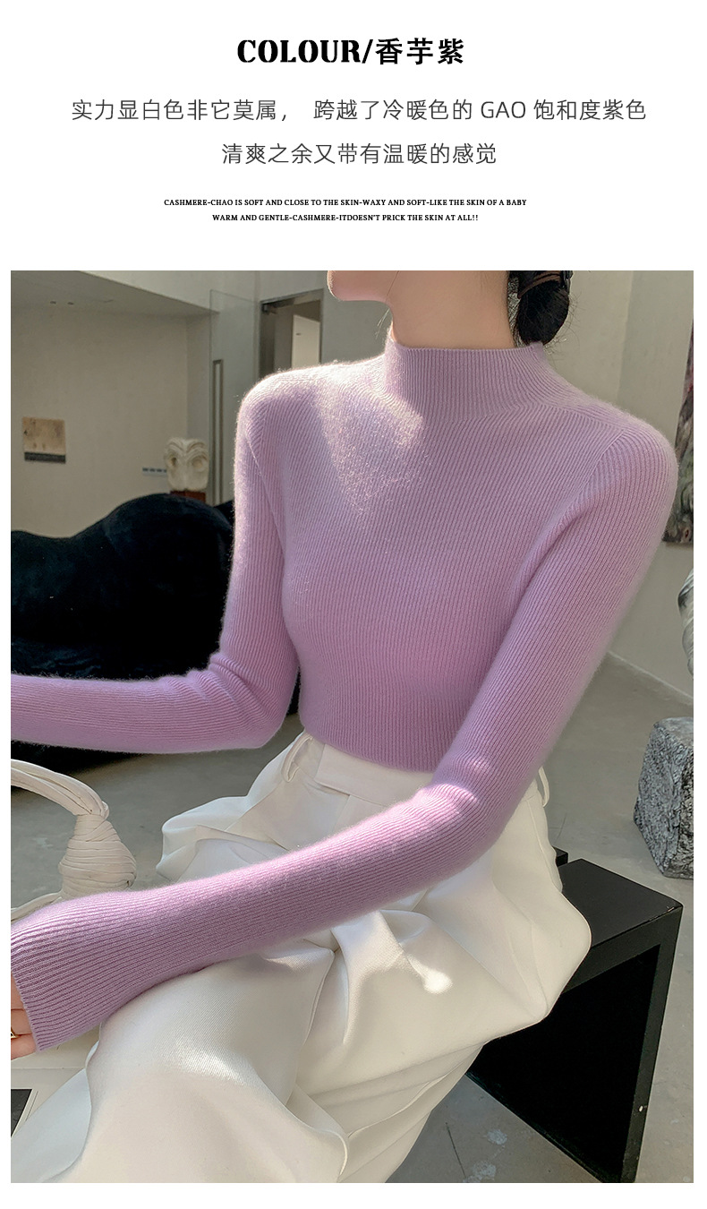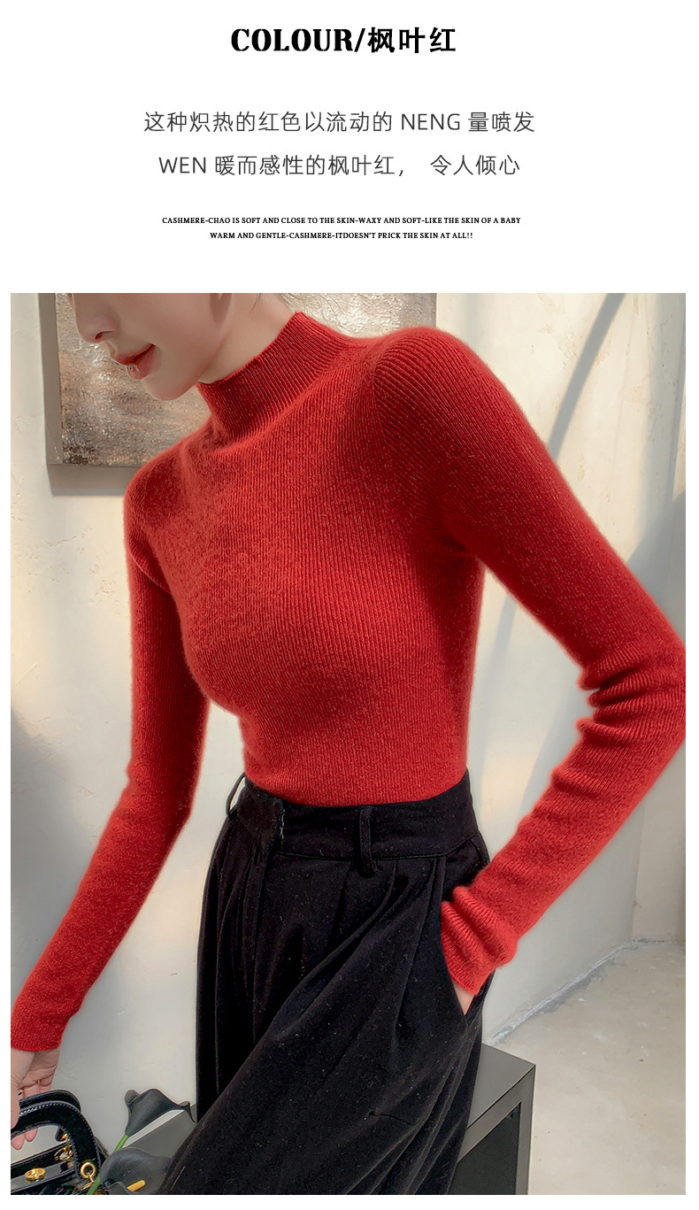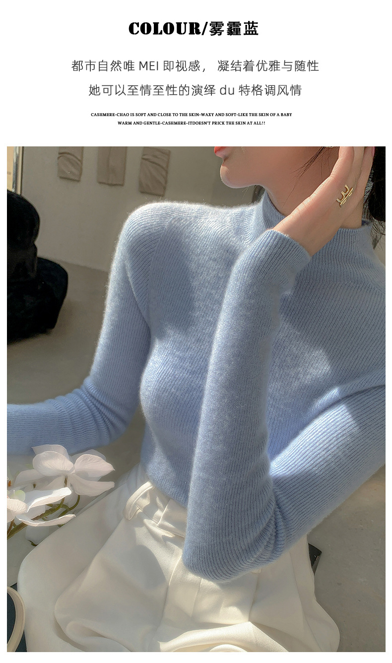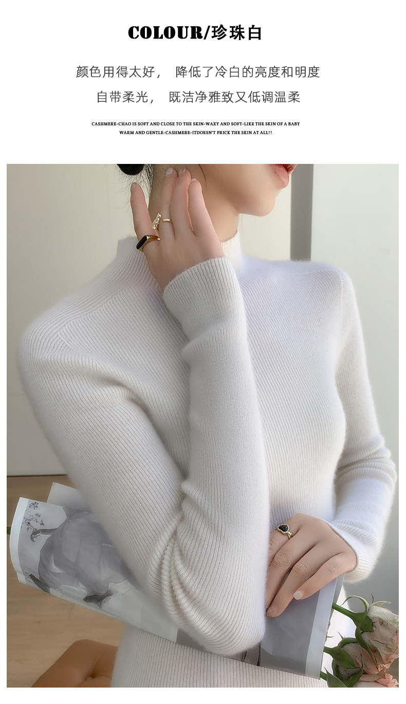 First-line ready-to-wear~ seamless semi-turtleneck cashmere sweater for women's autumn and winter slim-fitting and thin knitted wool bottoming sweater