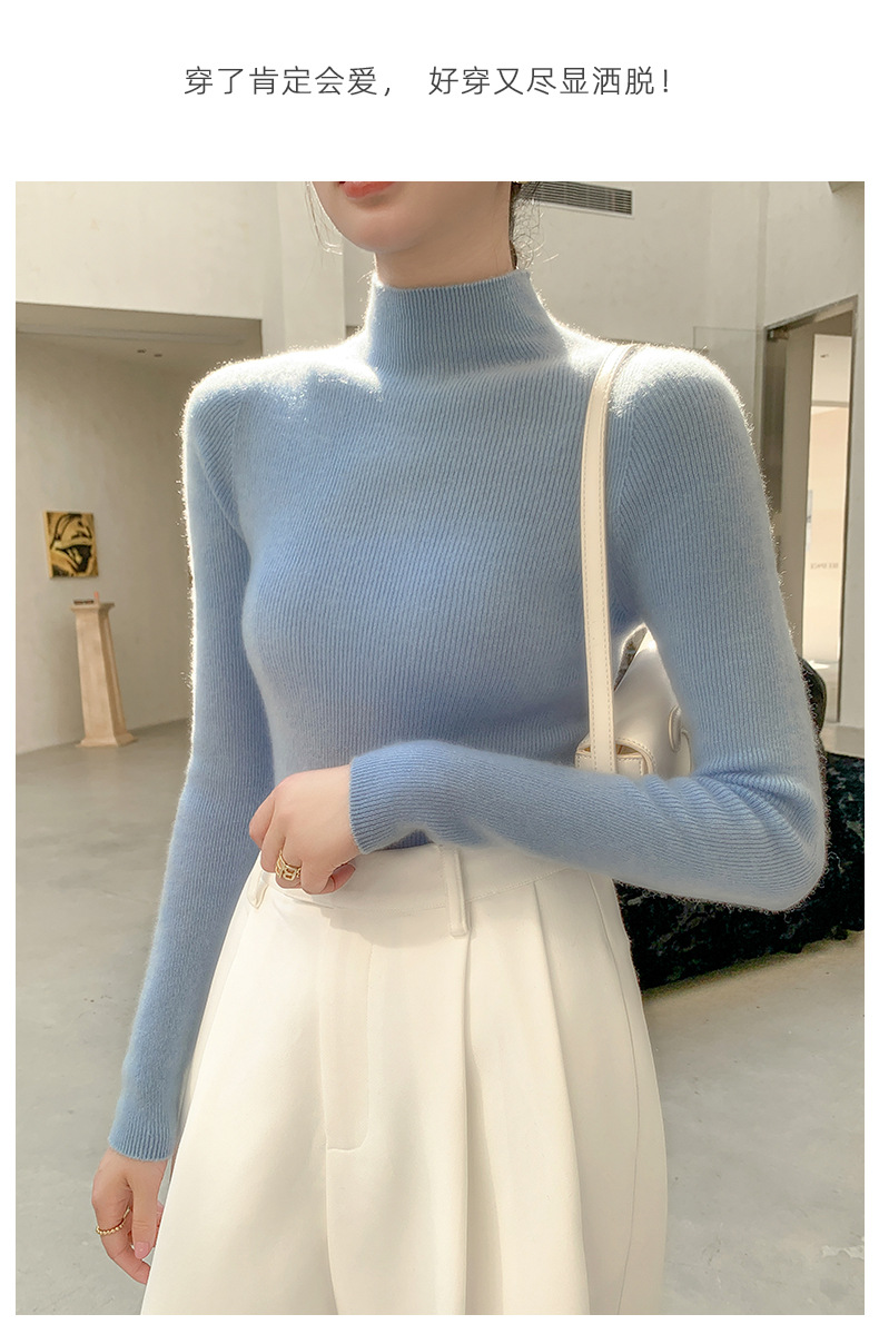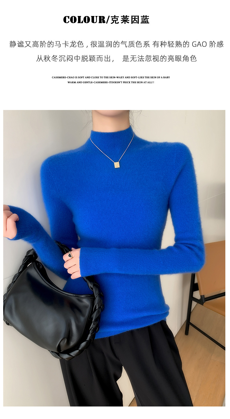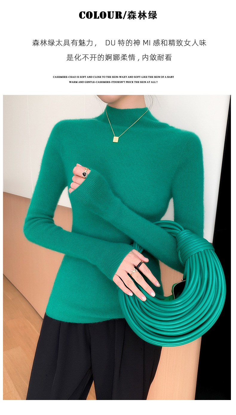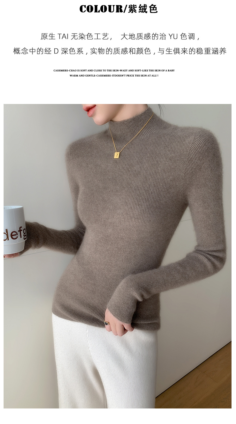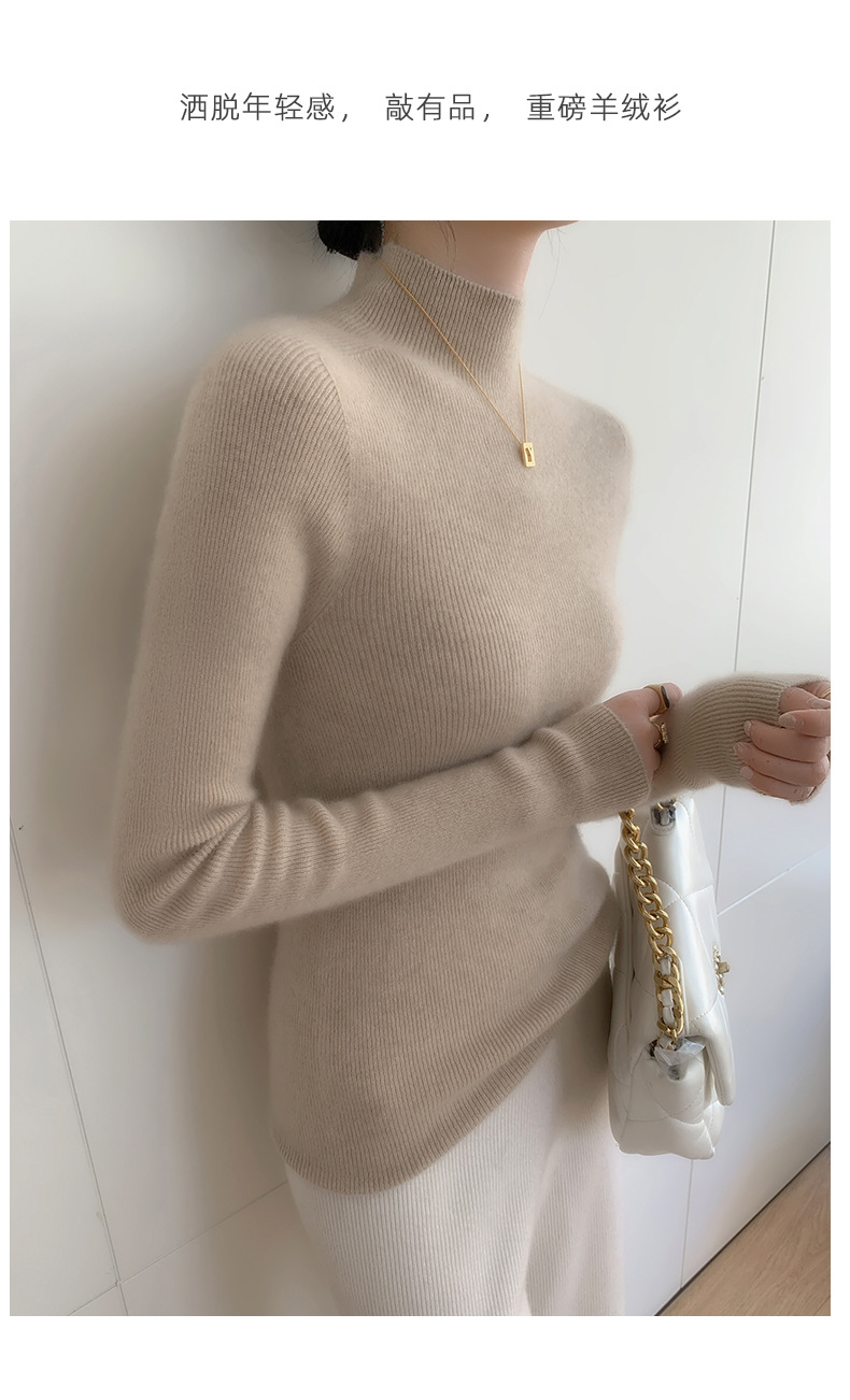 First-line ready-to-wear~ seamless semi-turtleneck cashmere sweater for women's autumn and winter slim-fitting and thin knitted wool bottoming sweater