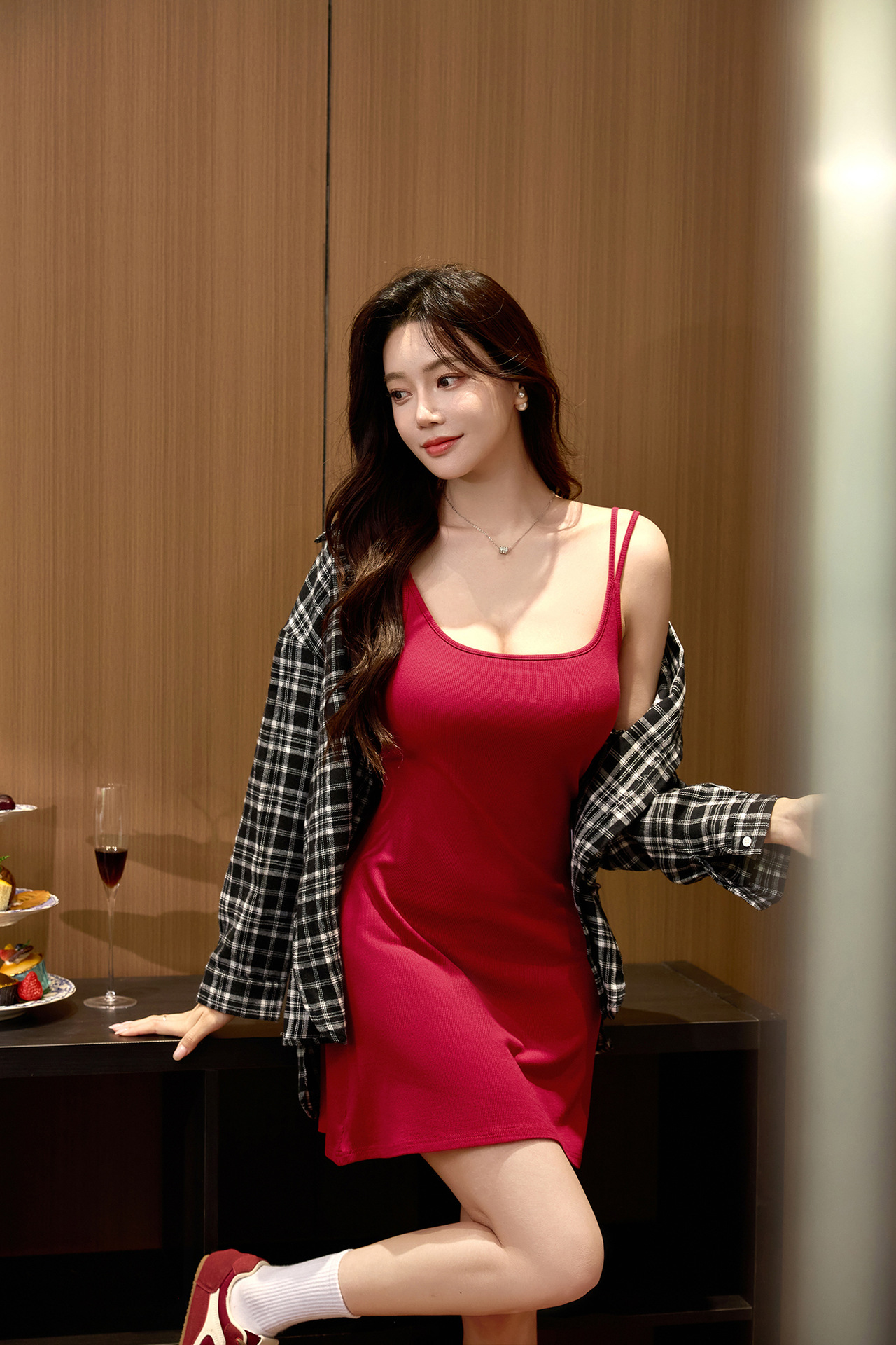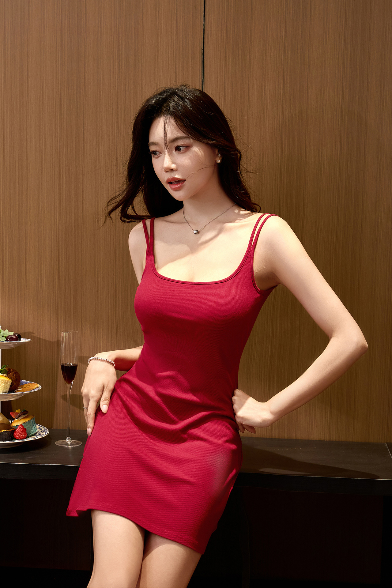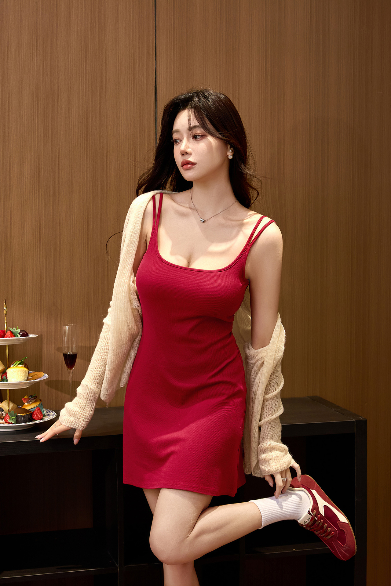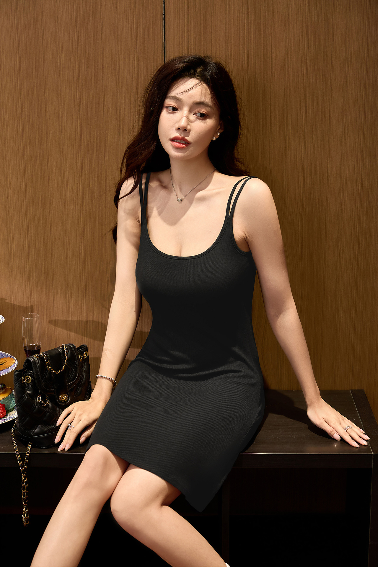 Fixed one-piece bra pad suspender dress women's summer temperament new waist slim sexy Spice girl short skirt