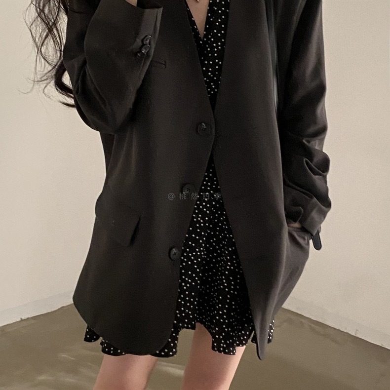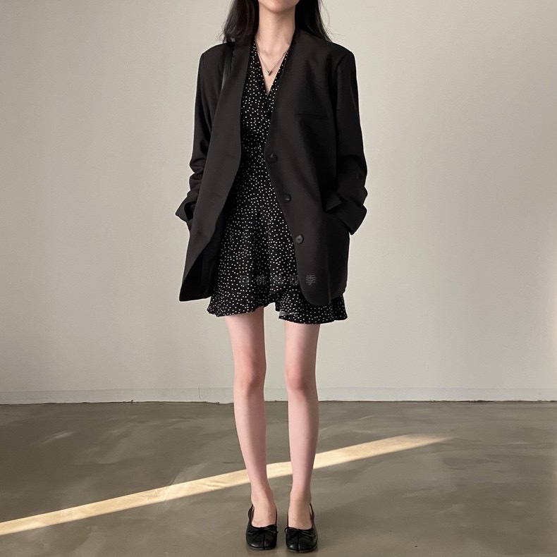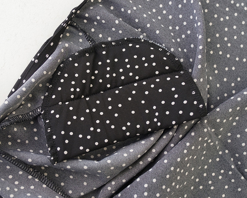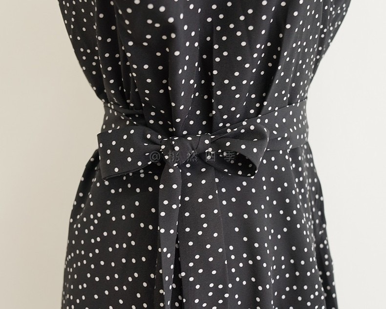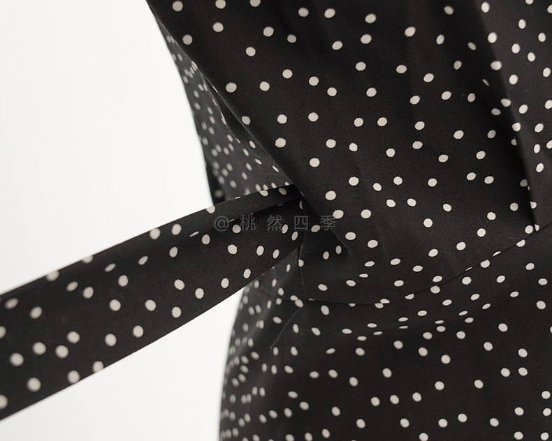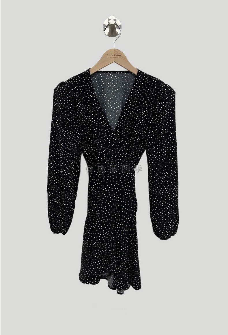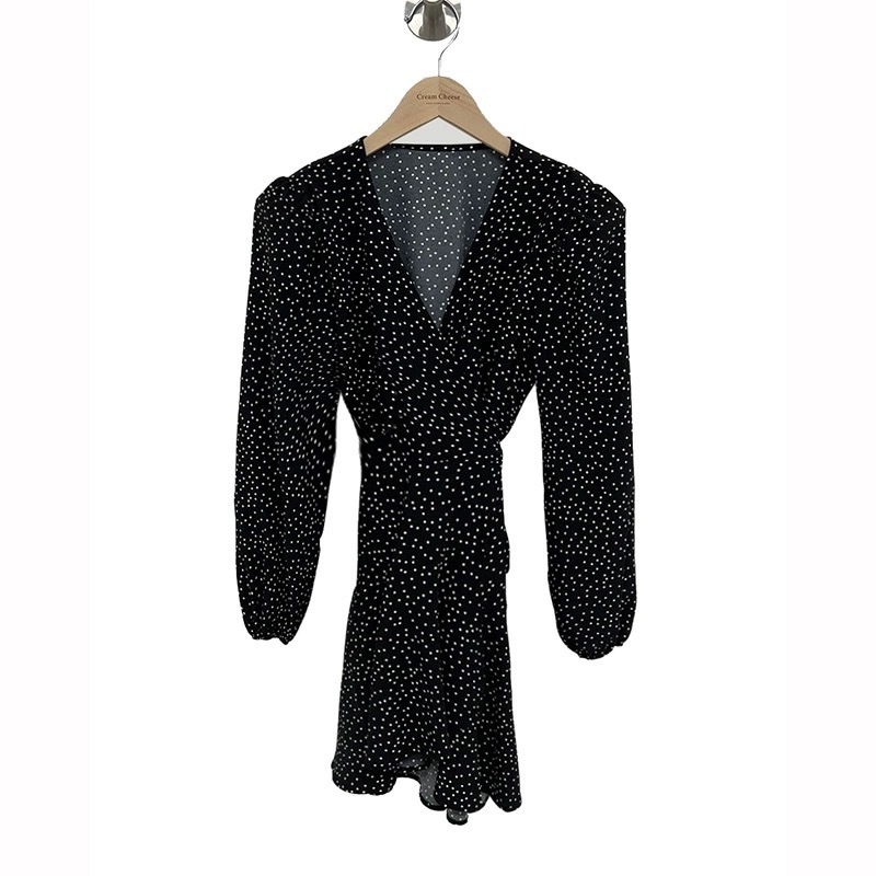 French polka dot V-neck long-sleeved dress, women's one-piece belt, spring and autumn suit, small short skirt