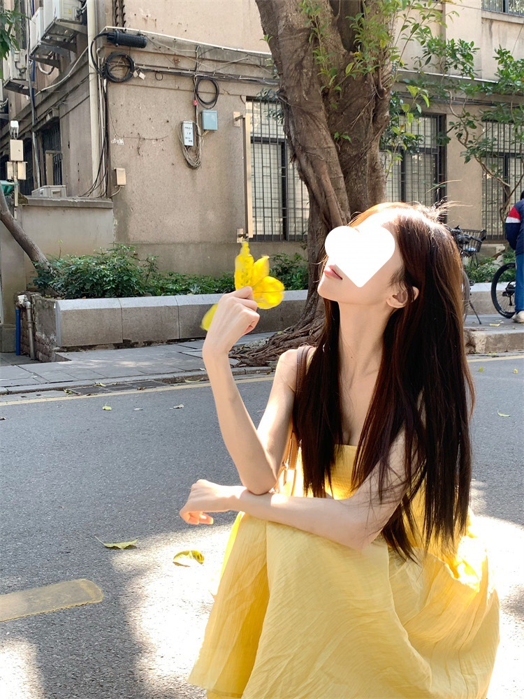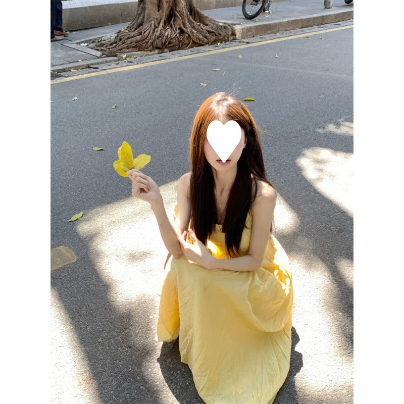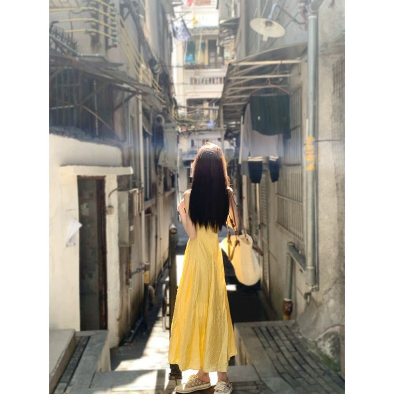 French small suspender dress women's summer new waist temperament long dress seaside vacation dress