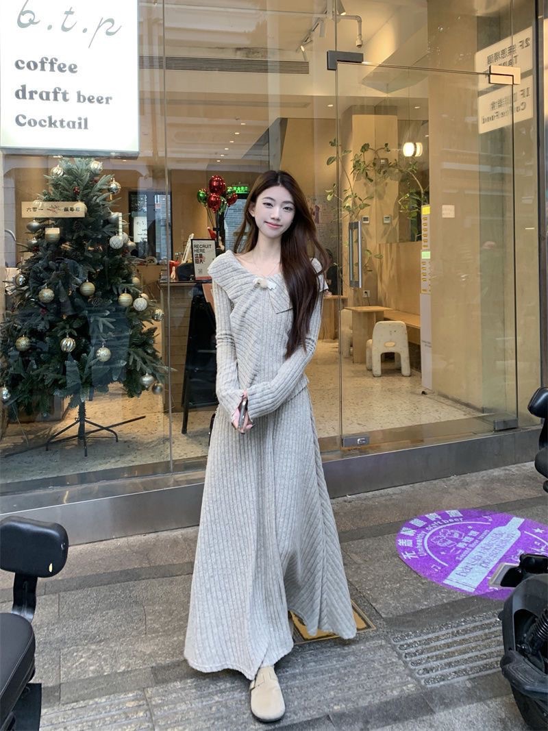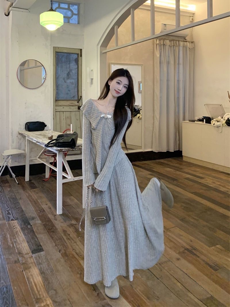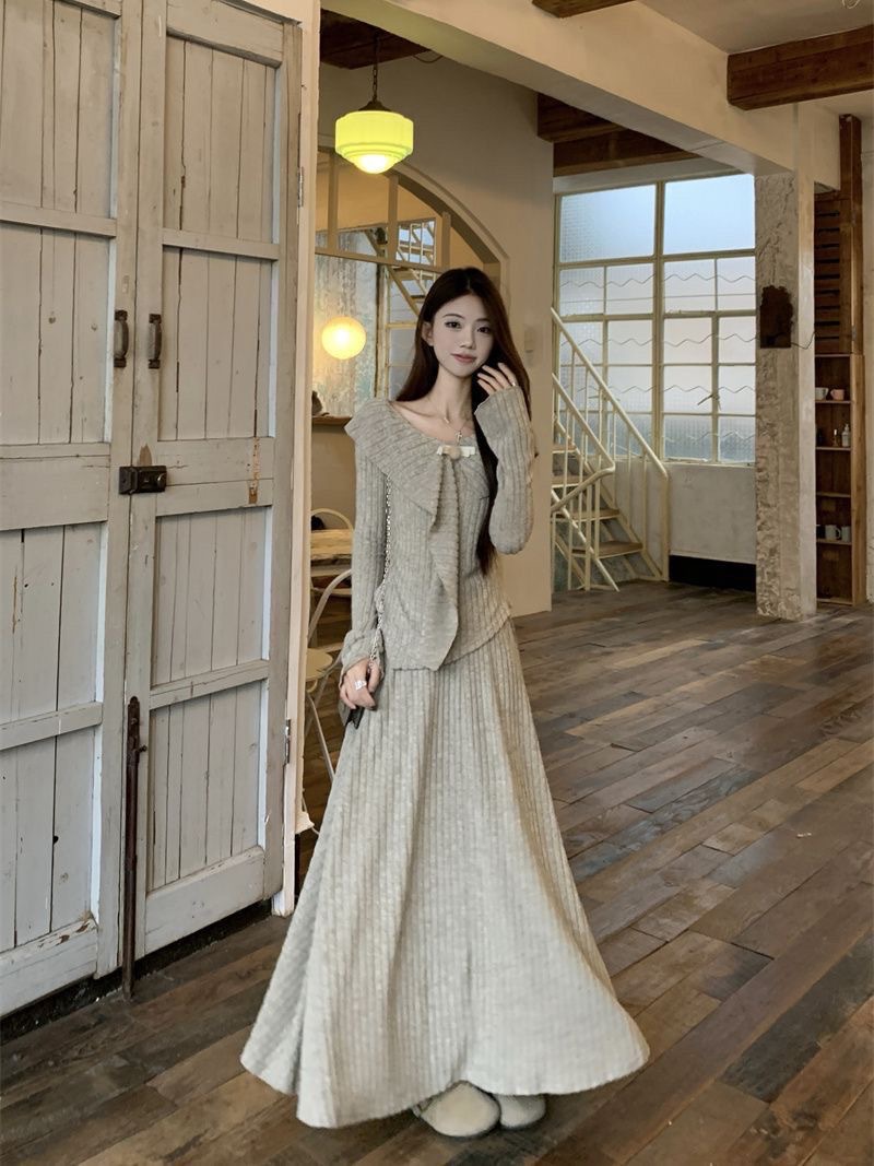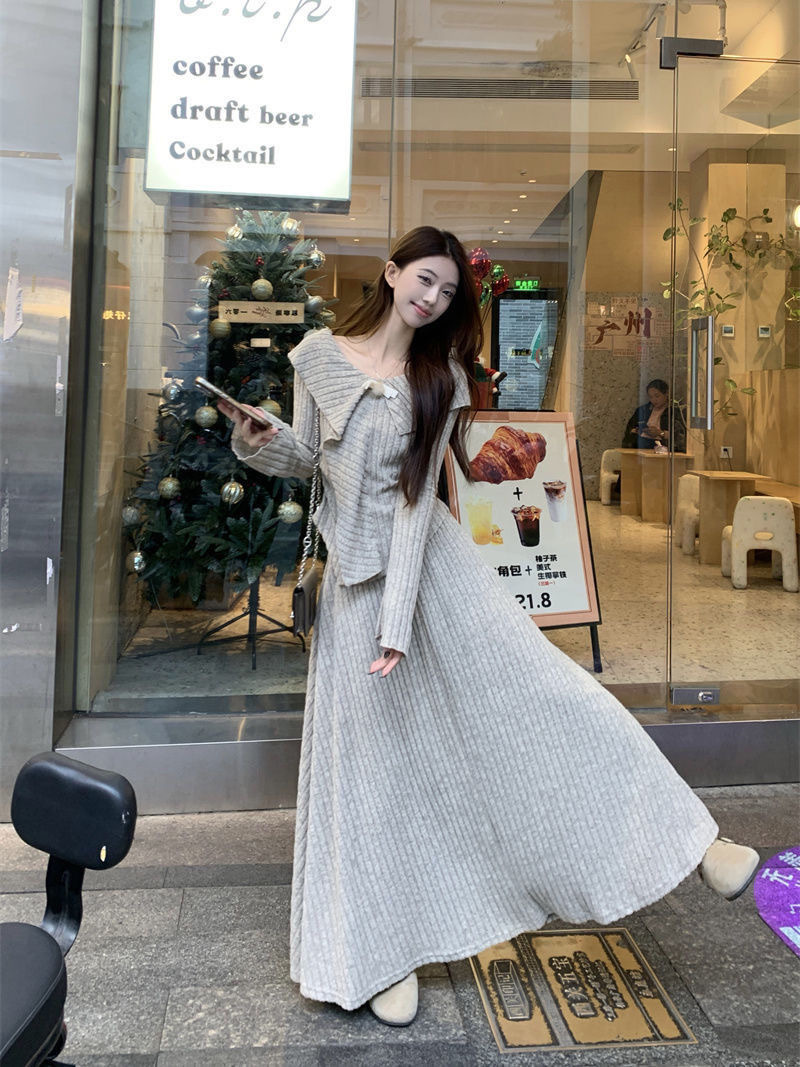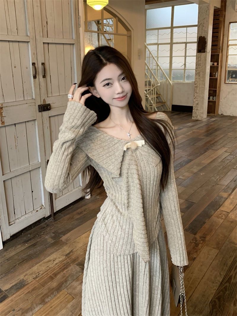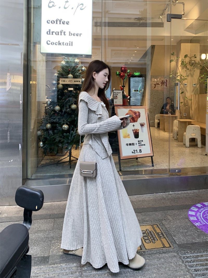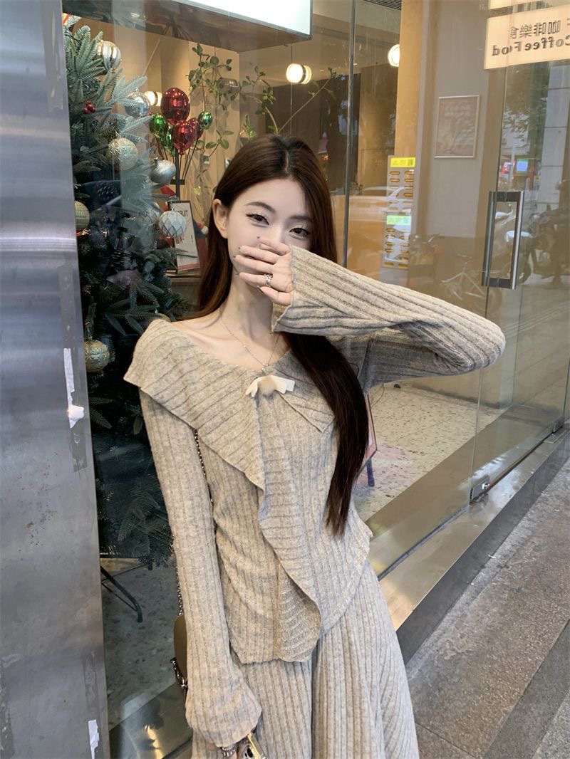 French suit irregular temperament knitted top high waist skirt women's spring and autumn two-piece set high sense thin