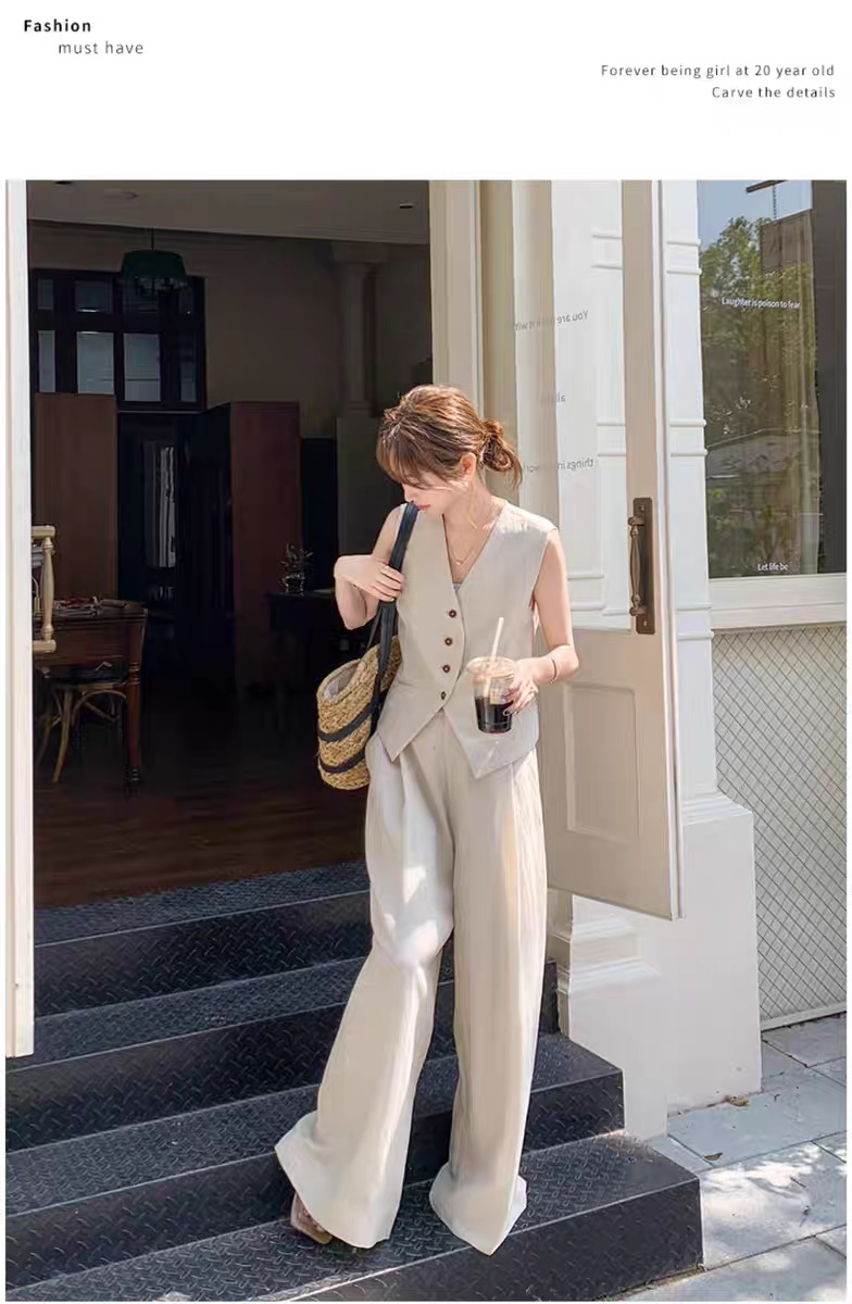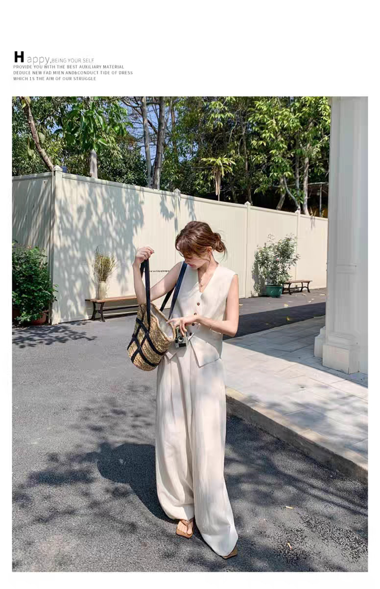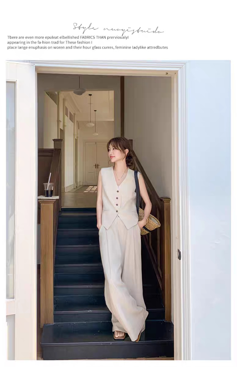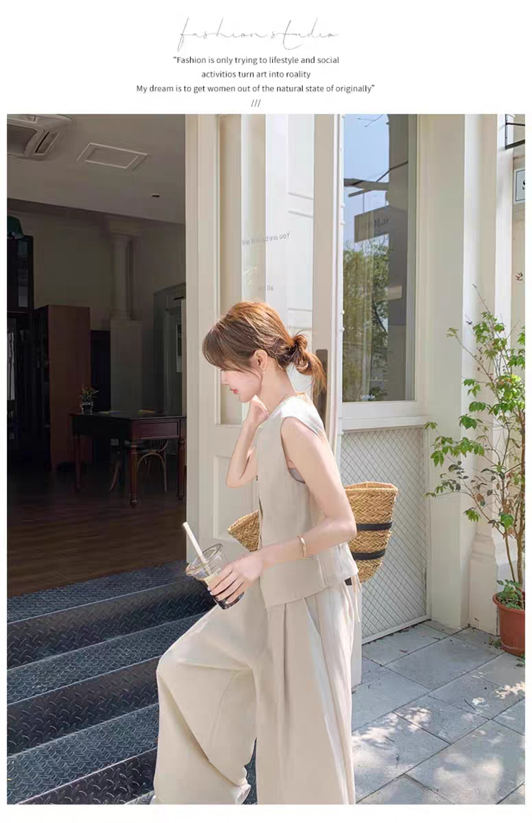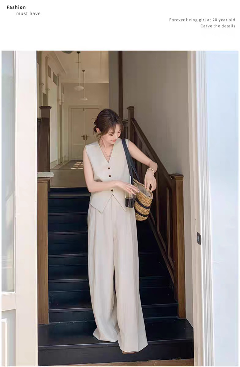 French temperament high-end wear suit women's summer new vest wide-leg pants early autumn two-piece set